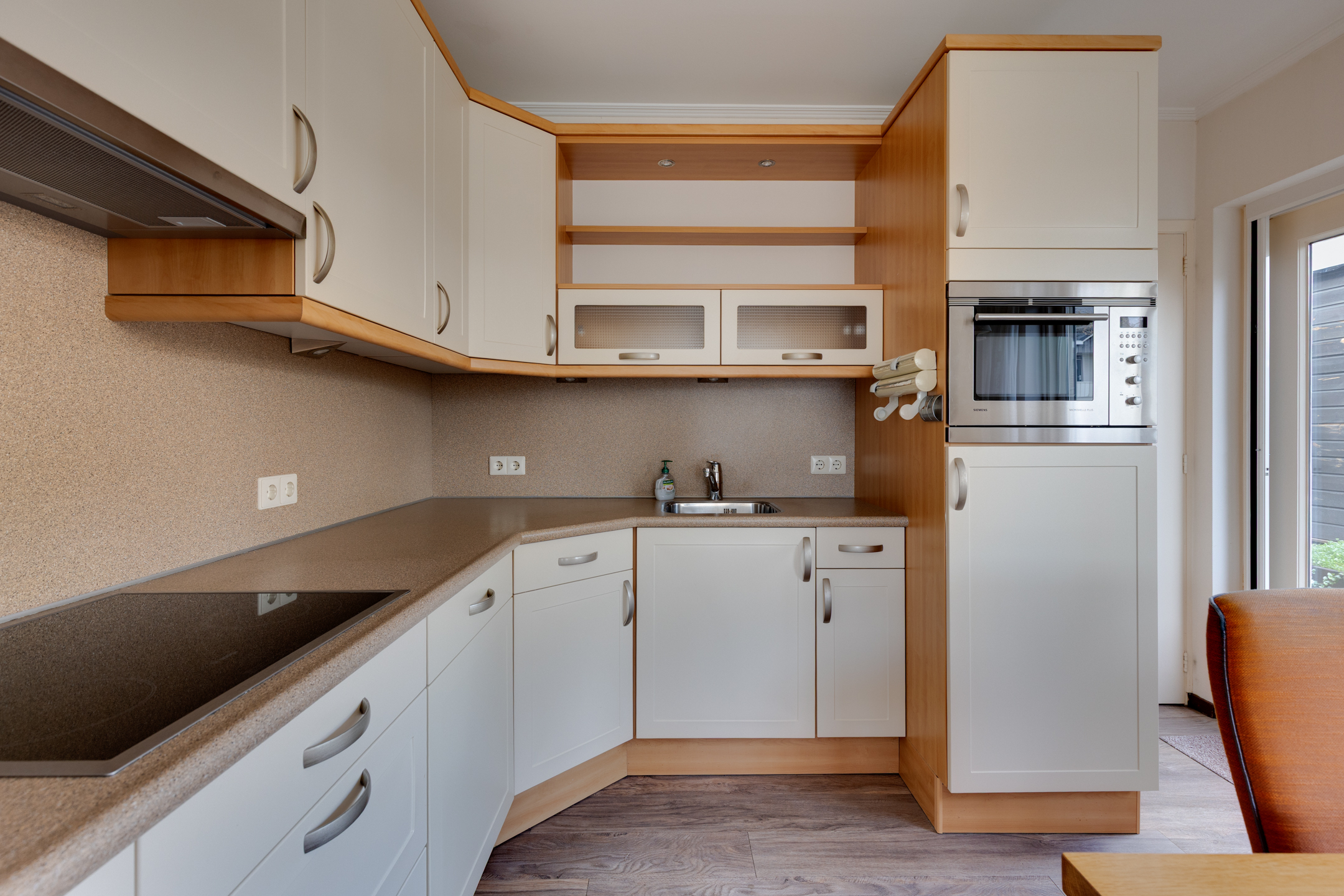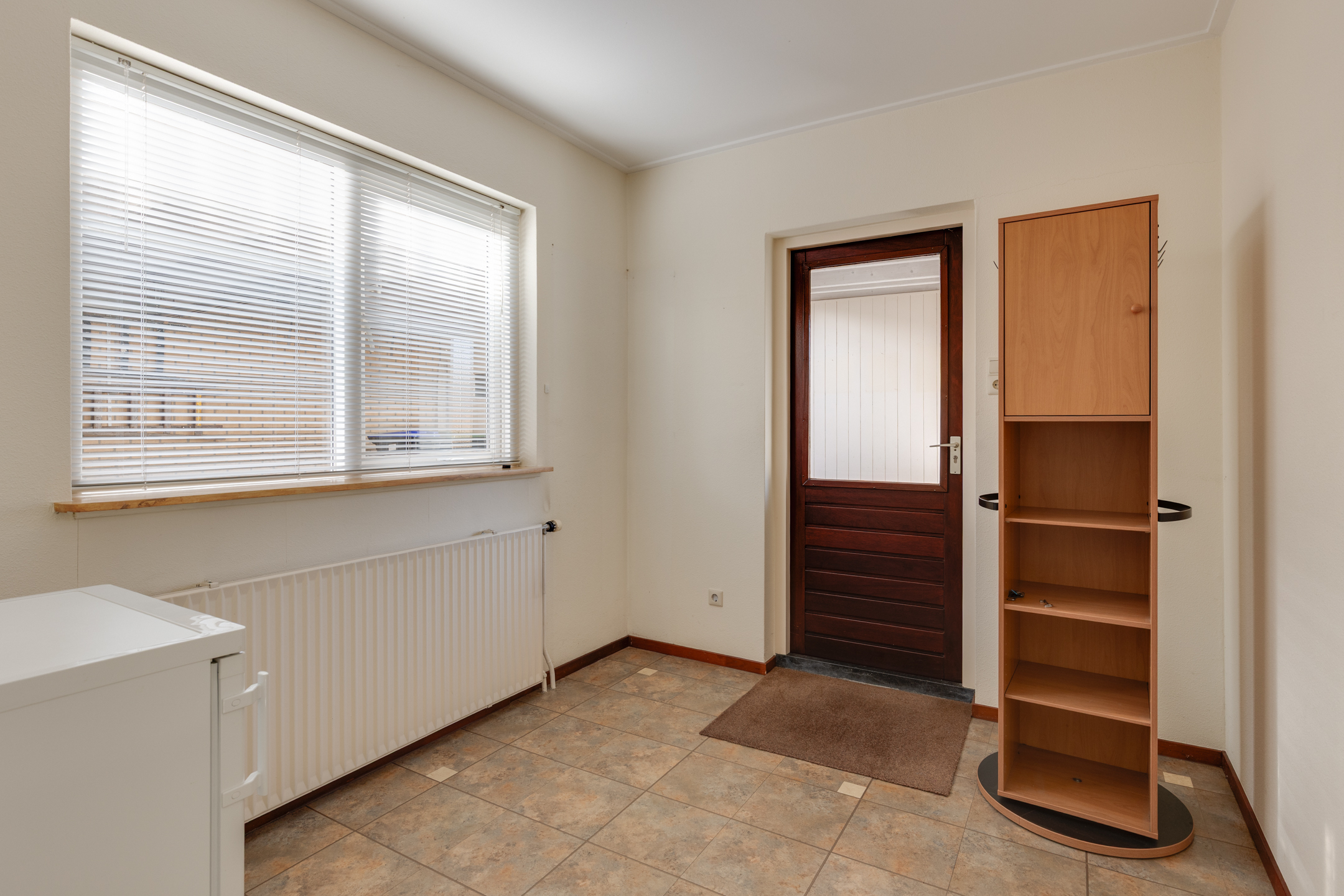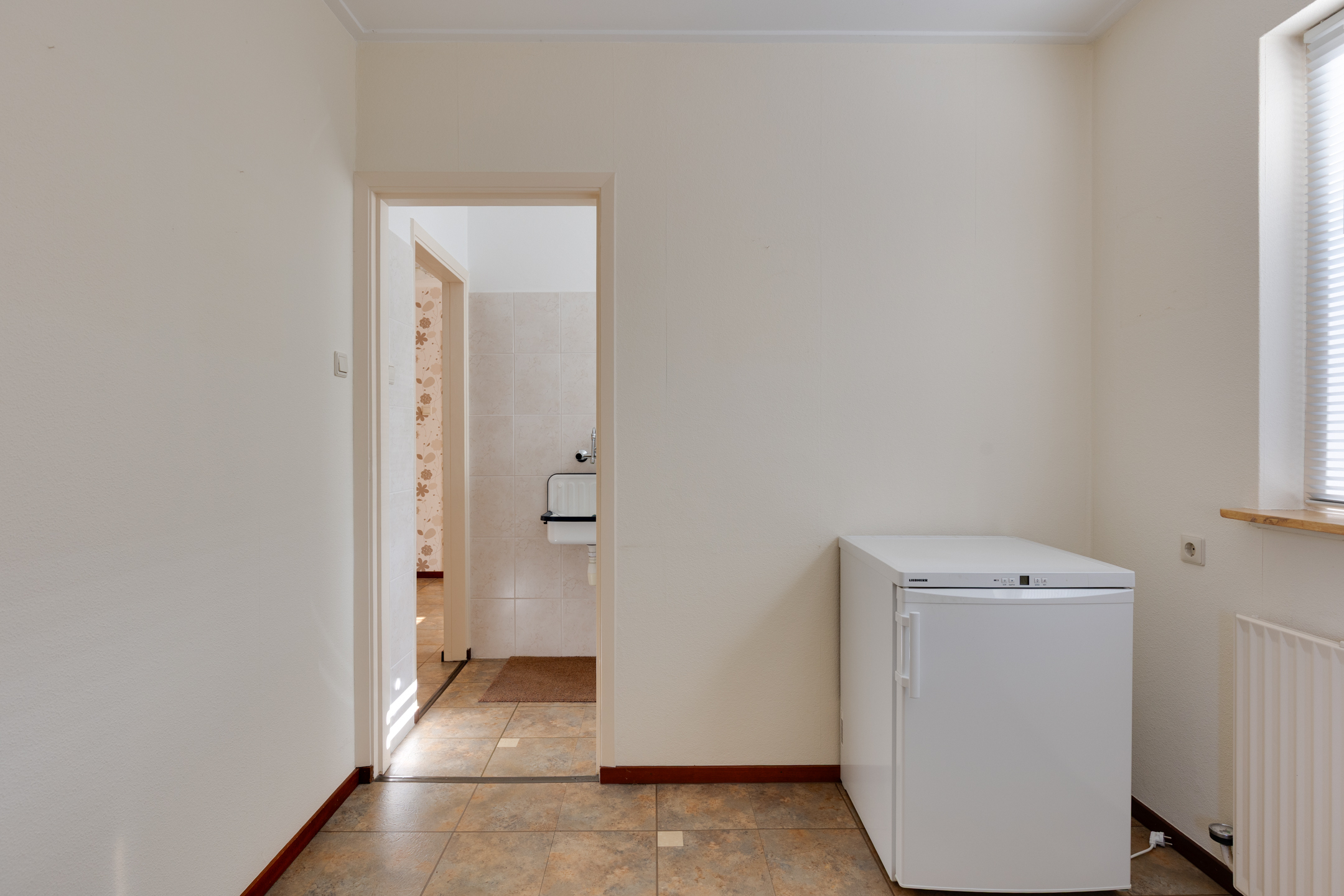 Via de hal stap je binnen en heb je toegang tot het toilet en de trap naar de verdieping. Vanuit de hal loop je naar de woonkamer. De woonkamer is uitgebouwd met een erker, wat zorgt voor extra ruime voor de zithoek met veel lichtinval. De open keuken met eethoek is voorzien van diverse inbouwapparaten waaronder een koelkast, vaatwasser, inductiekookplaat, afzuigkap en combi-oven. Vanuit de keuken is tevens de kelder bereikbaar. Vanuit de hal is ook de badkamer bereiken. De badkamer is uitgerust met een ligbad, douche, wastafelmeubel en toilet. De slaapkamer op de begane grond grenst aan de badkamer. Opslagruimte en wasruimte bevinden zich in de praktische bijkeuken. Via de achter entree in de bijkeuken loop je overdekt naar de werkplaats, een ideale hobby- en klusruimte.