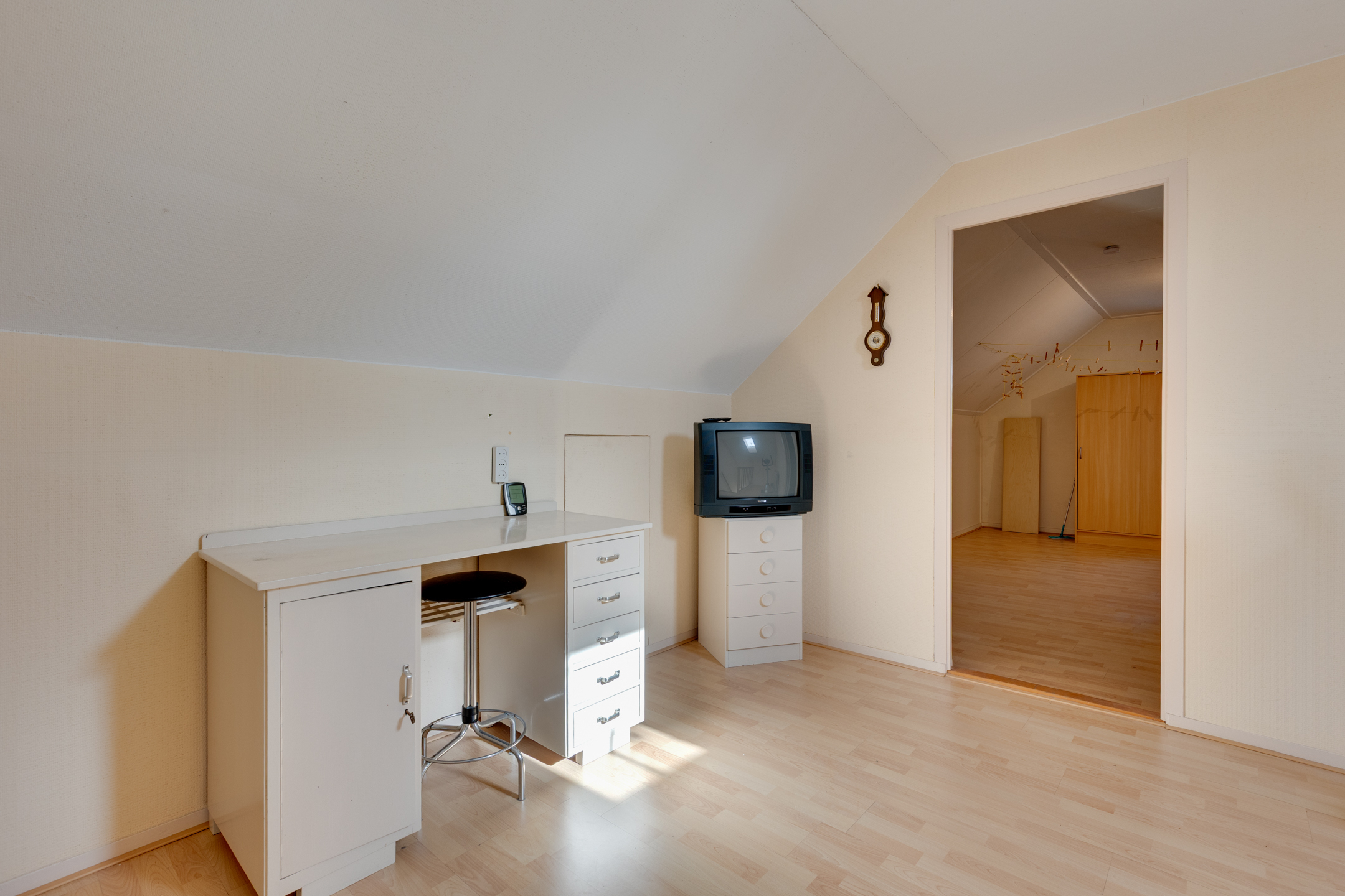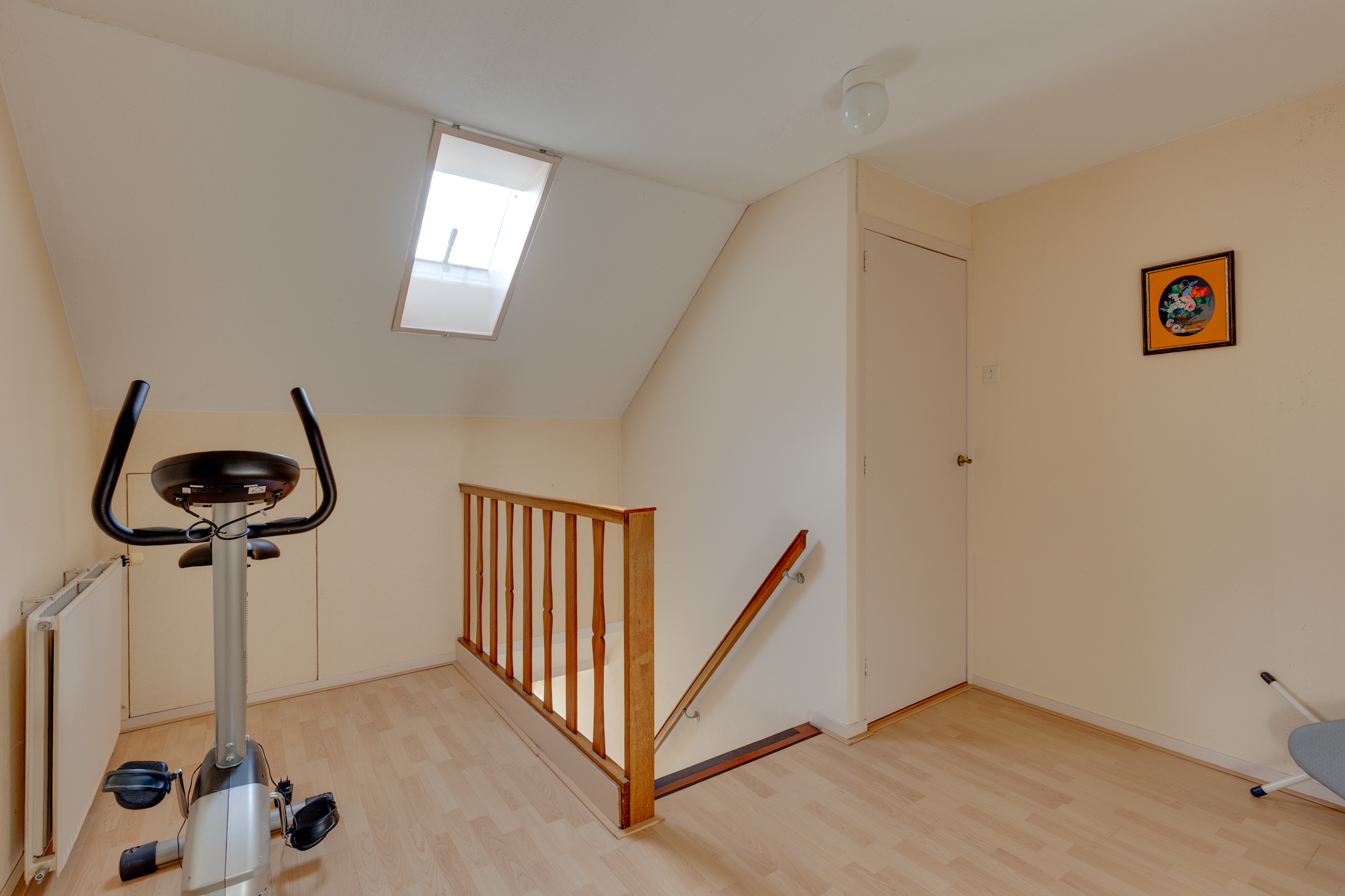 Via een ruime overloop is de 2e slaapkamer en de zolderruimte bereikbaar.