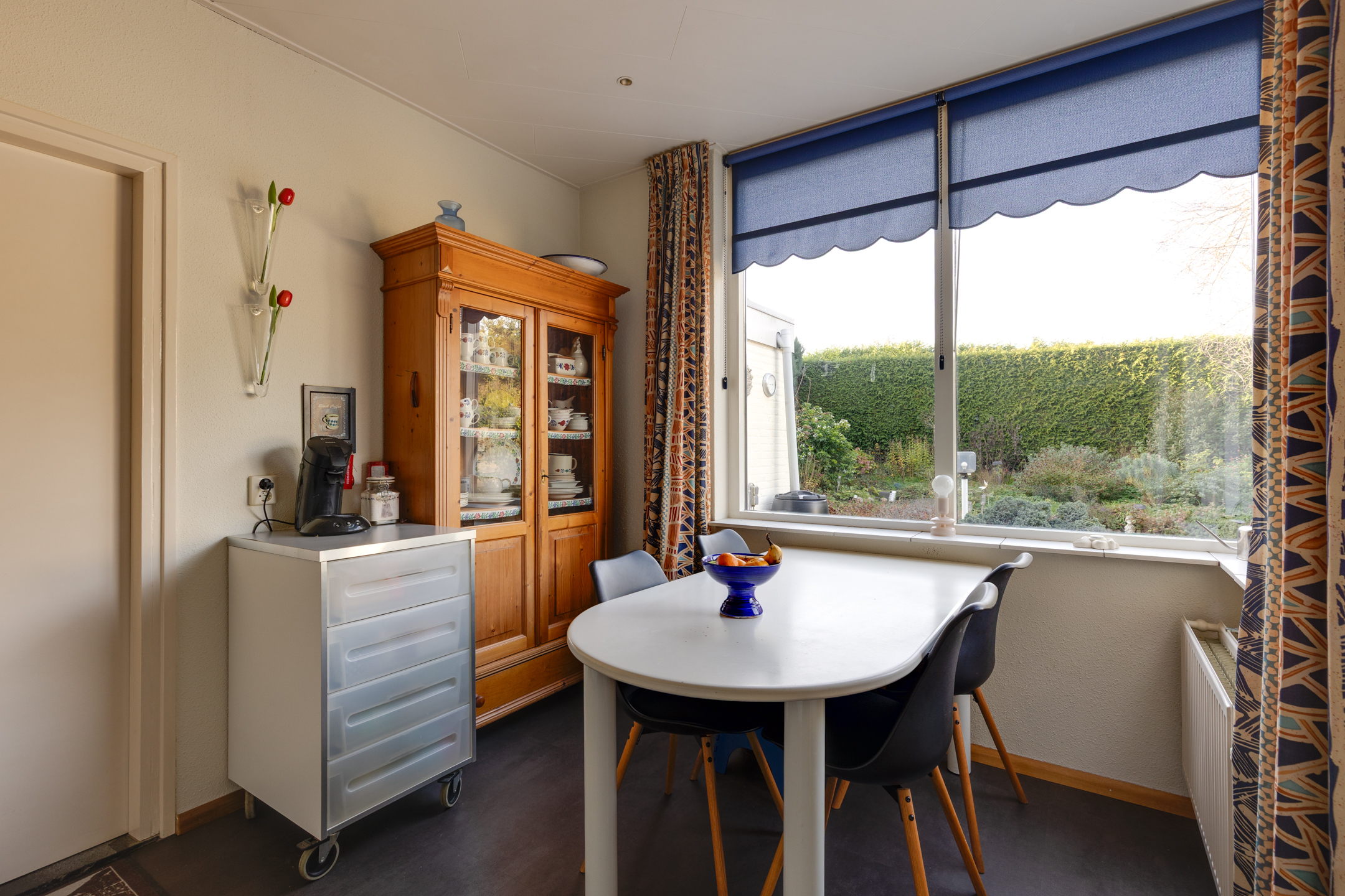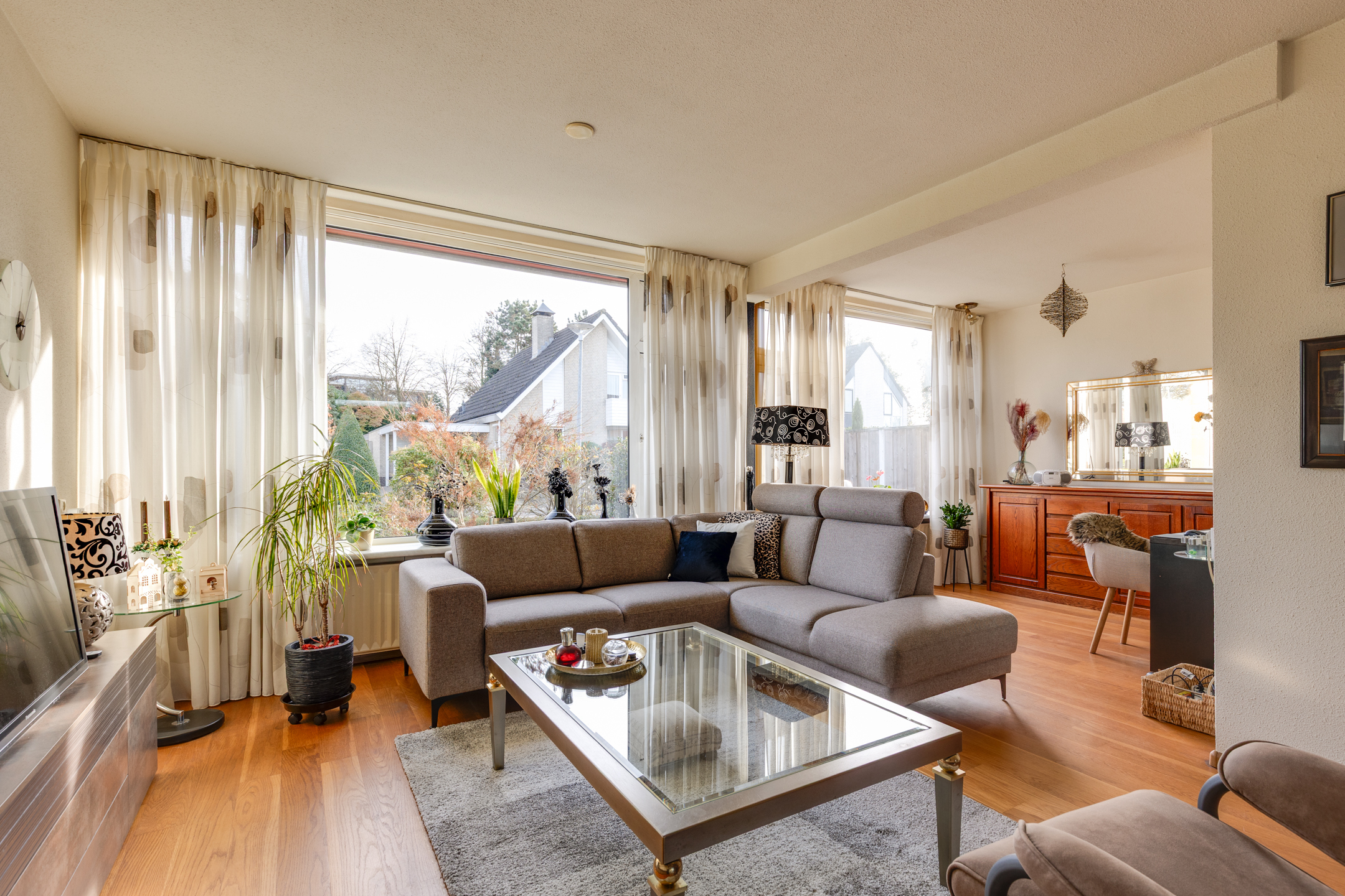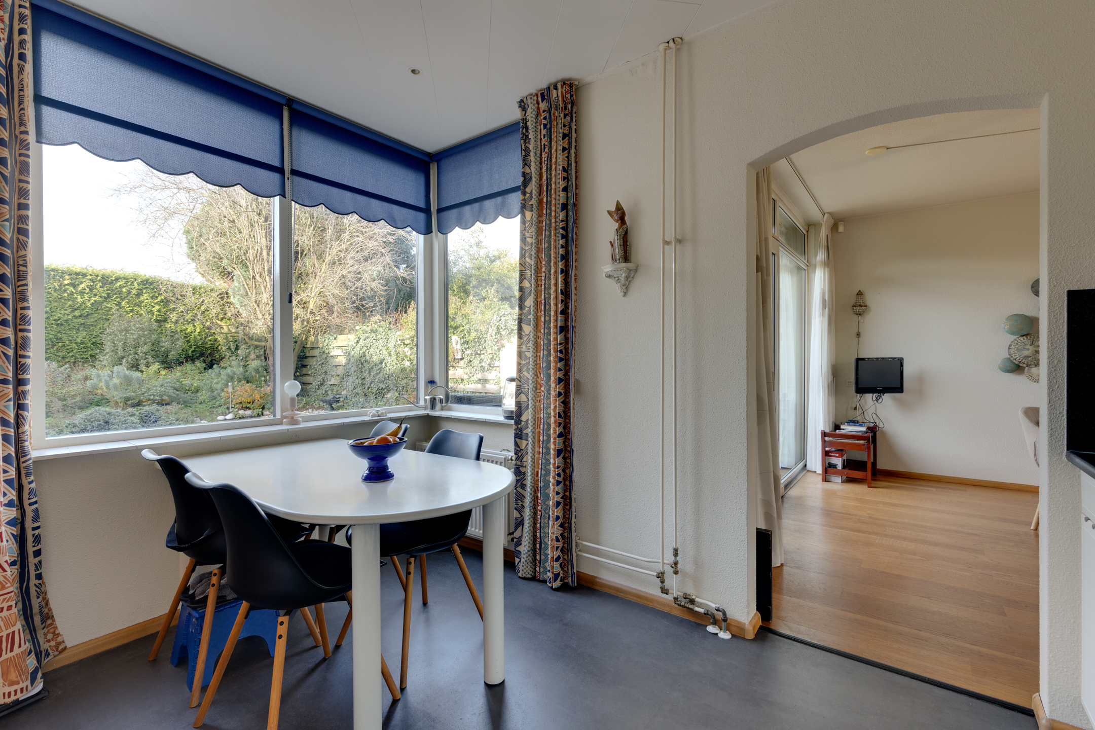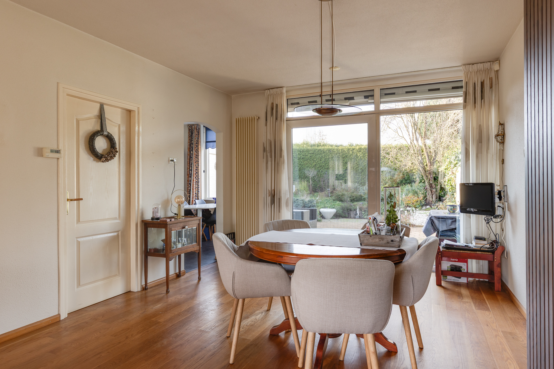 Bij binnenkomst in de woonkamer verrast je direct de lichtinval op, dankzij de grote raampartijen aan zowel de voor- als de achterzijde, geniet je de hele dag van een natuurlijke lichtinval. Bij het eetgedeelte biedt een grote schuifpui toegang en fraai uitzicht naar de verzorgde, volledig groen omheinde achtertuin.