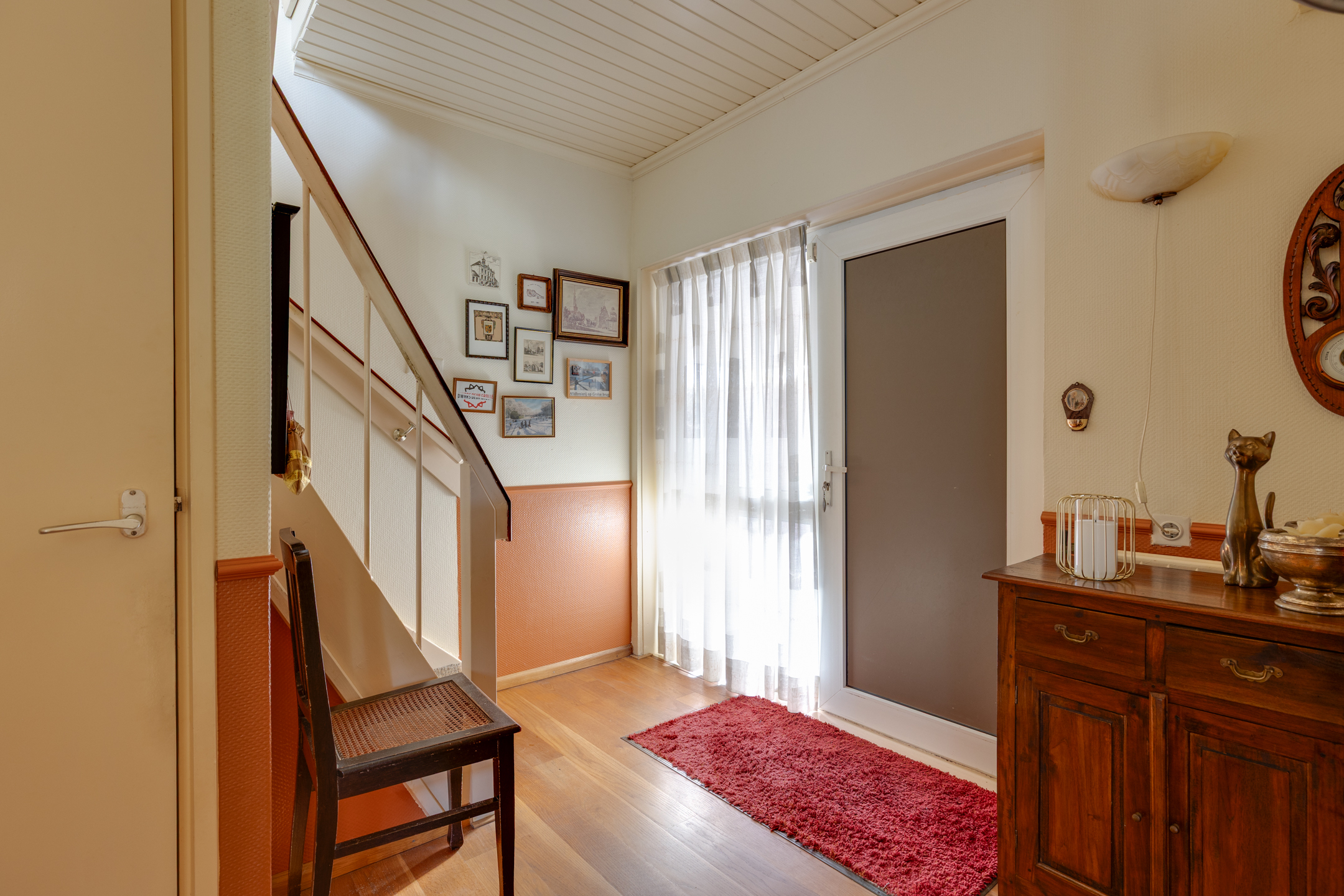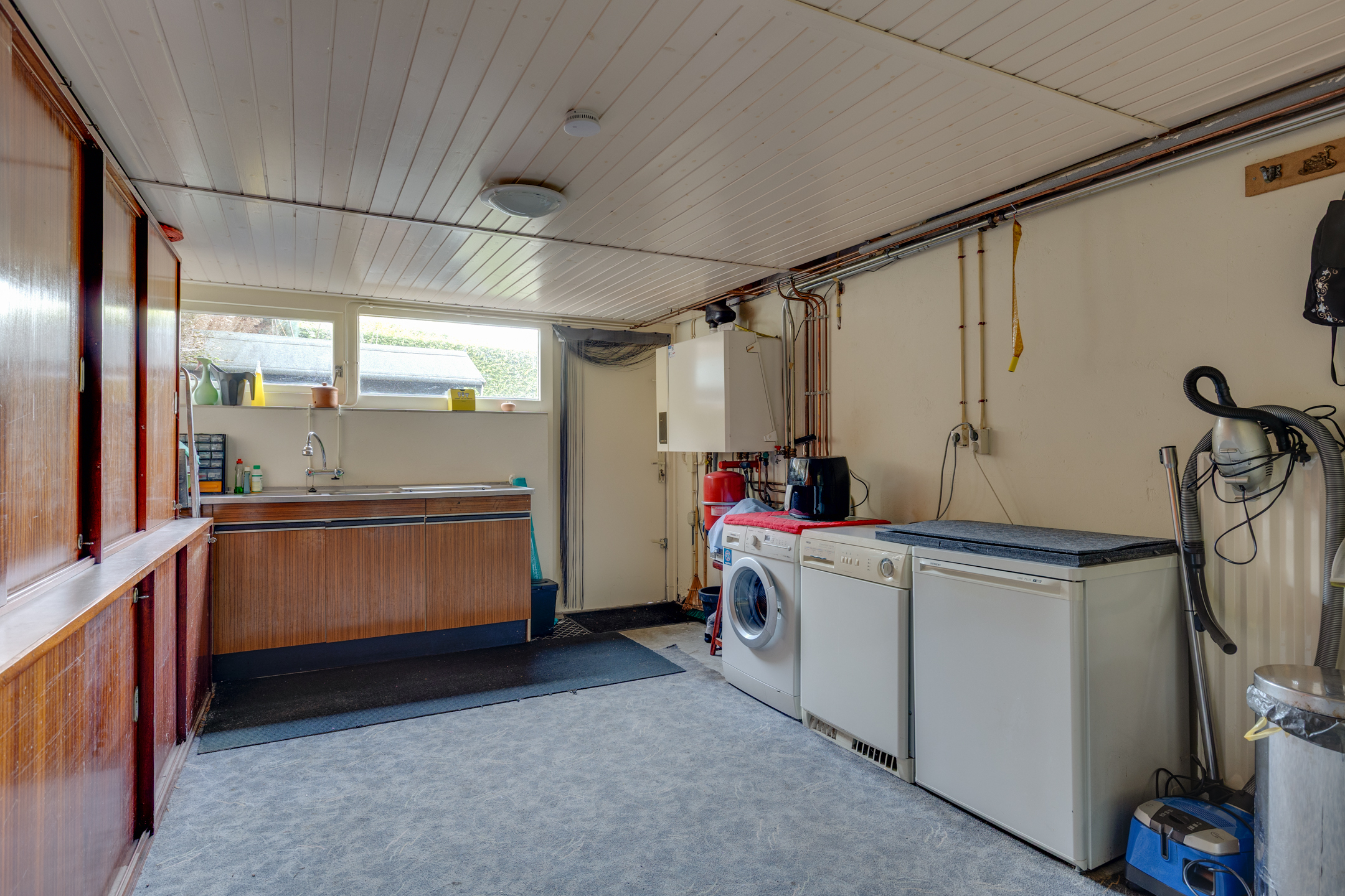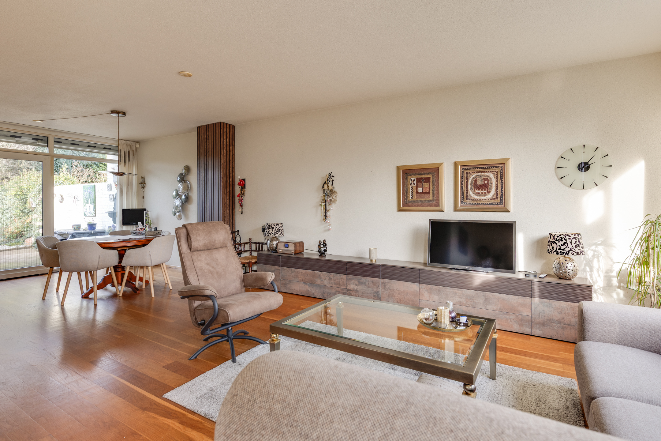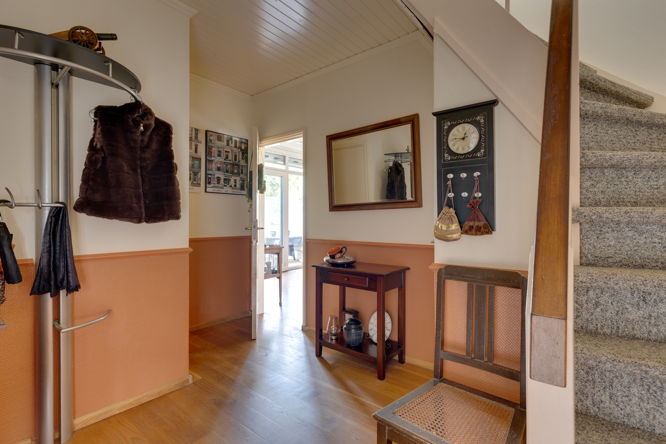 Bij binnenkomst in de woonkamer verrast je direct de lichtinval op, dankzij de grote raampartijen aan zowel de voor- als de achterzijde, geniet je de hele dag van een natuurlijke lichtinval. Bij het eetgedeelte biedt een grote schuifpui toegang en fraai uitzicht naar de verzorgde, volledig groen omheinde achtertuin.