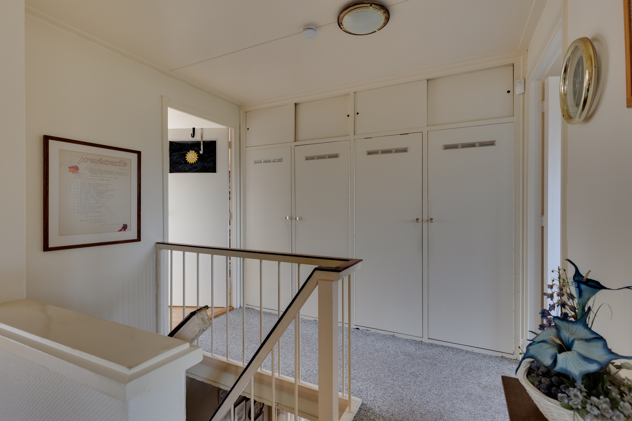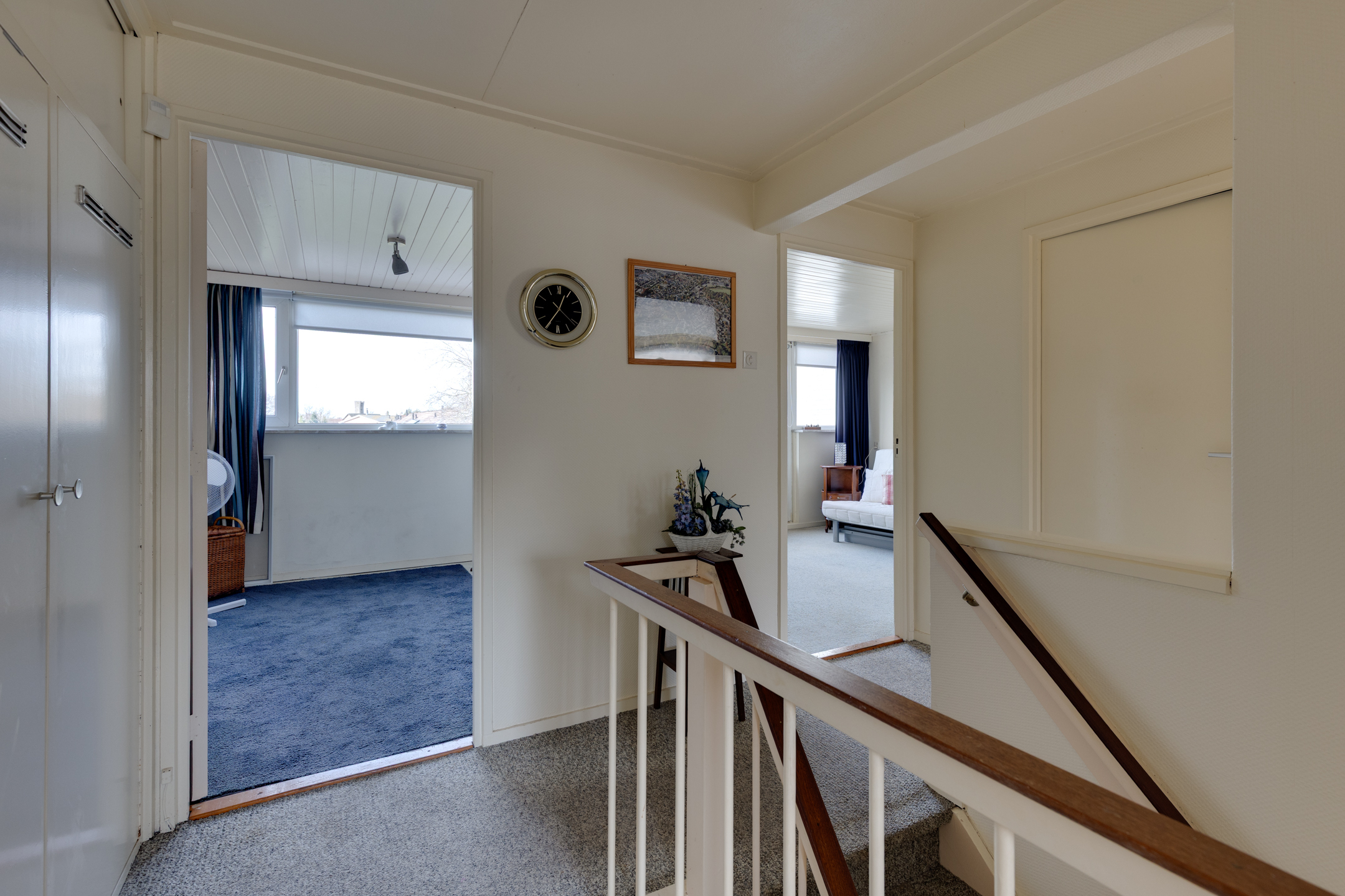 Op de eerste verdieping zijn vier slaapkamers gerealiseerd en een badkamer voorzien van douche, tweede toilet en wastafel. Eén slaapkamer biedt toegang tot een balkon. De grote kastenwand op de overloop biedt volop opbergruimte.