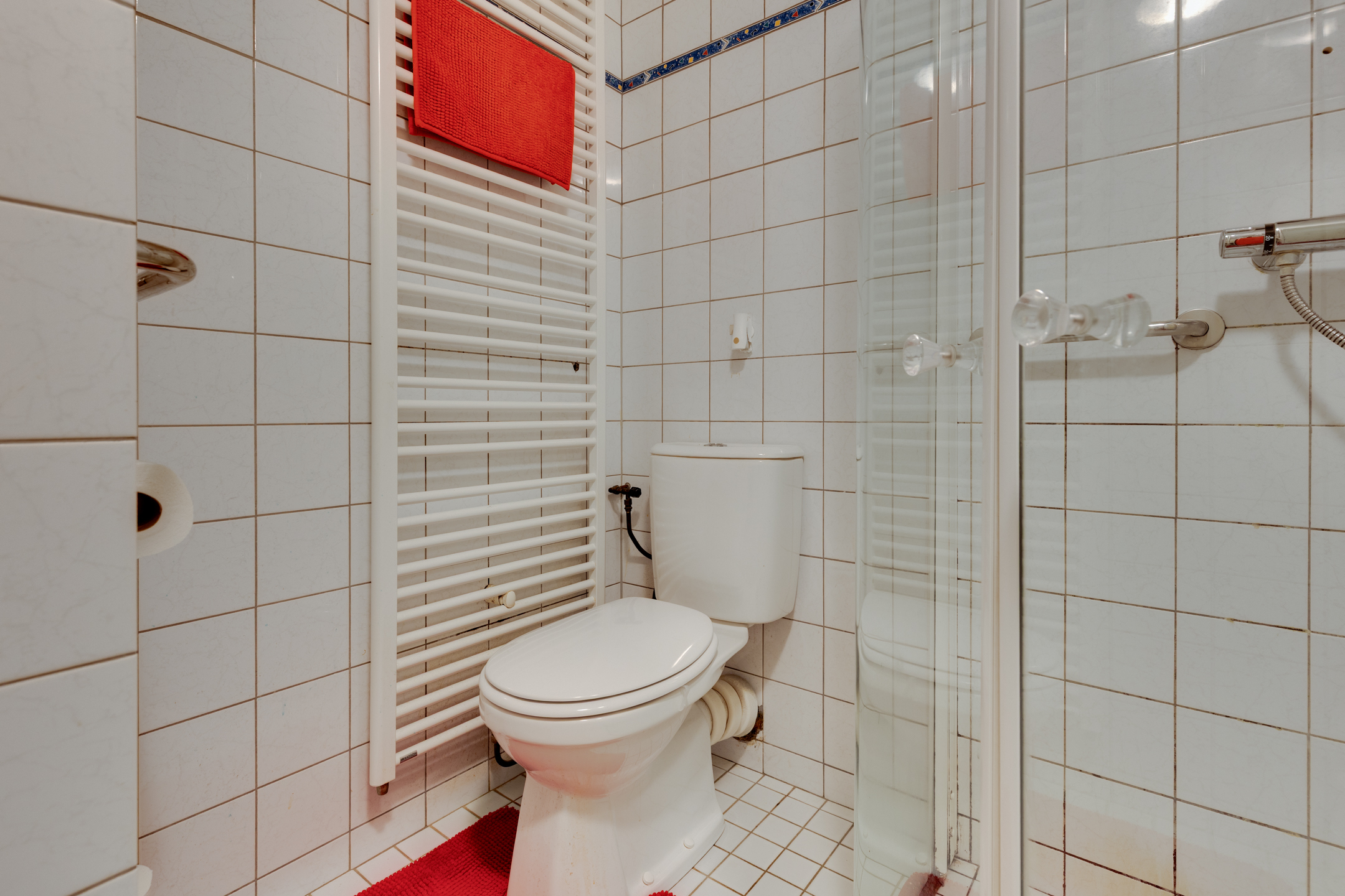 1e VERDIEPING: overloop met grote inbouwkasten; vier slaapkamers, één met balkon; badkamer met douchecabine, tweede toilet en wastafel.