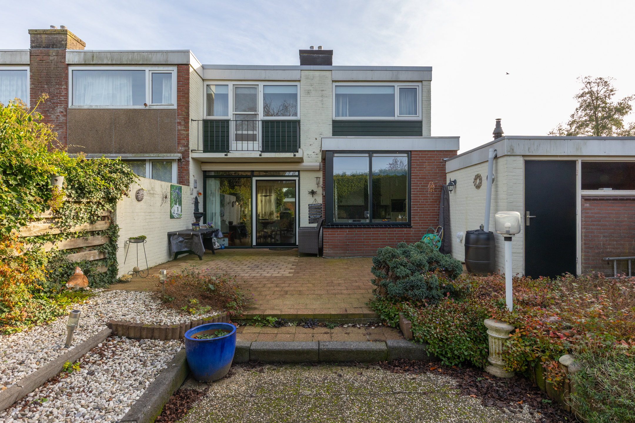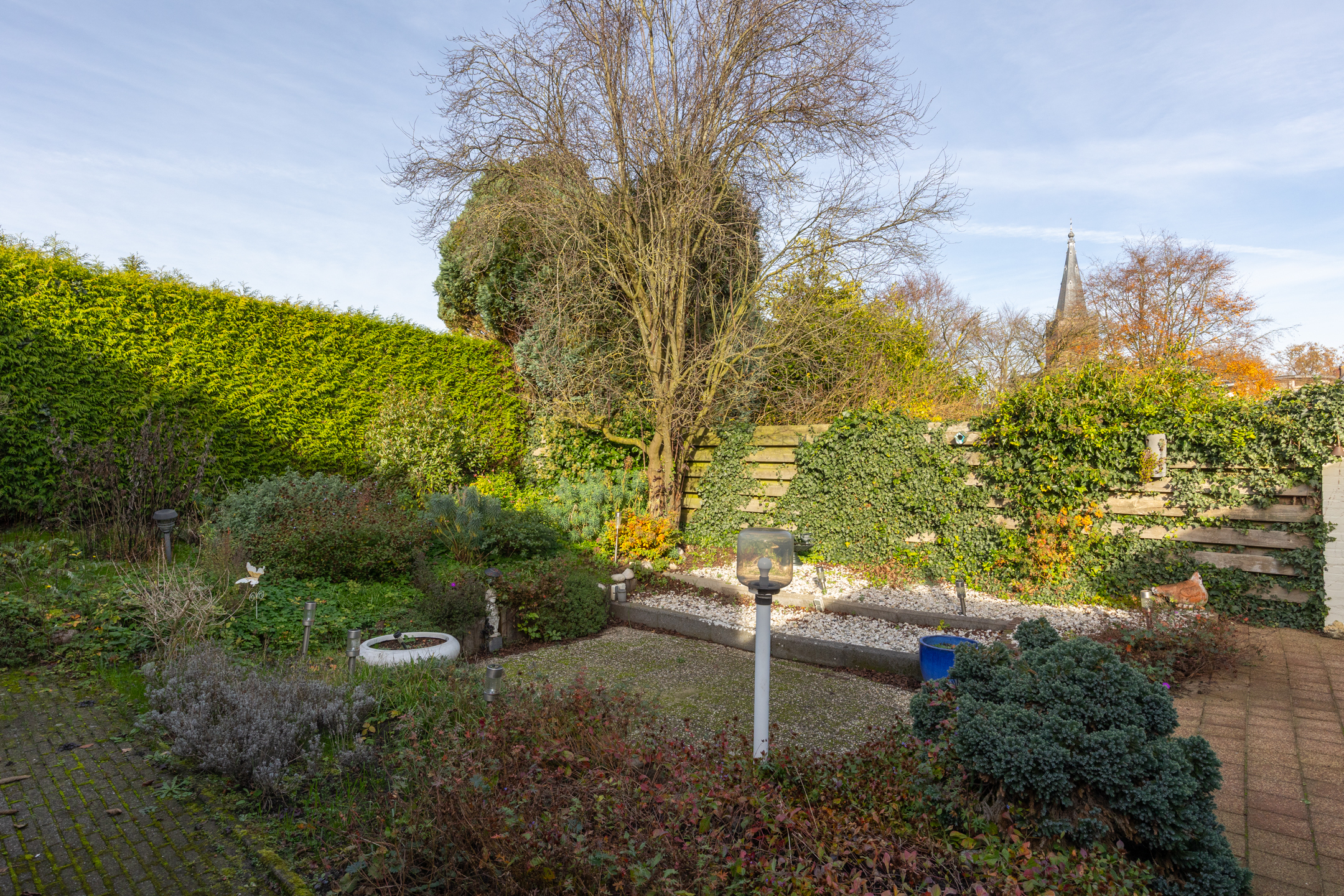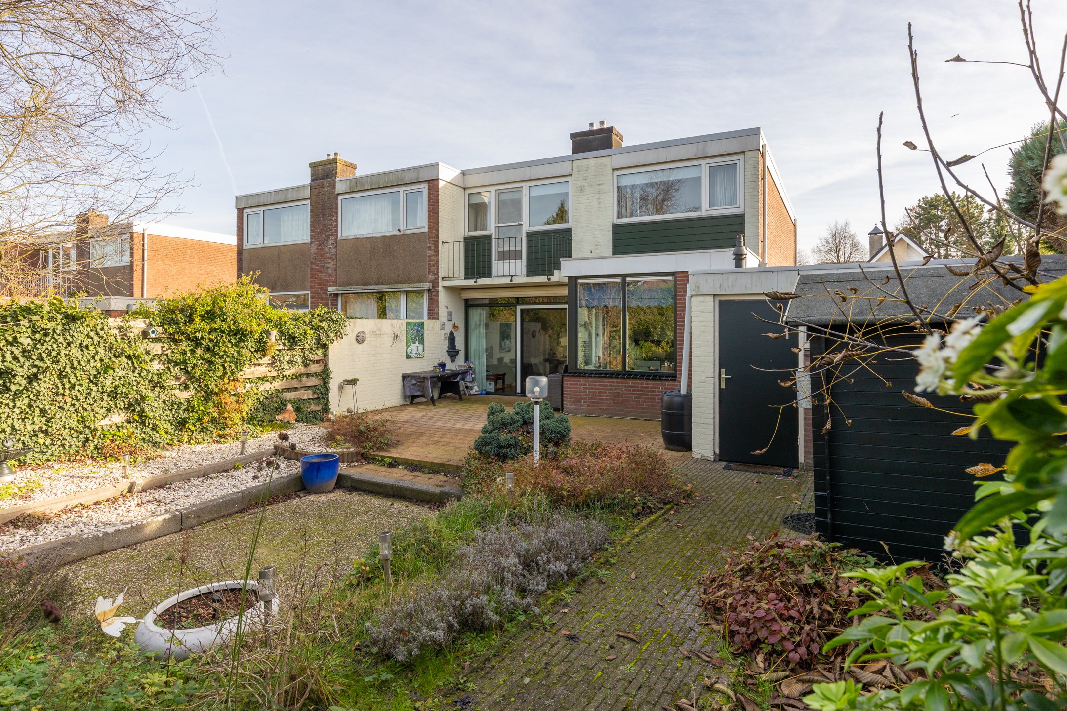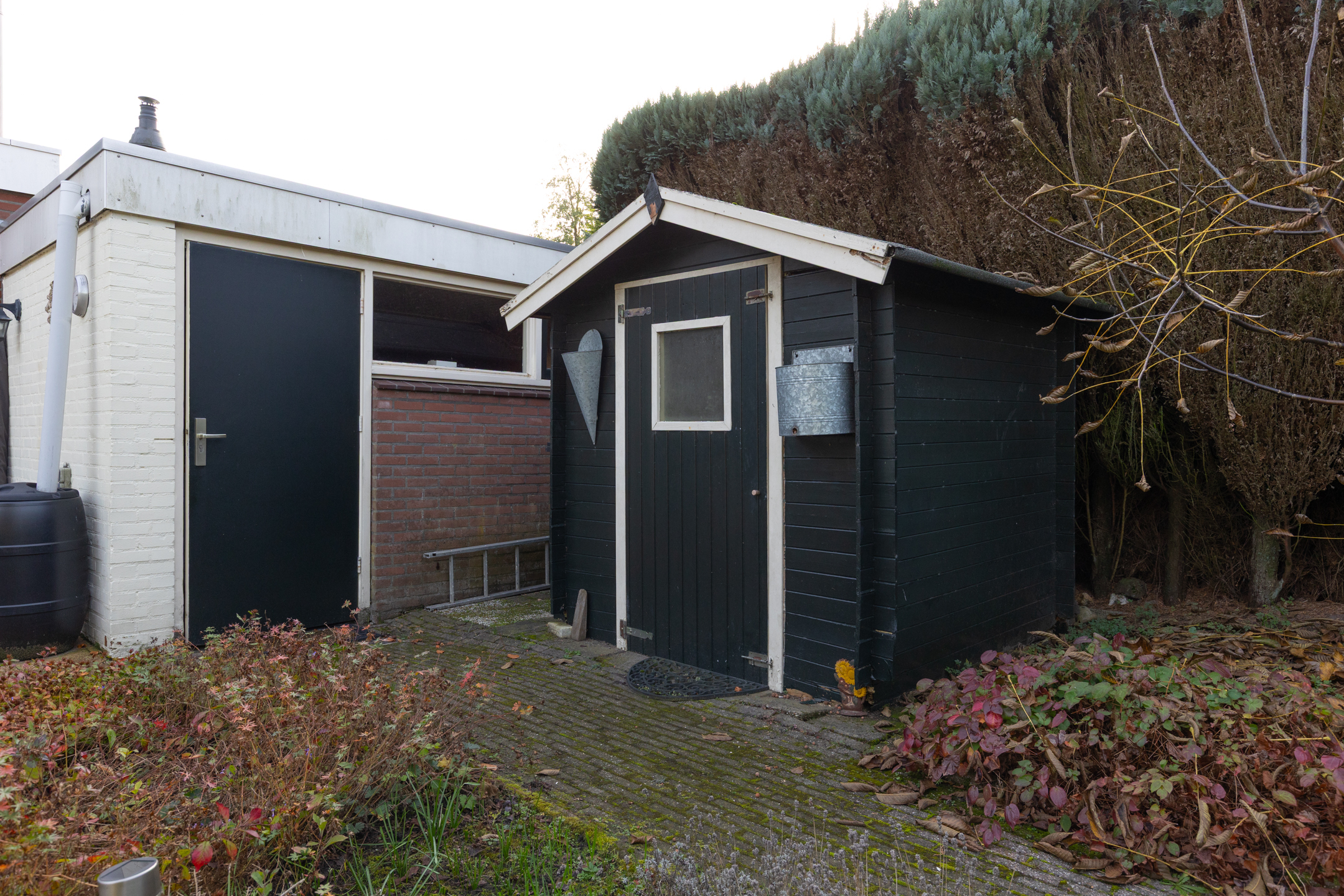 In de veel privacy biedende achtertuin met houten berging vind je altijd een plekje in de zon of schaduw en kun je genieten van al het groen.