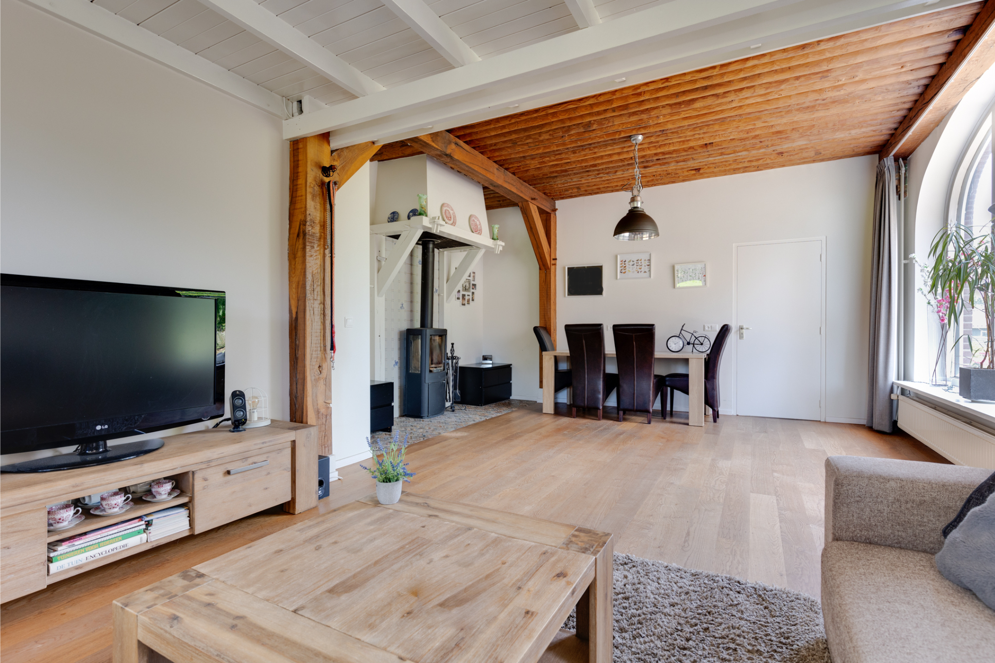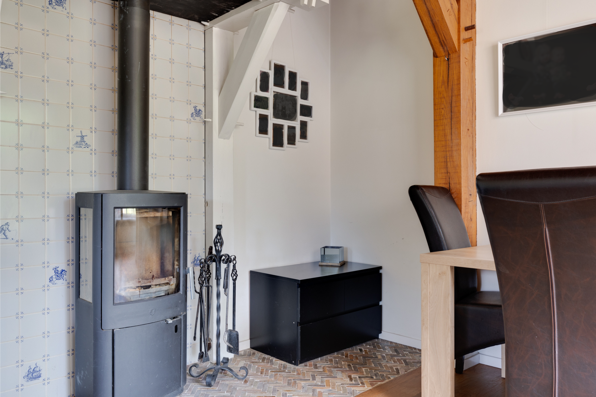 • De gezellige woonkamer is voorzien van een sfeervolle houtkachel.