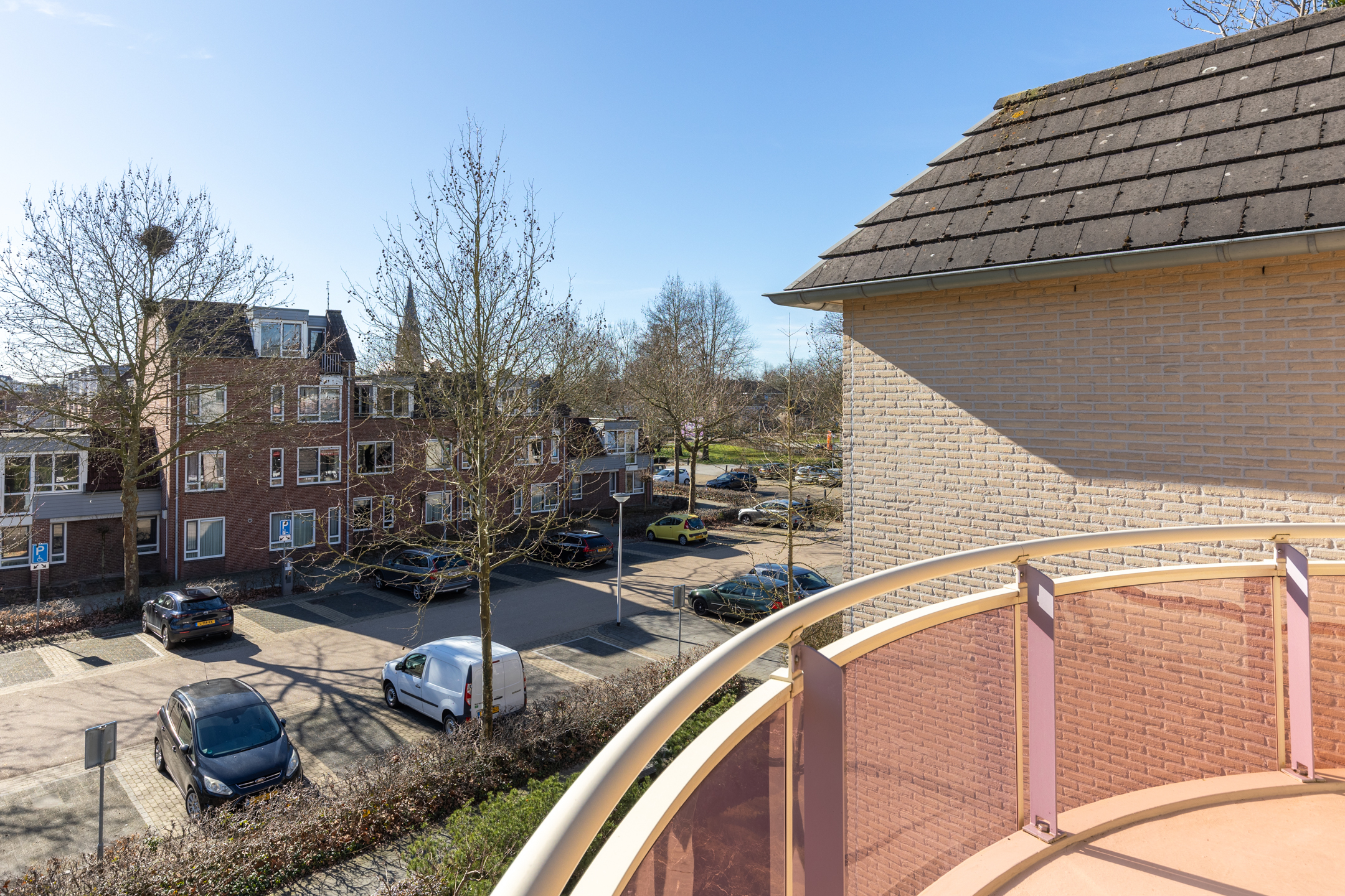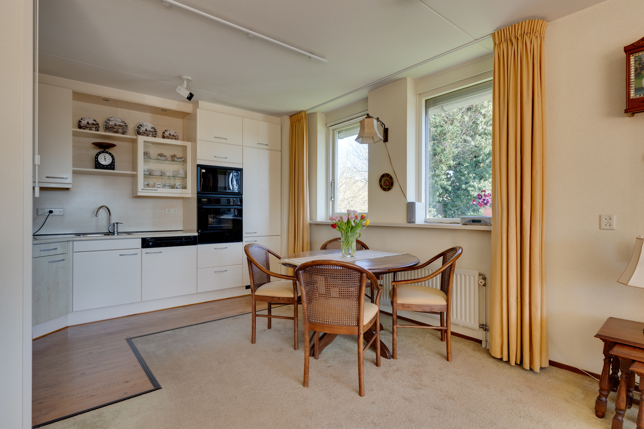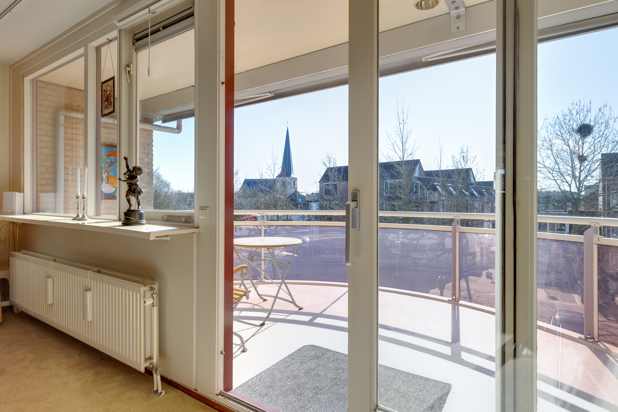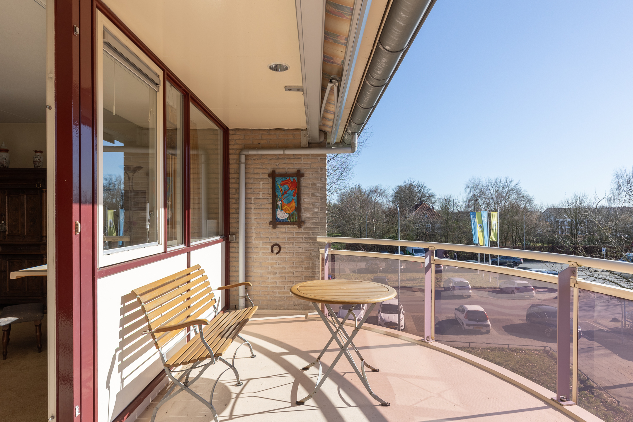 Een royale woonkamer heeft door de grote ramen veel lichtinval en biedt een fraai uitzicht. De schuifpui geeft toegang naar het riante balkon, dat op het zonnige zuidwesten ligt. De open keuken is uitgerust met inbouwapparaten met aangrenzend het eetgedeelte. Aan de achterzijde bevinden zich twee slaapkamers, waarvan de hoofdslaapkamer royaal te noemen is. Tussen de slaapkamers ligt de ruime, geheel betegelde badkamer.