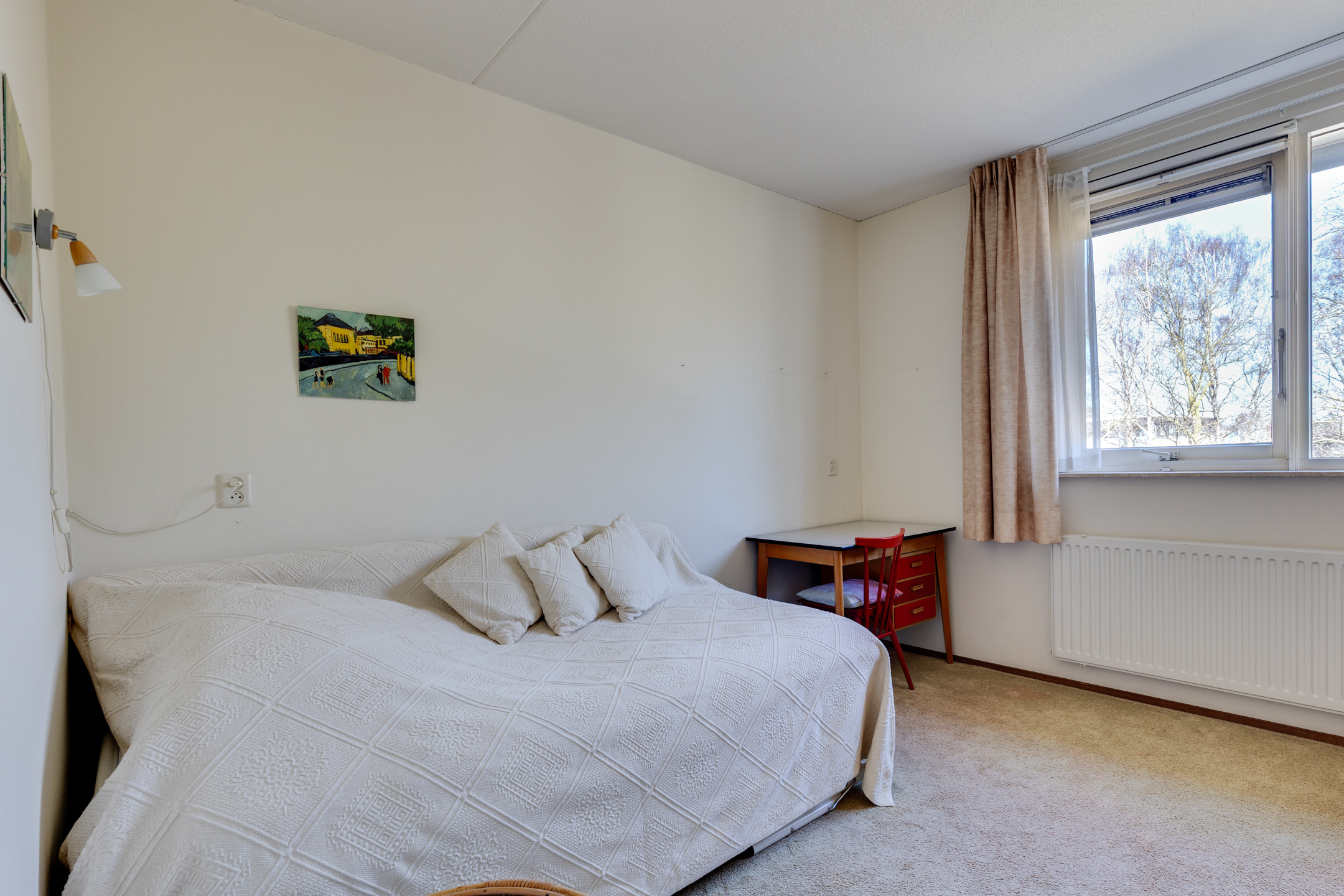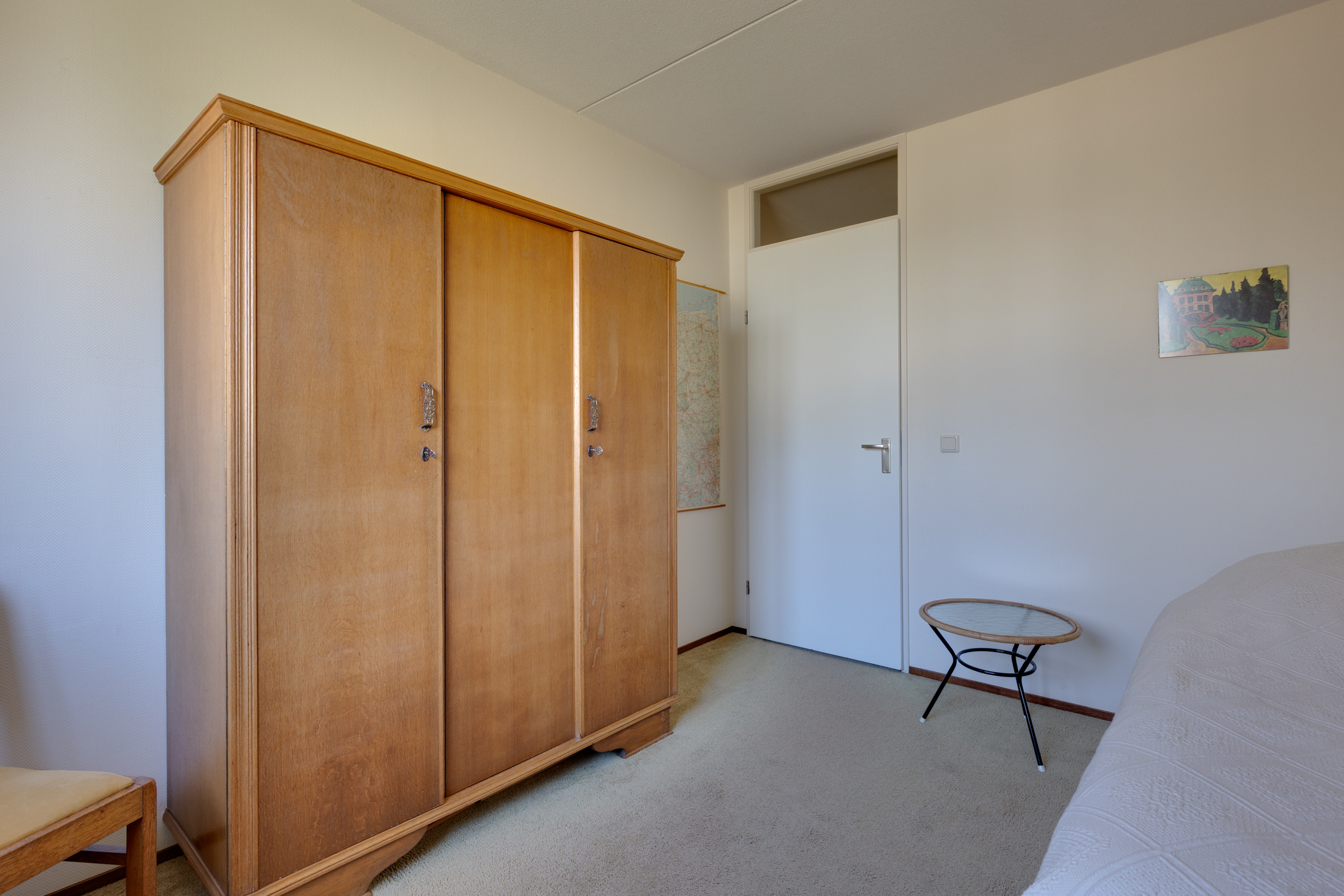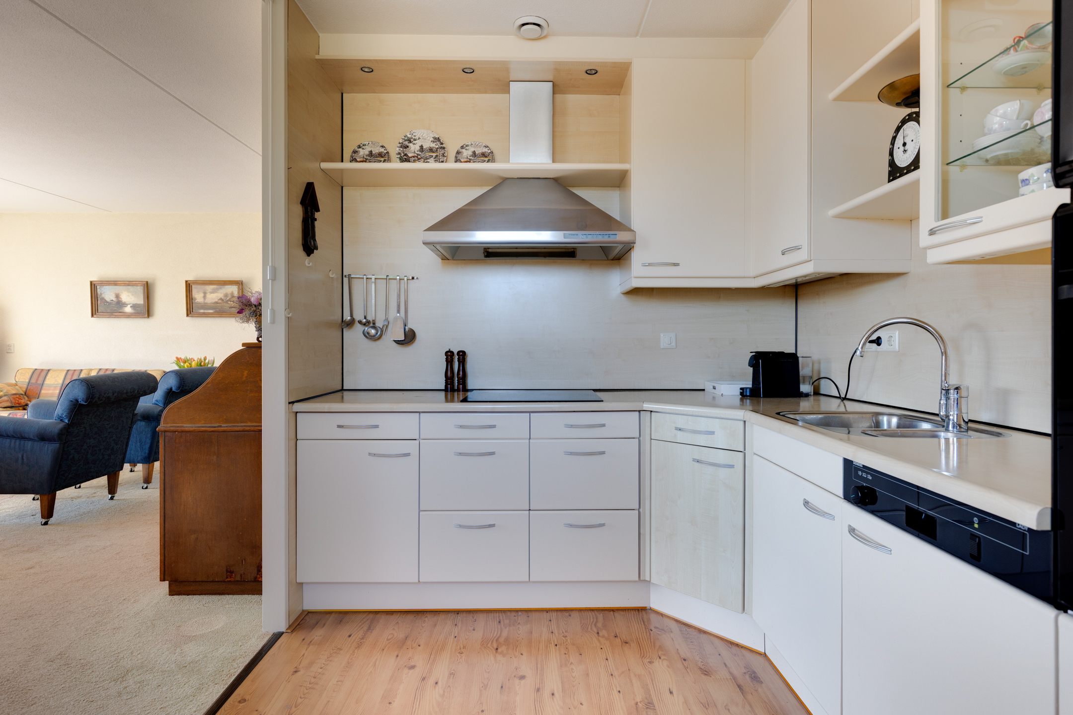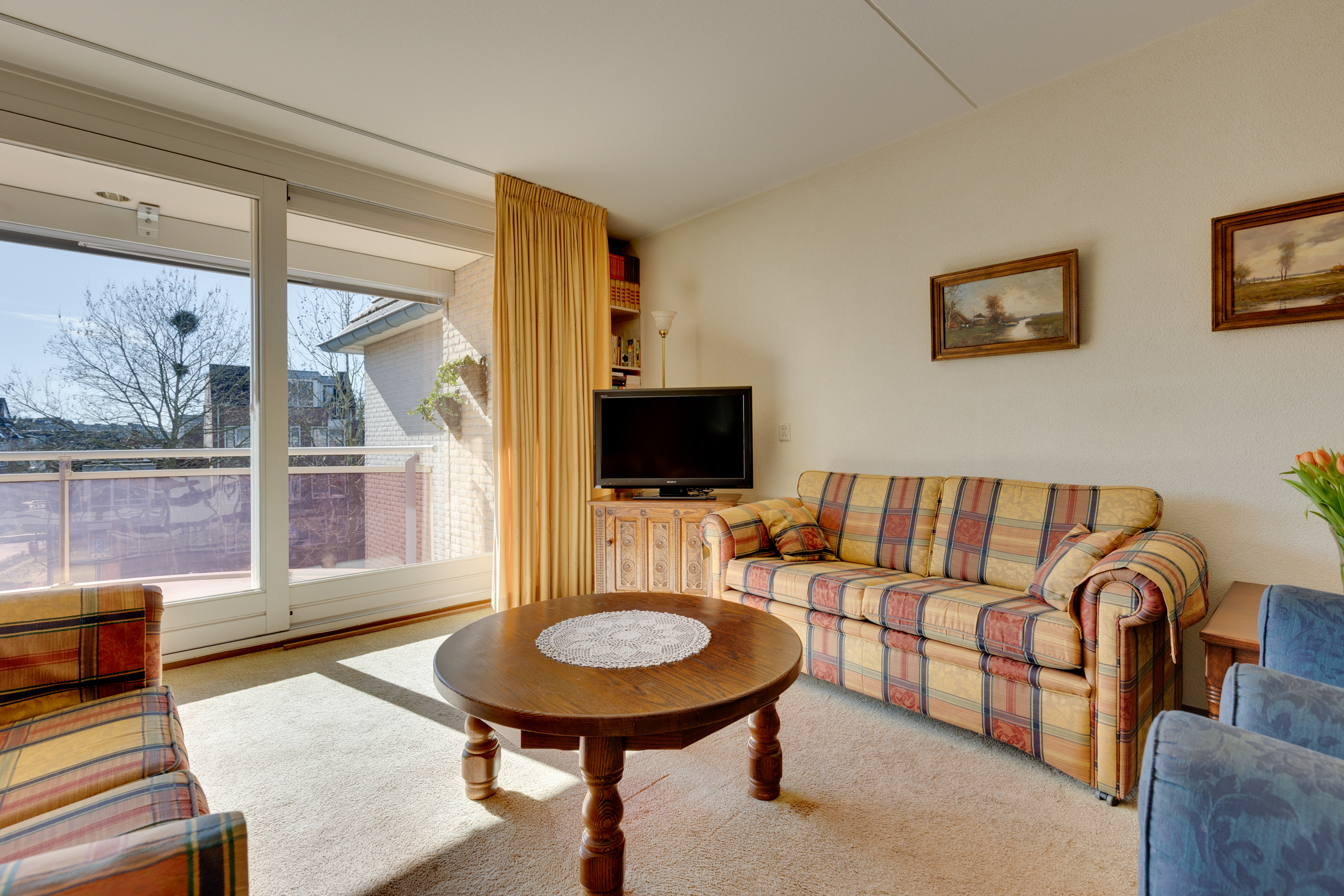 Een royale woonkamer heeft door de grote ramen veel lichtinval en biedt een fraai uitzicht. De schuifpui geeft toegang naar het riante balkon, dat op het zonnige zuidwesten ligt. De open keuken is uitgerust met inbouwapparaten met aangrenzend het eetgedeelte. Aan de achterzijde bevinden zich twee slaapkamers, waarvan de hoofdslaapkamer royaal te noemen is. Tussen de slaapkamers ligt de ruime, geheel betegelde badkamer.