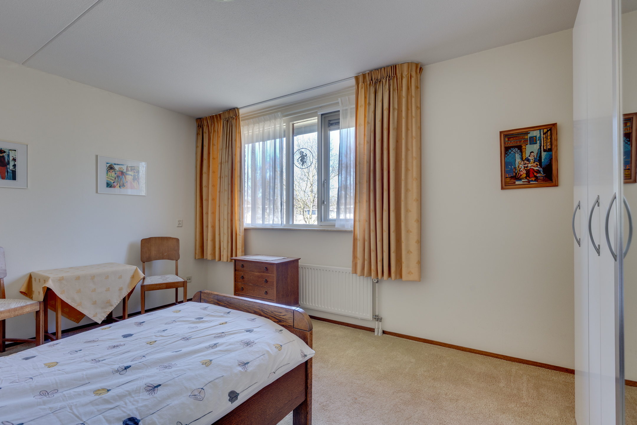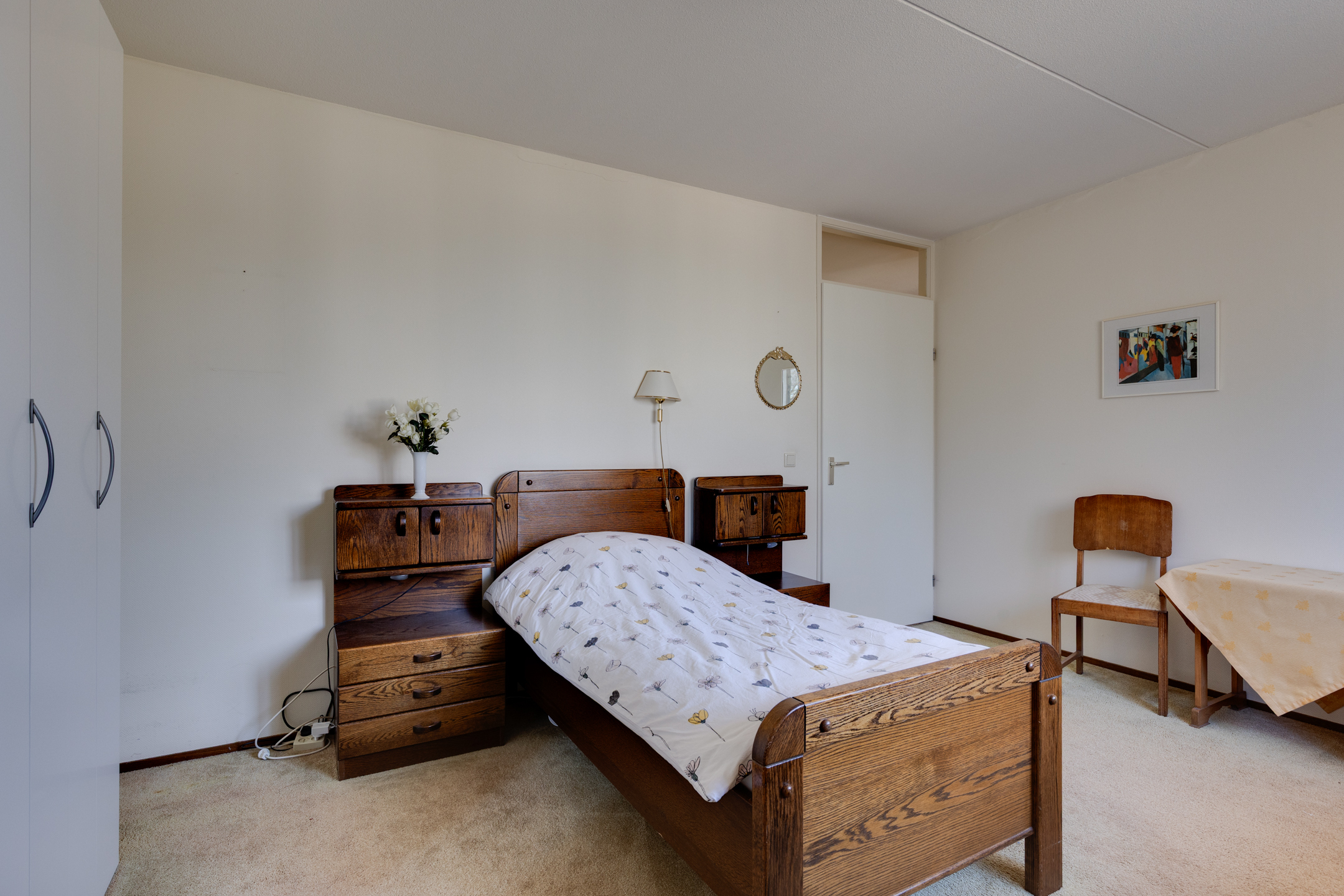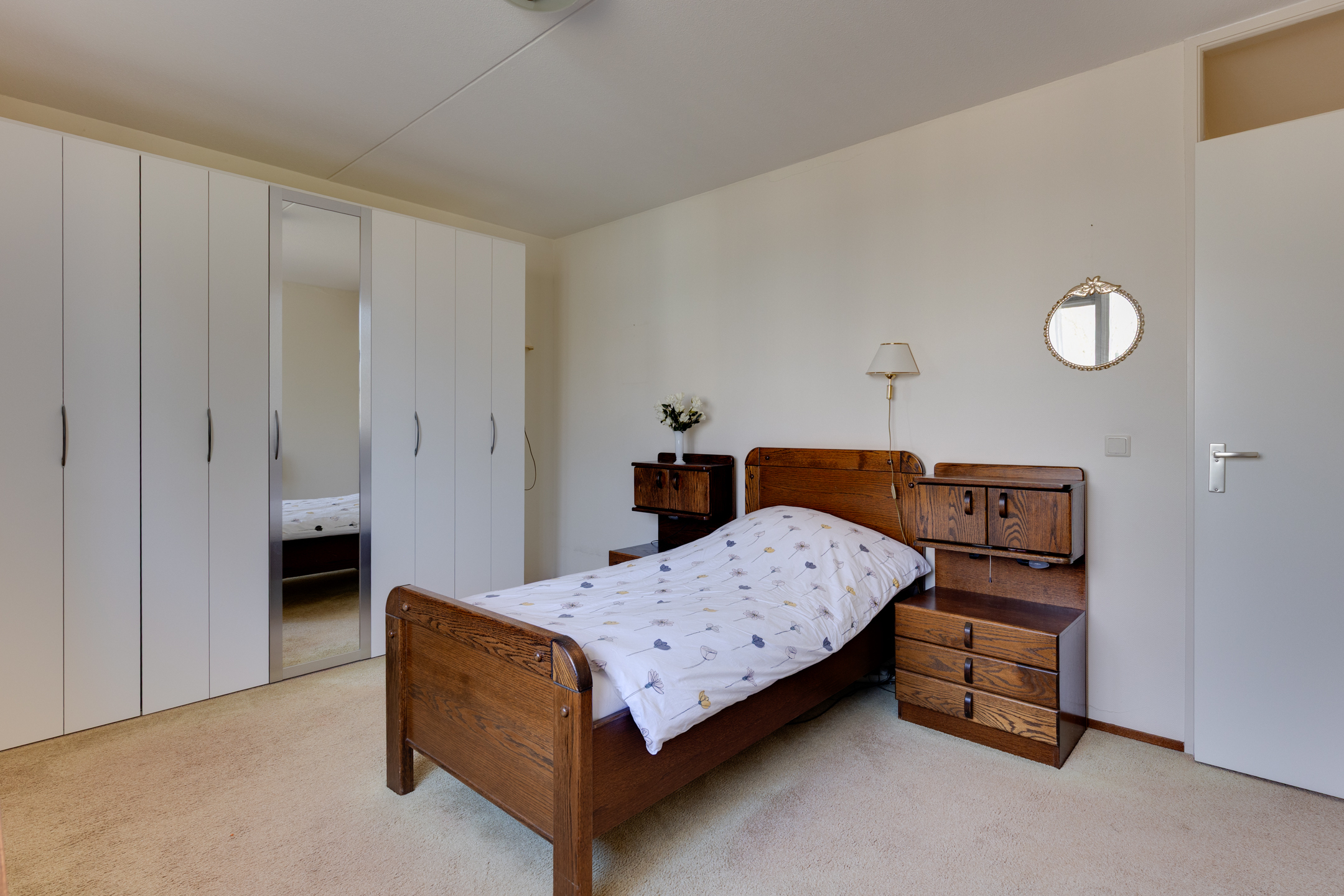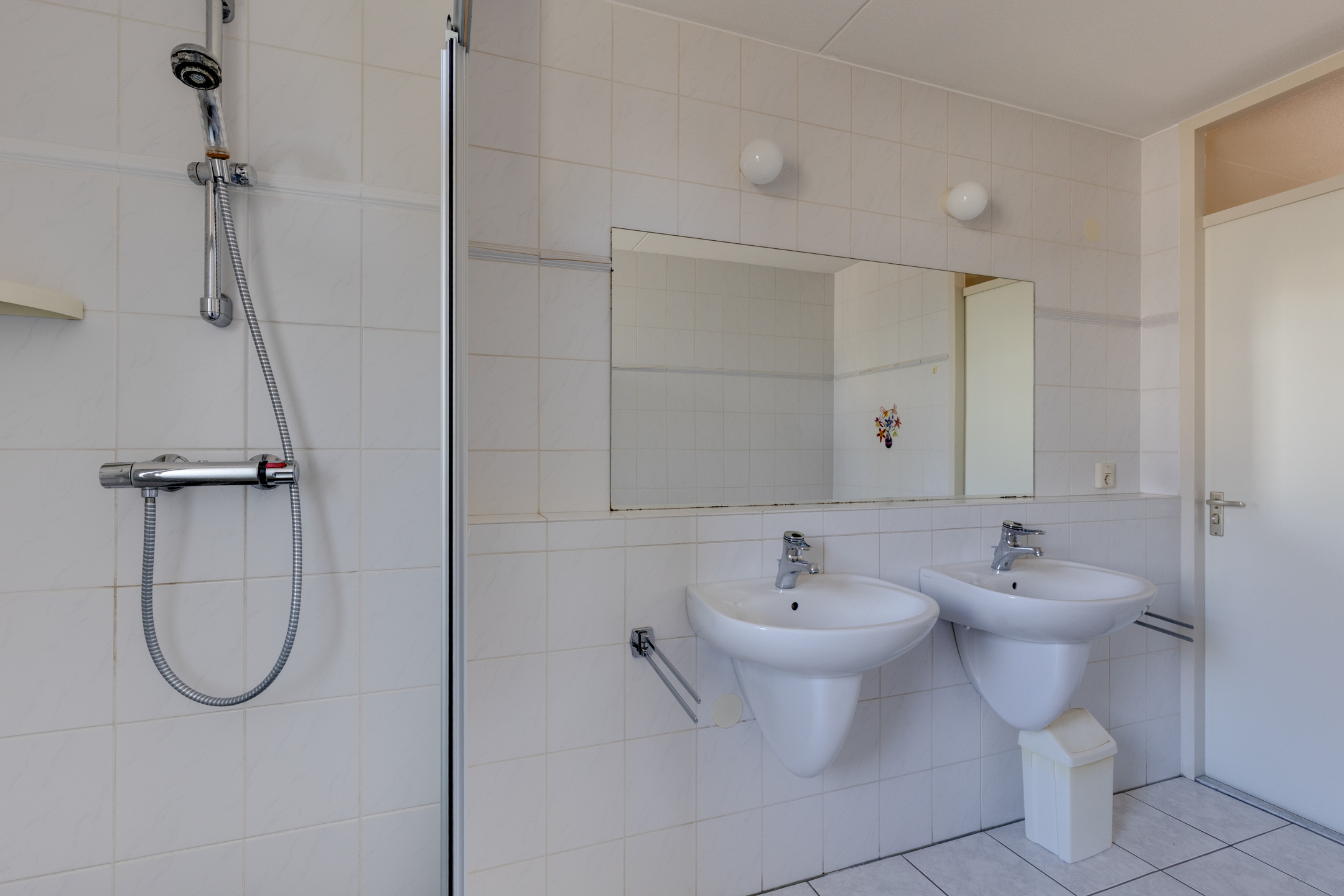 Een royale woonkamer heeft door de grote ramen veel lichtinval en biedt een fraai uitzicht. De schuifpui geeft toegang naar het riante balkon, dat op het zonnige zuidwesten ligt. De open keuken is uitgerust met inbouwapparaten met aangrenzend het eetgedeelte. Aan de achterzijde bevinden zich twee slaapkamers, waarvan de hoofdslaapkamer royaal te noemen is. Tussen de slaapkamers ligt de ruime, geheel betegelde badkamer.