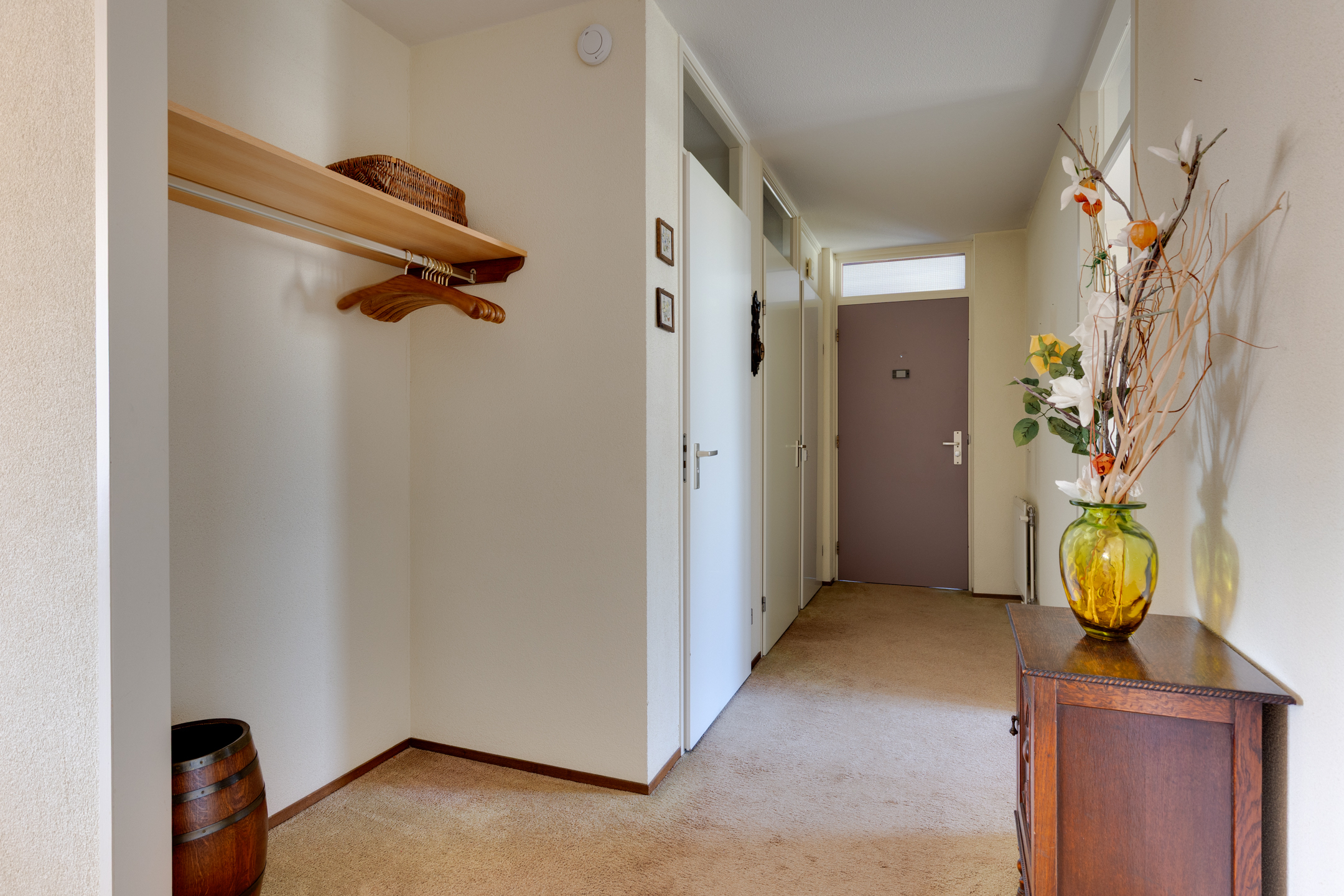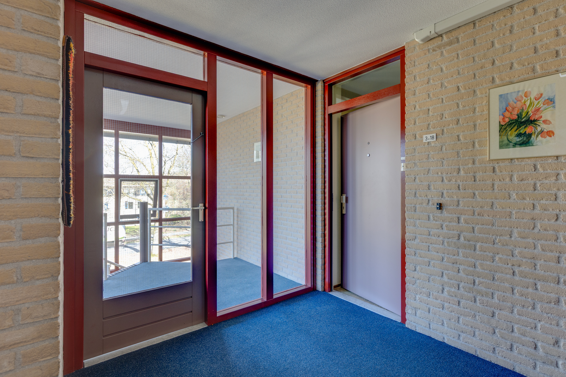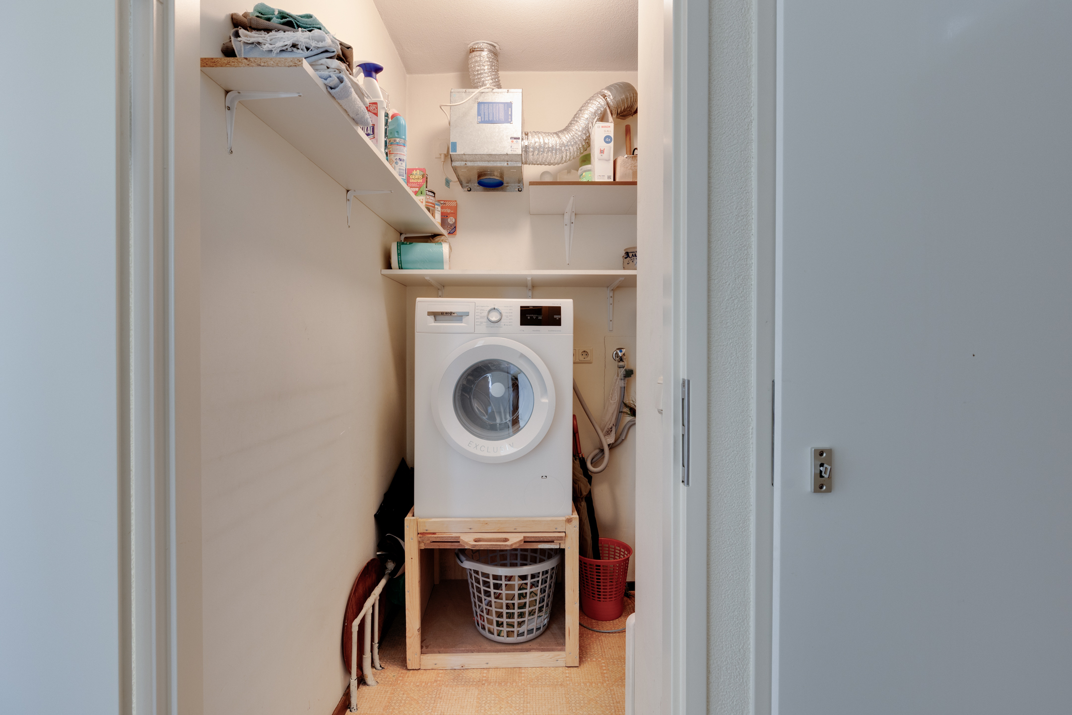 Via de centrale entree, die voorzien is van brievenbussen en een intercom-videosysteem, heb je de keuze om het appartement te bereiken via de trap of de ruime lift. In het appartement biedt de ruime hal o.a. toegang tot een praktische berging met cv-opstelling, aansluiting voor de wasmachine en extra opbergruimte.