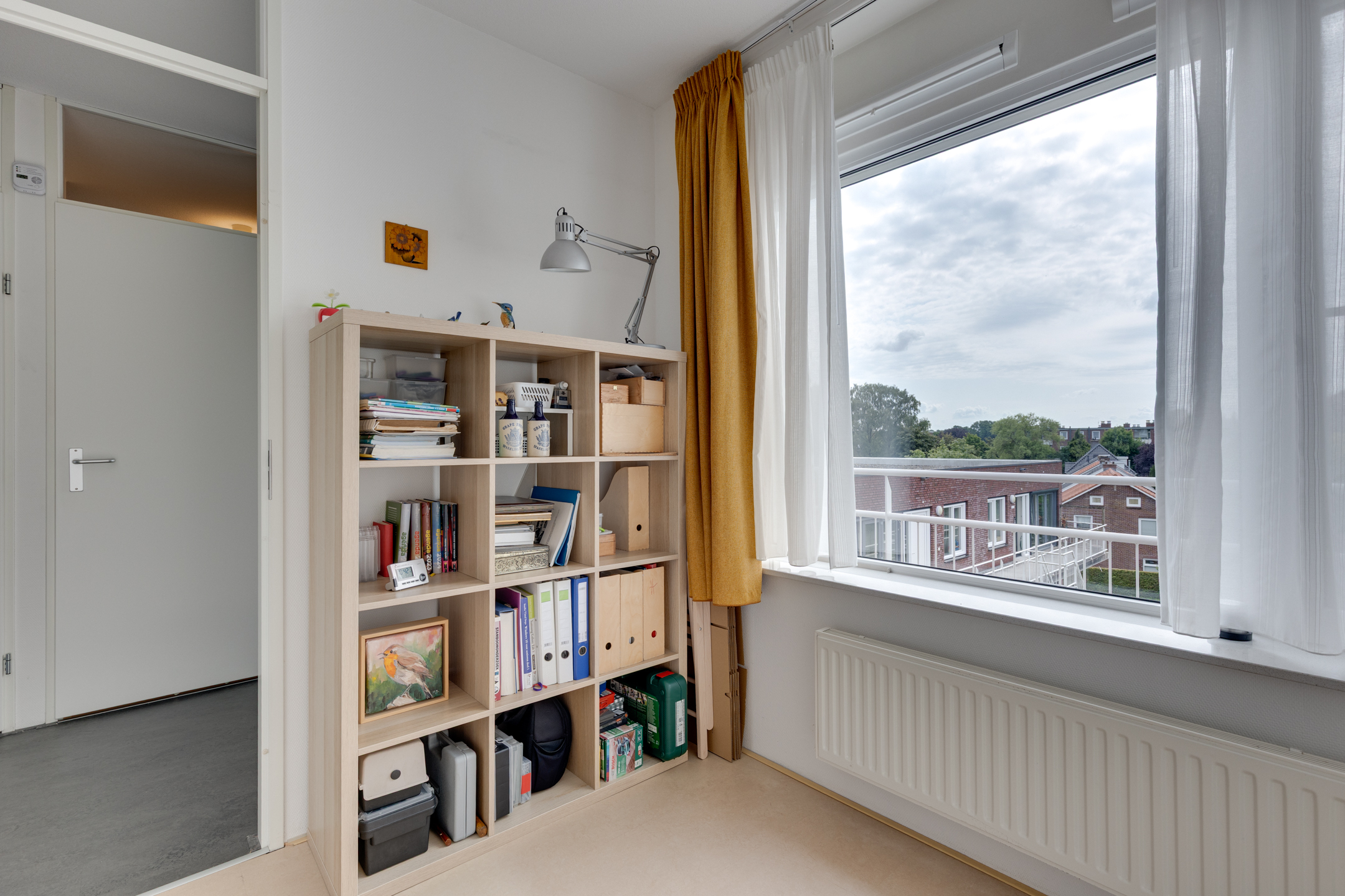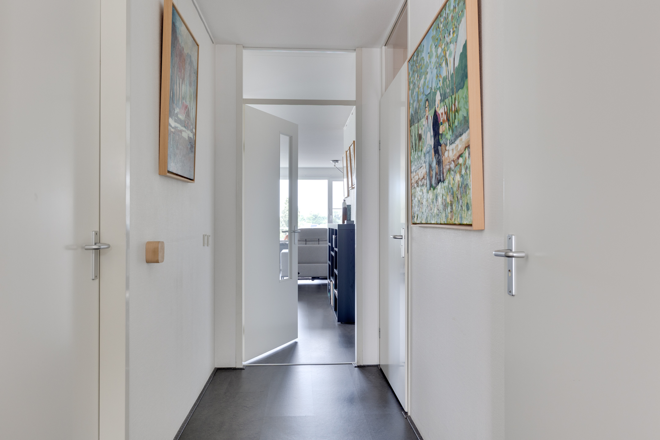 4e WOONLAAG: entree / hal met meterkast en domotica; berging met aansluiting voor wasmachine en -droger en opstelplaats van c.v.-ketel; toilet, twee ruime slaapkamers; badkamer voorzien van douche, wastafel en 2e toilet; ruime en lichte woonkamer met uitzicht over Hengelo; halfopen keuken voorzien van kookplaat, afzuigkap, oven, koel- / vriescombi en vaatwasser. Het appartement beschikt over een royaal patiobalkon en een buitenbalkon (samen te voegen of af te sluiten middels harmonicadeuren).