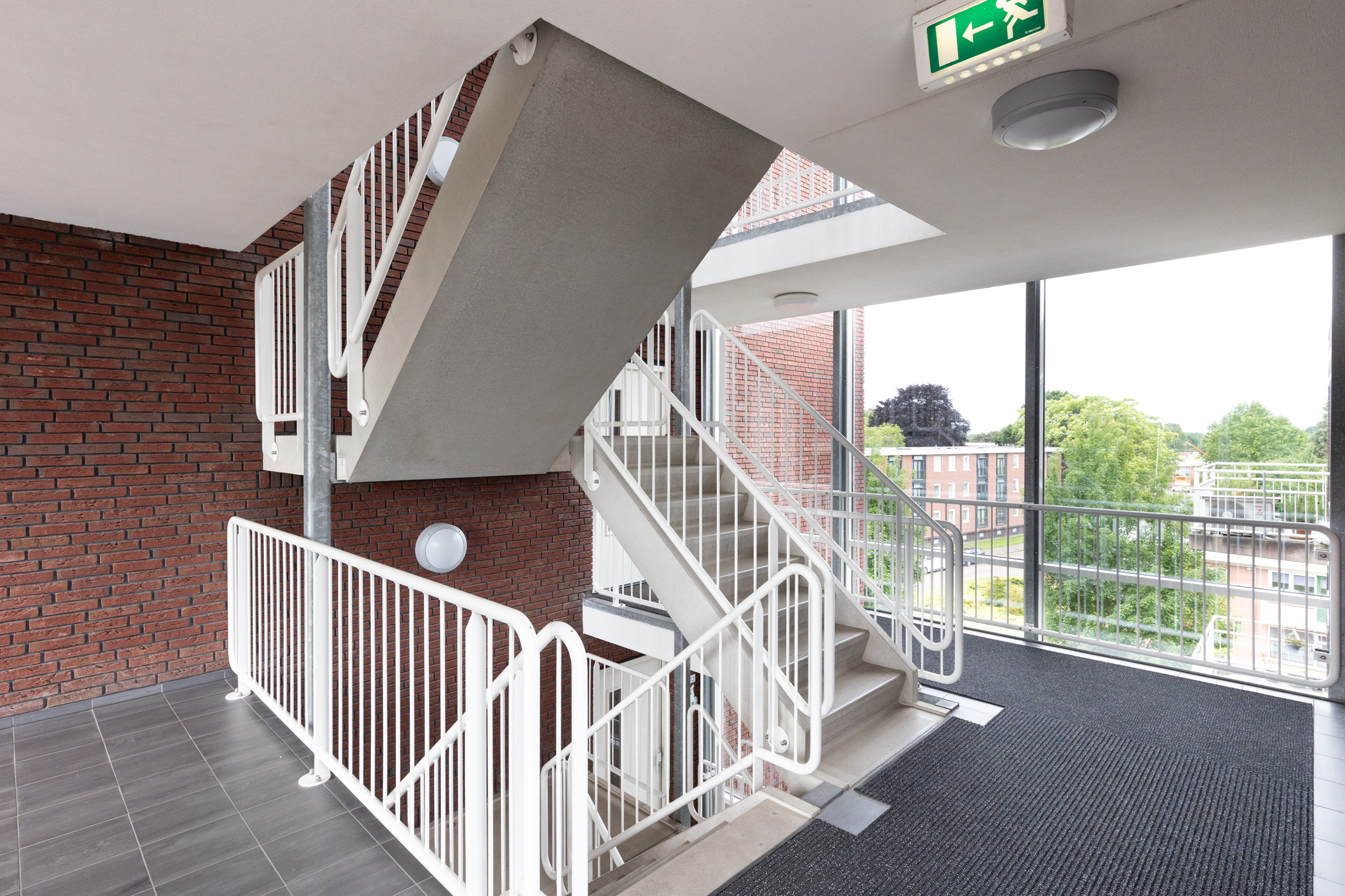 BEGANE GROND: binnenplaats met parkeerplaatsen; centrale hal / entree met videofooninstallatie, brievenbussen en toegang naar galerij.