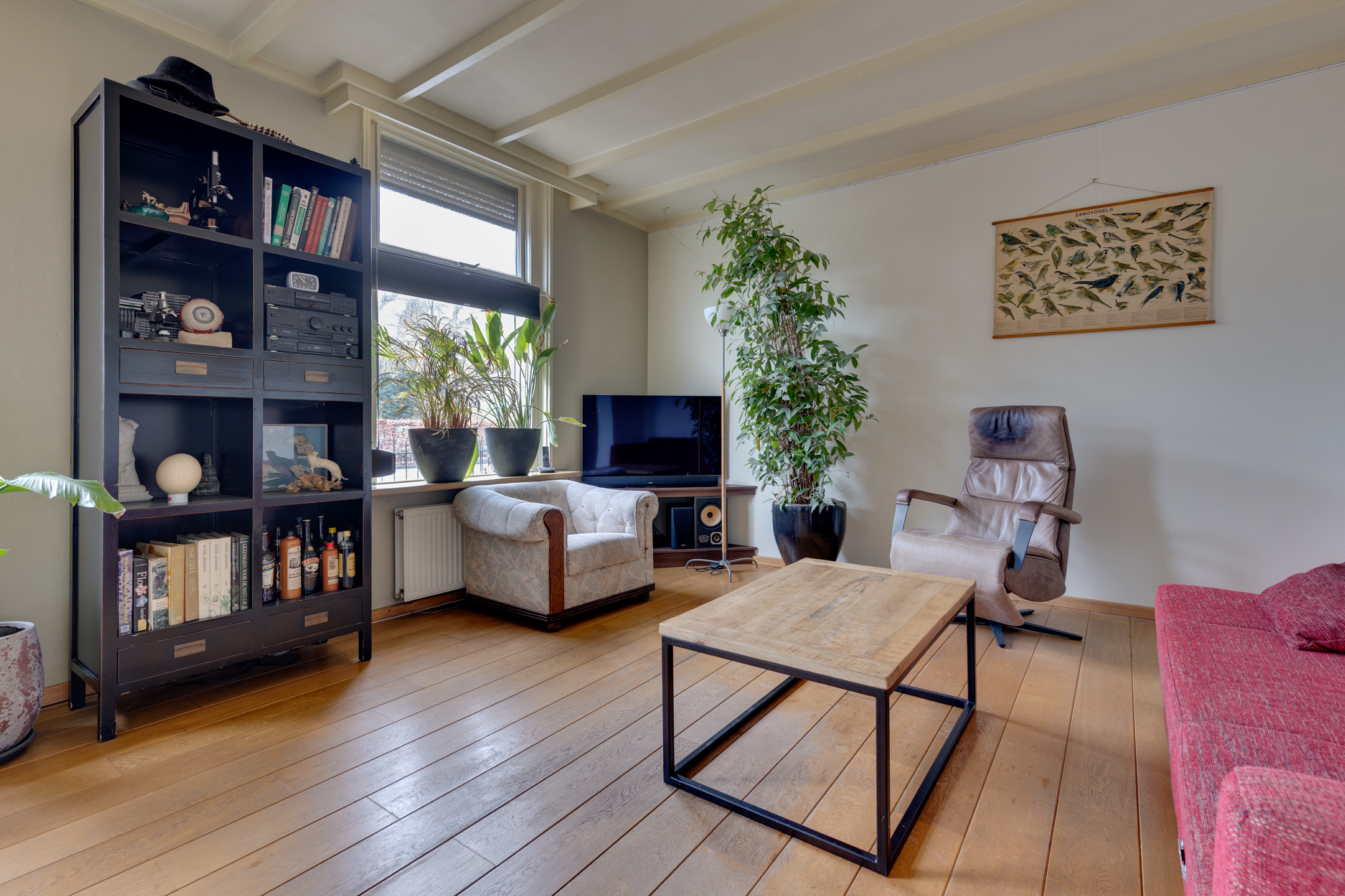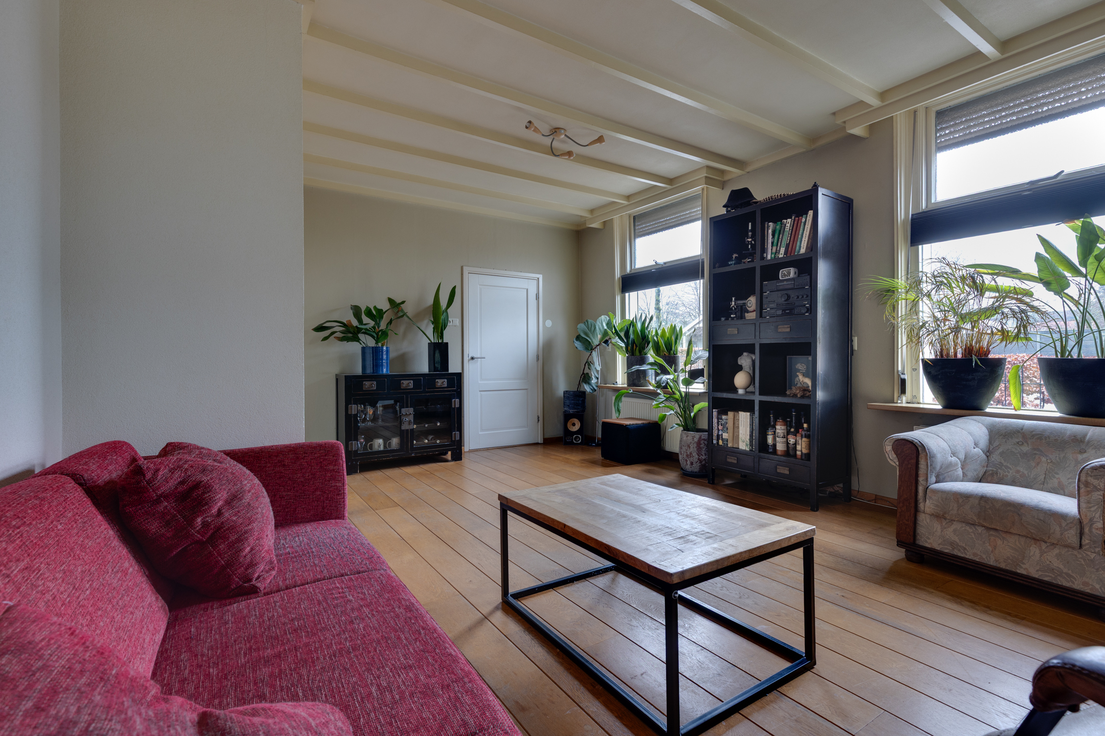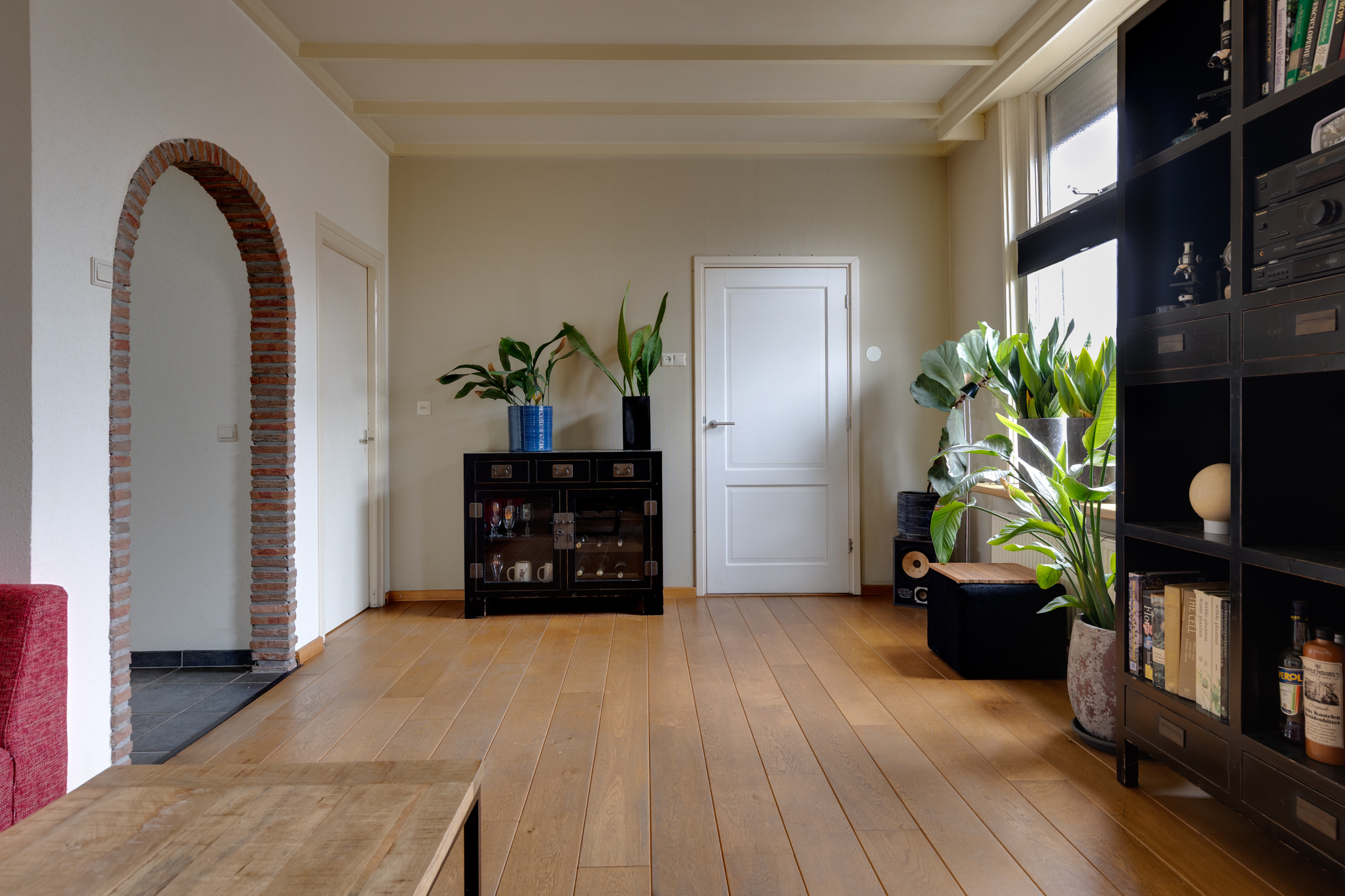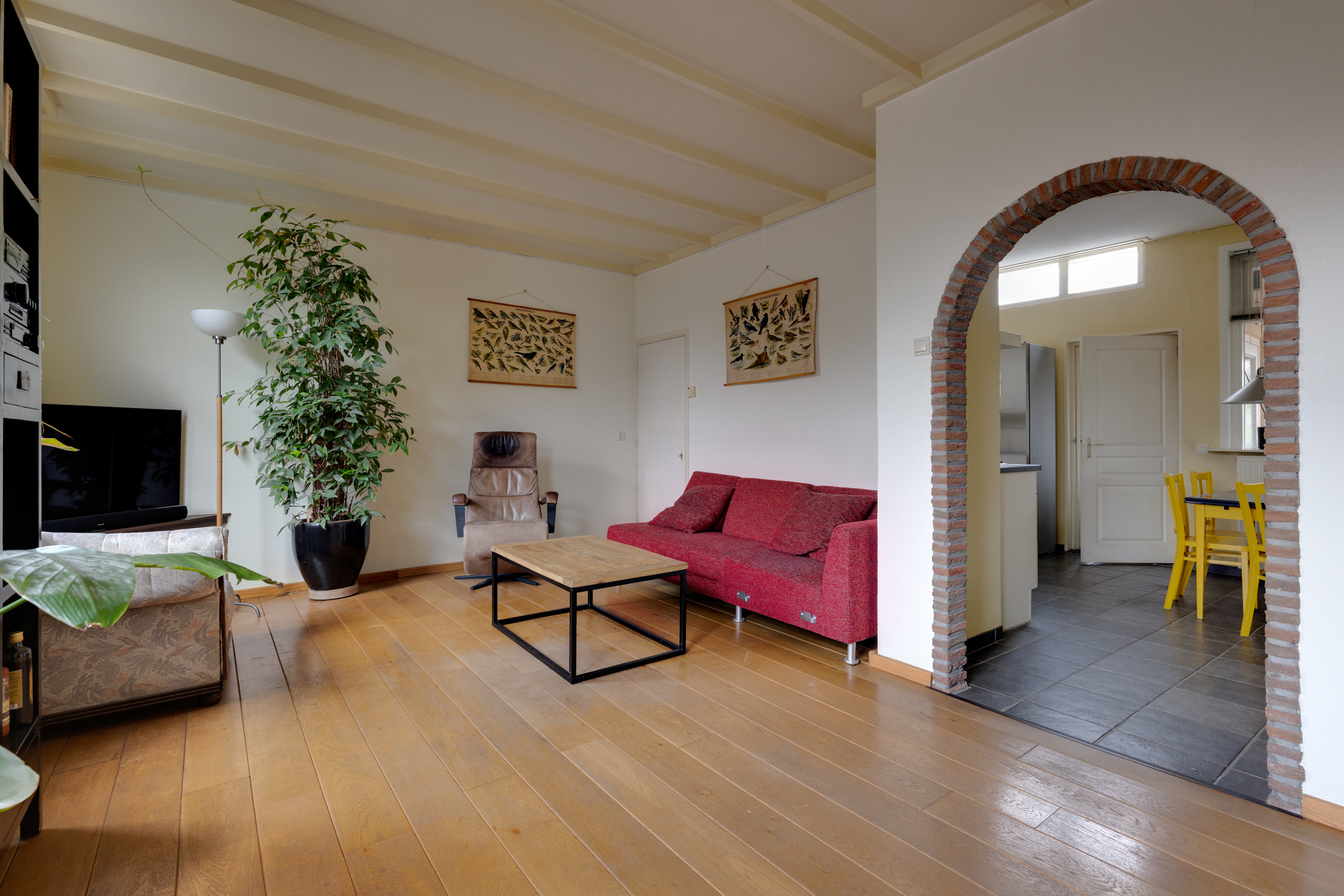 - Straatgerichte woonkamer en half open keuken