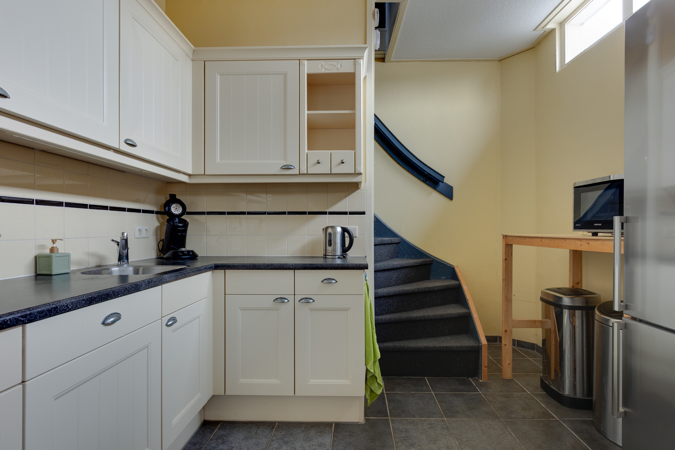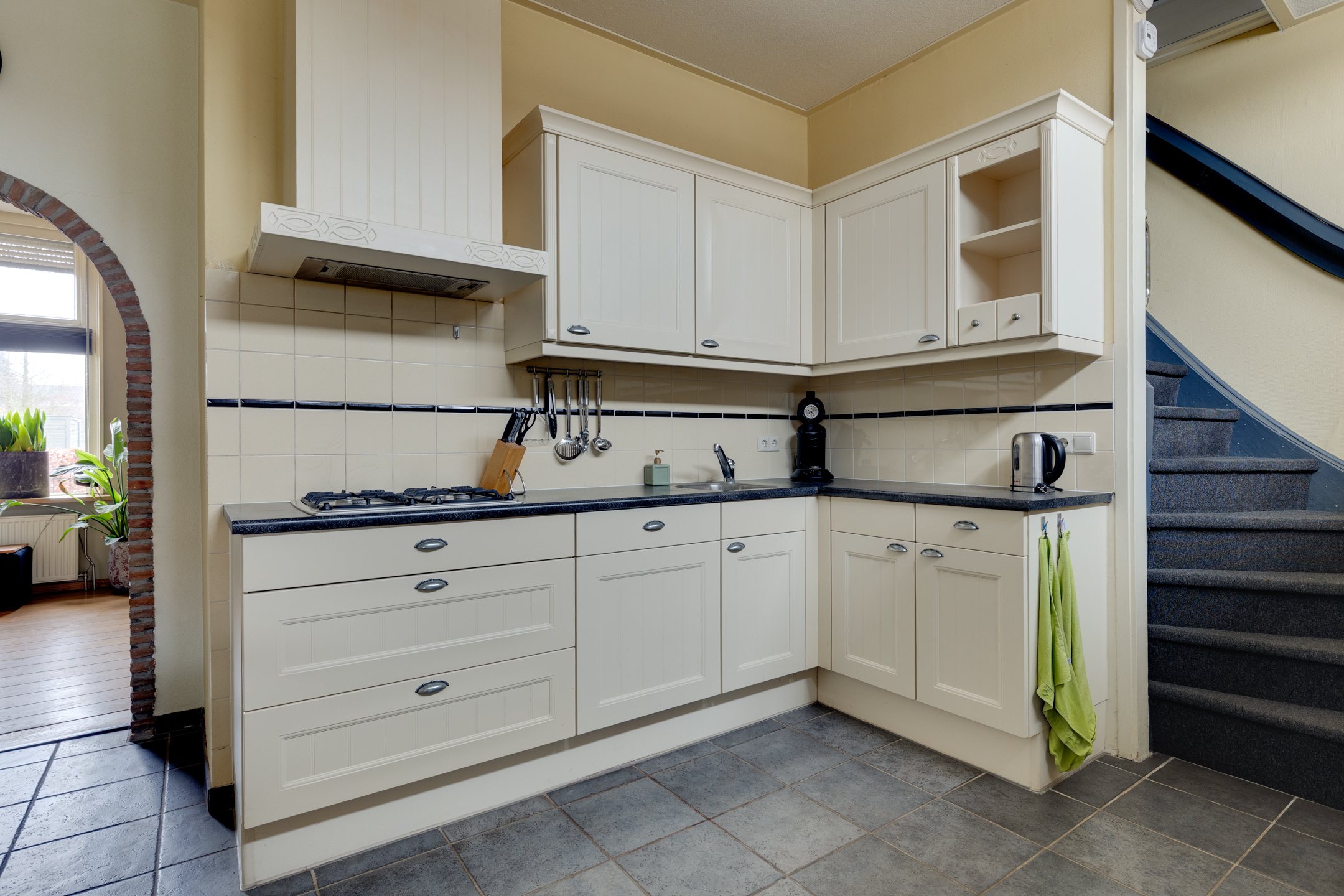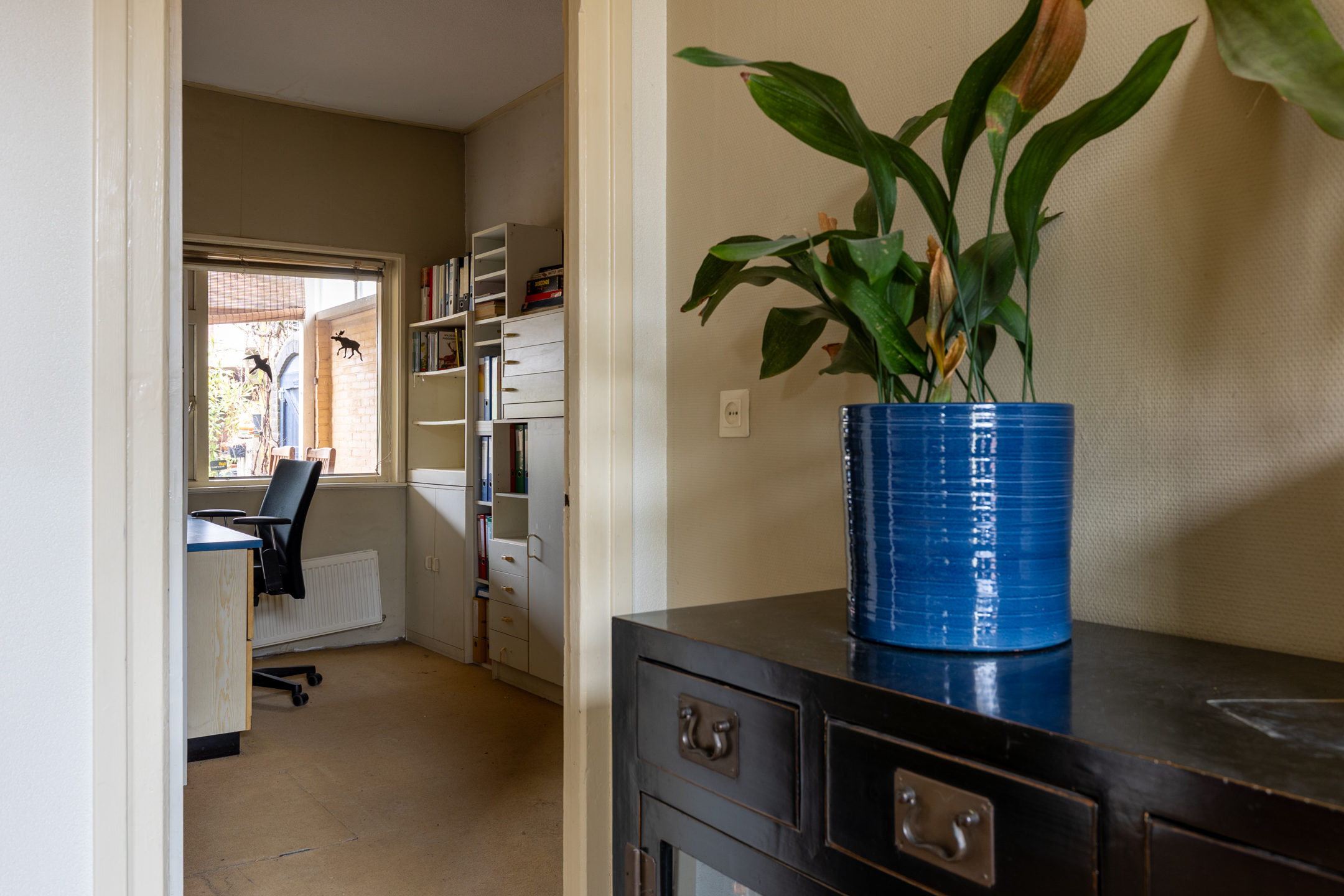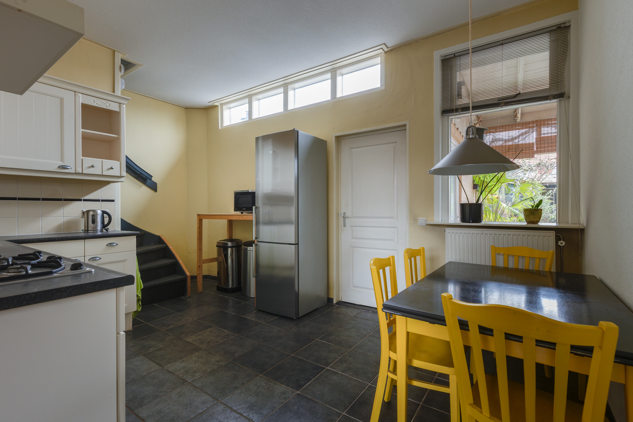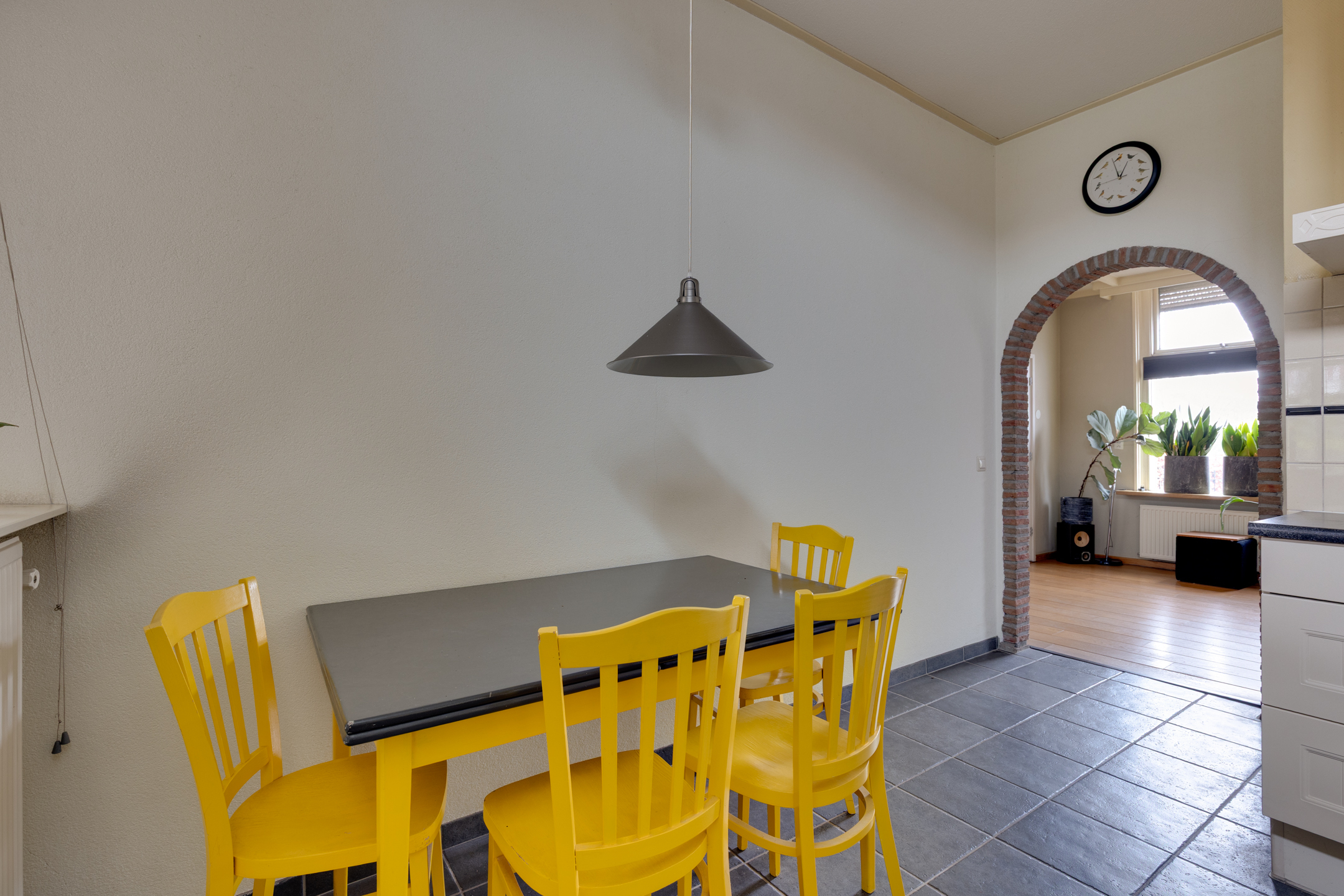 - Straatgerichte woonkamer en half open keuken