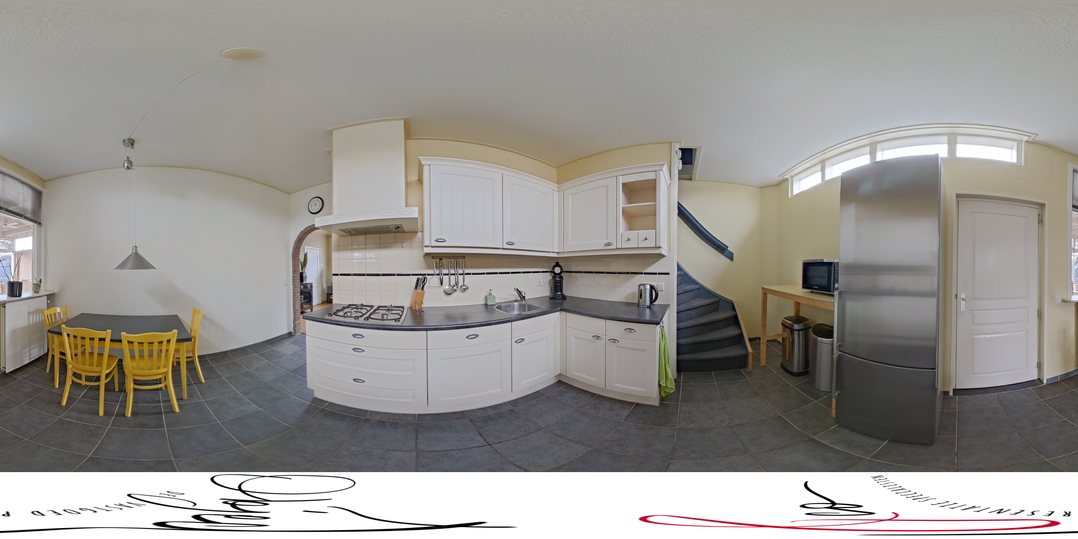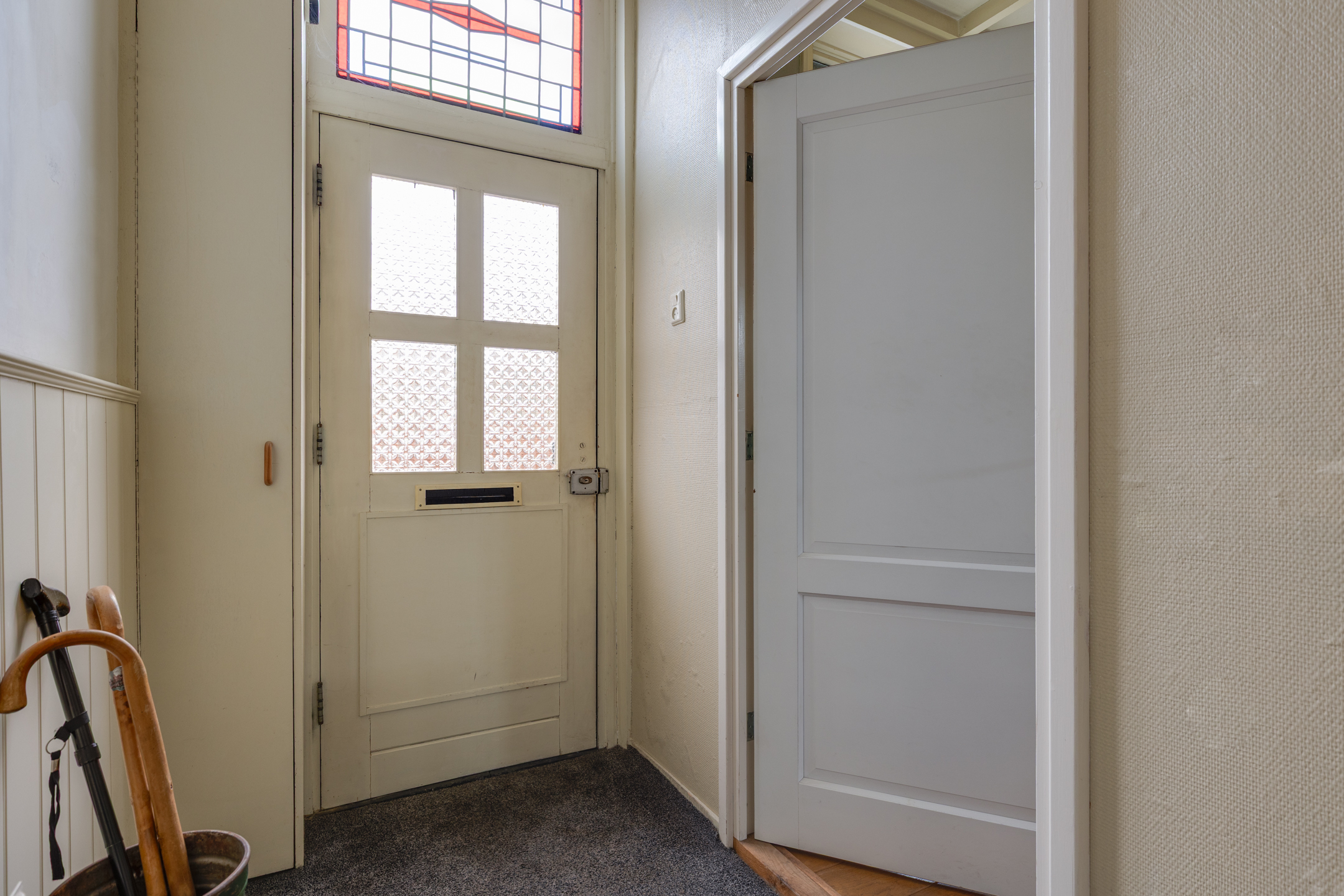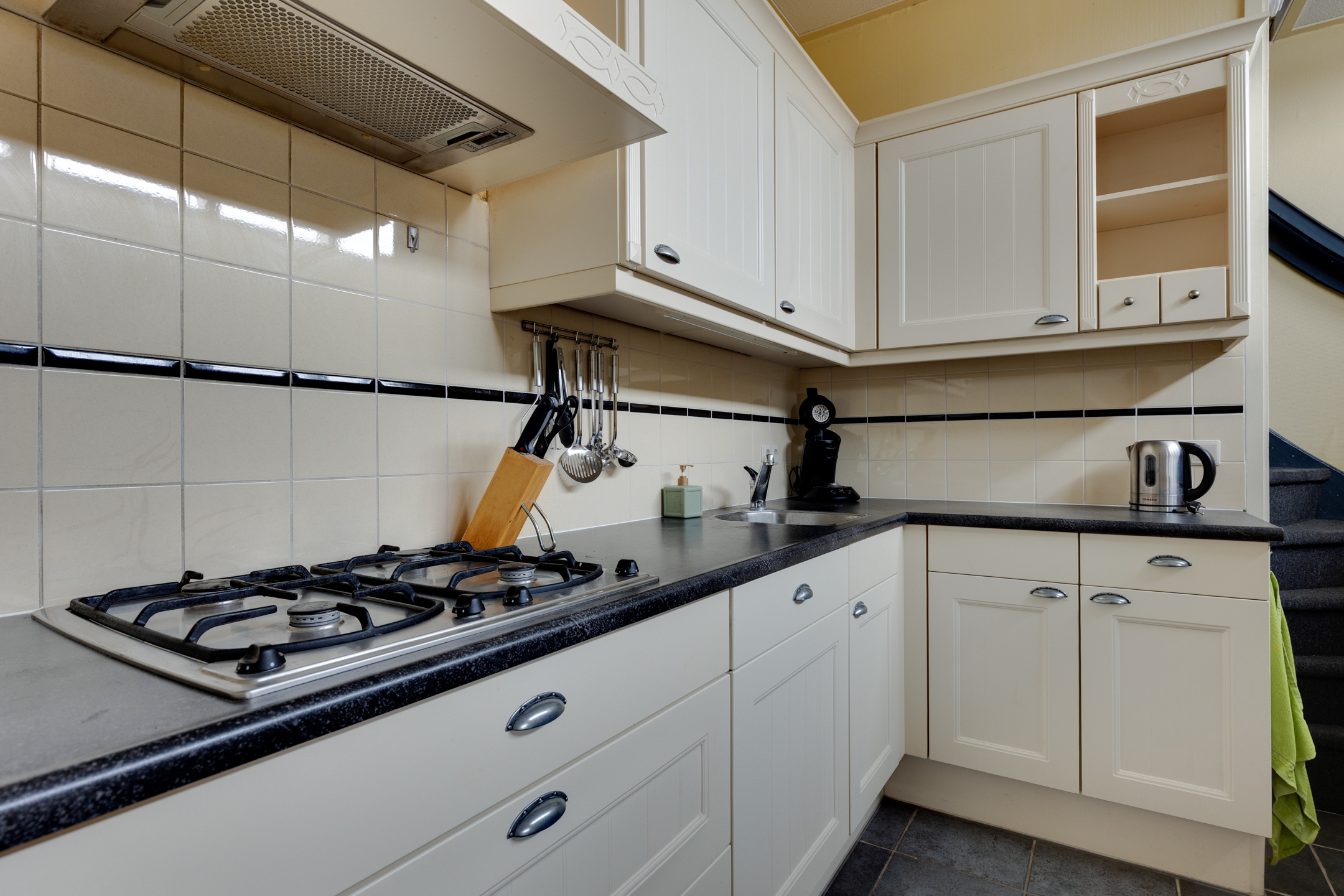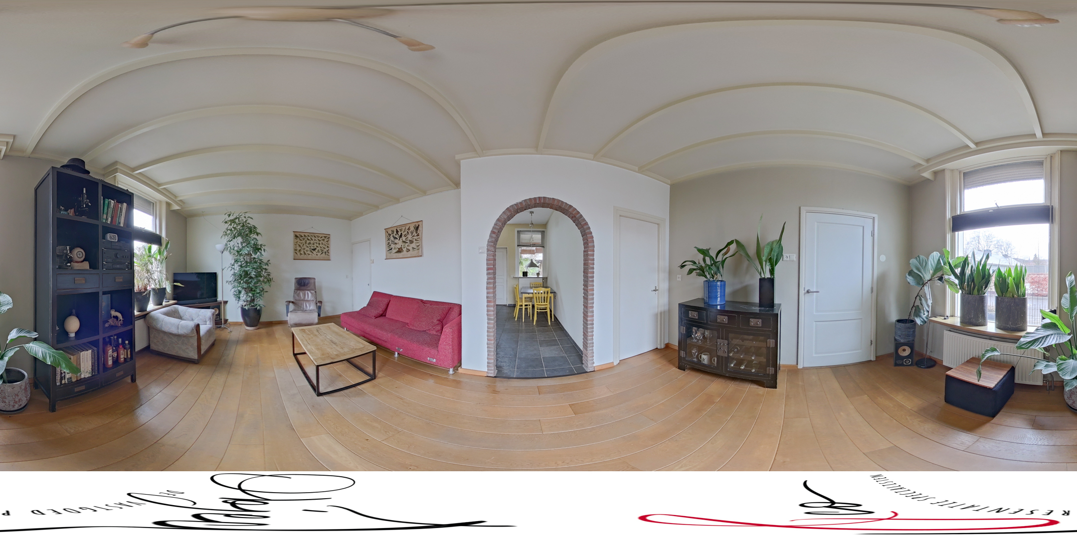 - Straatgerichte woonkamer en half open keuken
