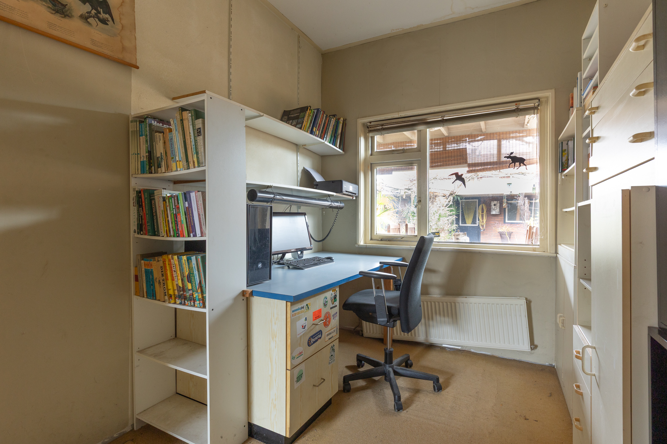 Via de entree / hal, waar twee handige inbouwkasten zijn geplaatst, loop je door naar de straatgerichte woonkamer. Deze staat in verbinding met een halfopen keuken met eetgedeelte. In de uitbouw achter de keuken is de achter entree, de badkamer met inloopdouche en wastafel gerealiseerd maar ook een praktische ruimte met wasmachine-/droger opstelling en de cv-installatie. Tevens zit daar een separate toilet. Als laatste is er nog een (werk-)kamer wat nu gebruikt wordt als kantoor, maar hier zou ook een derde slaapkamer gemaakt kunnen worden. Leuk detail is in de tuin de overkapping, een verlenging van je leefruimte.