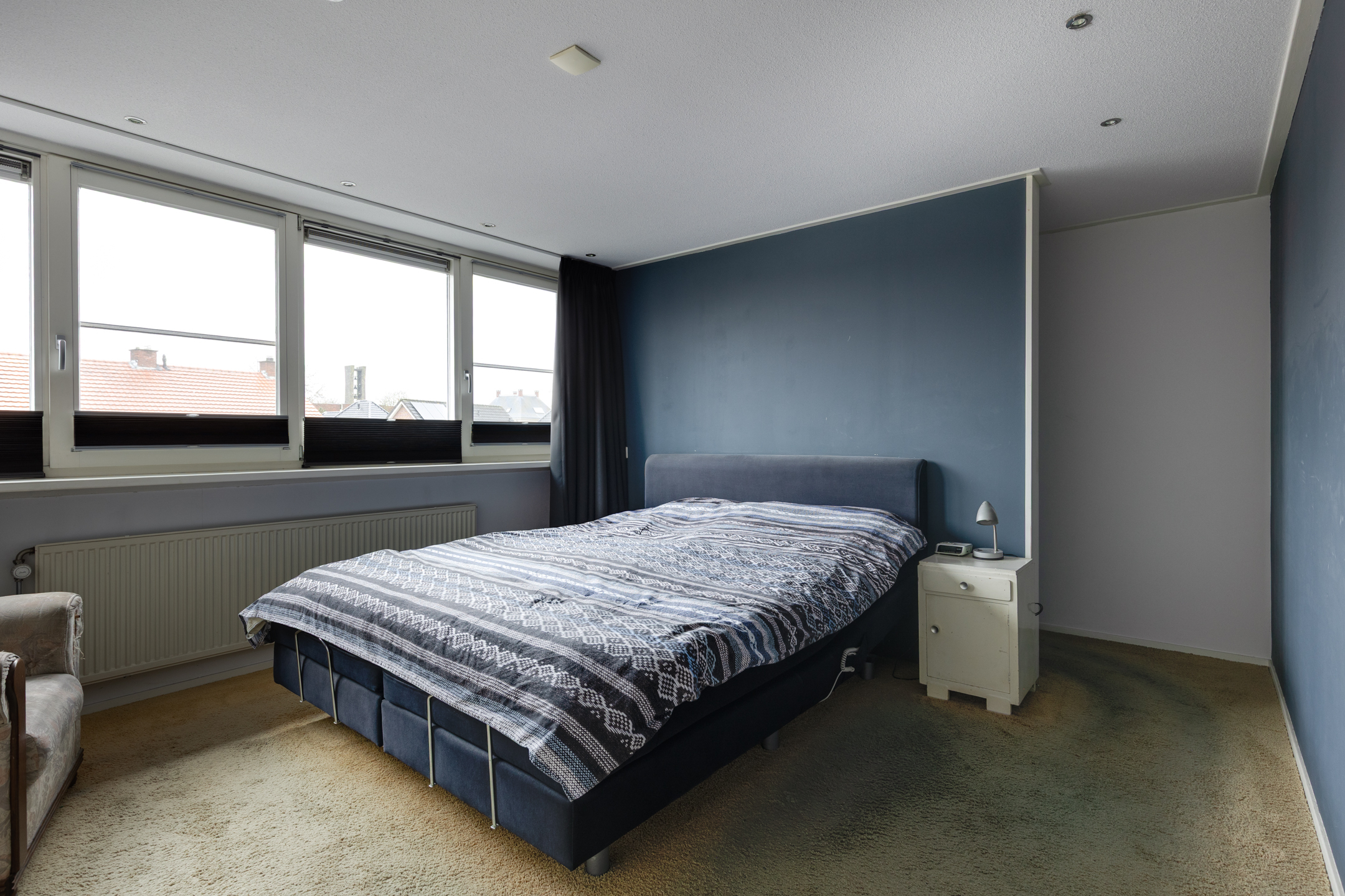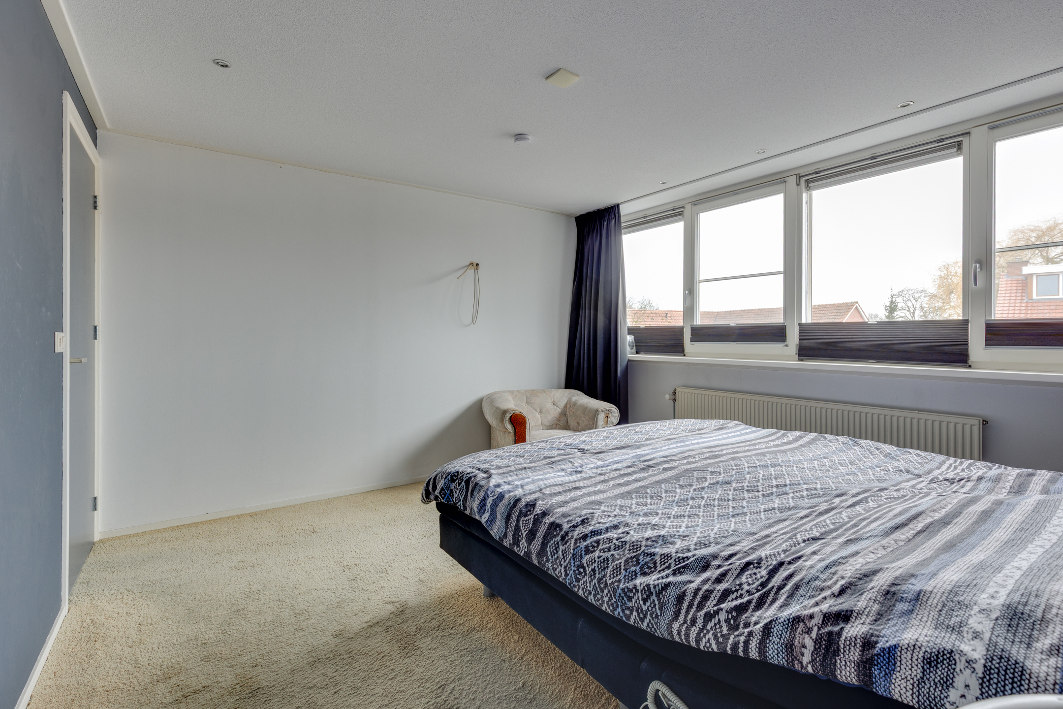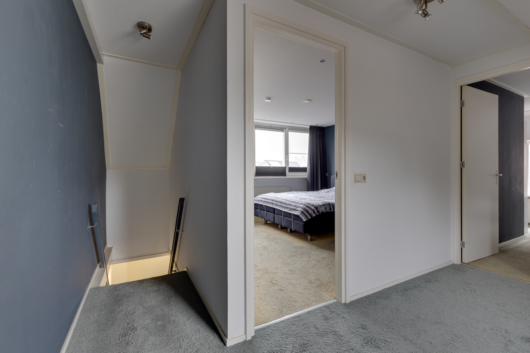 Je komt boven op een ruime overloop. Aan de achterzijde van de woning ios een grote dakkapel geplaatst waardoor een ruime slaapkamer is gerealiseerd inclusief inloopkast. Via de overloop is ook de tweede slaapkamer te bereiken.