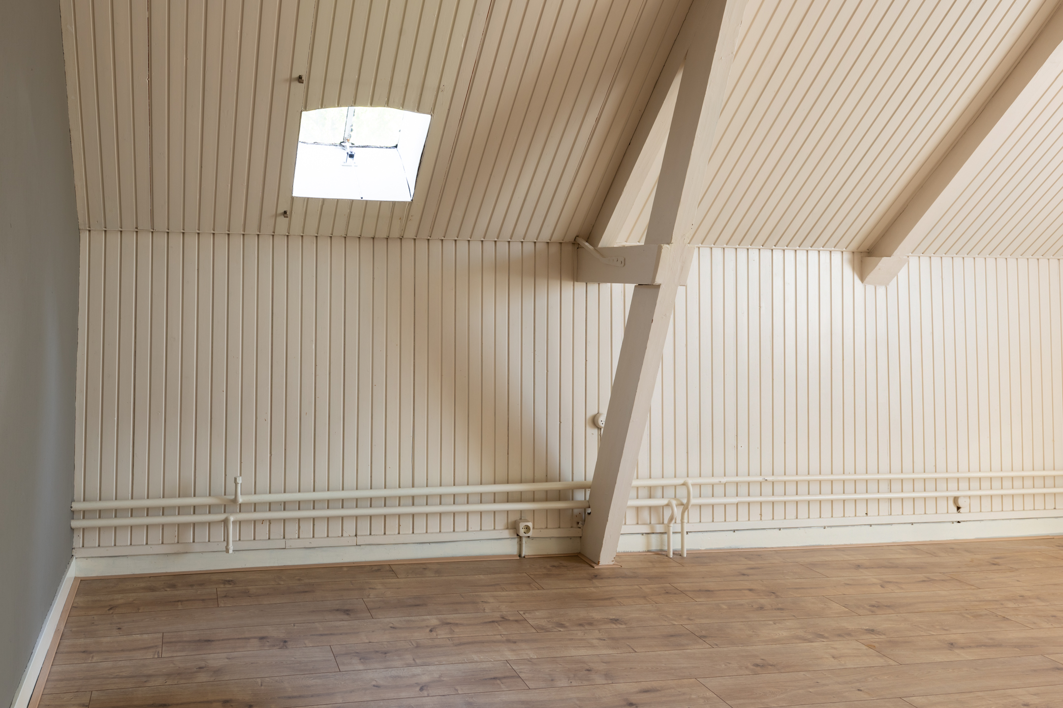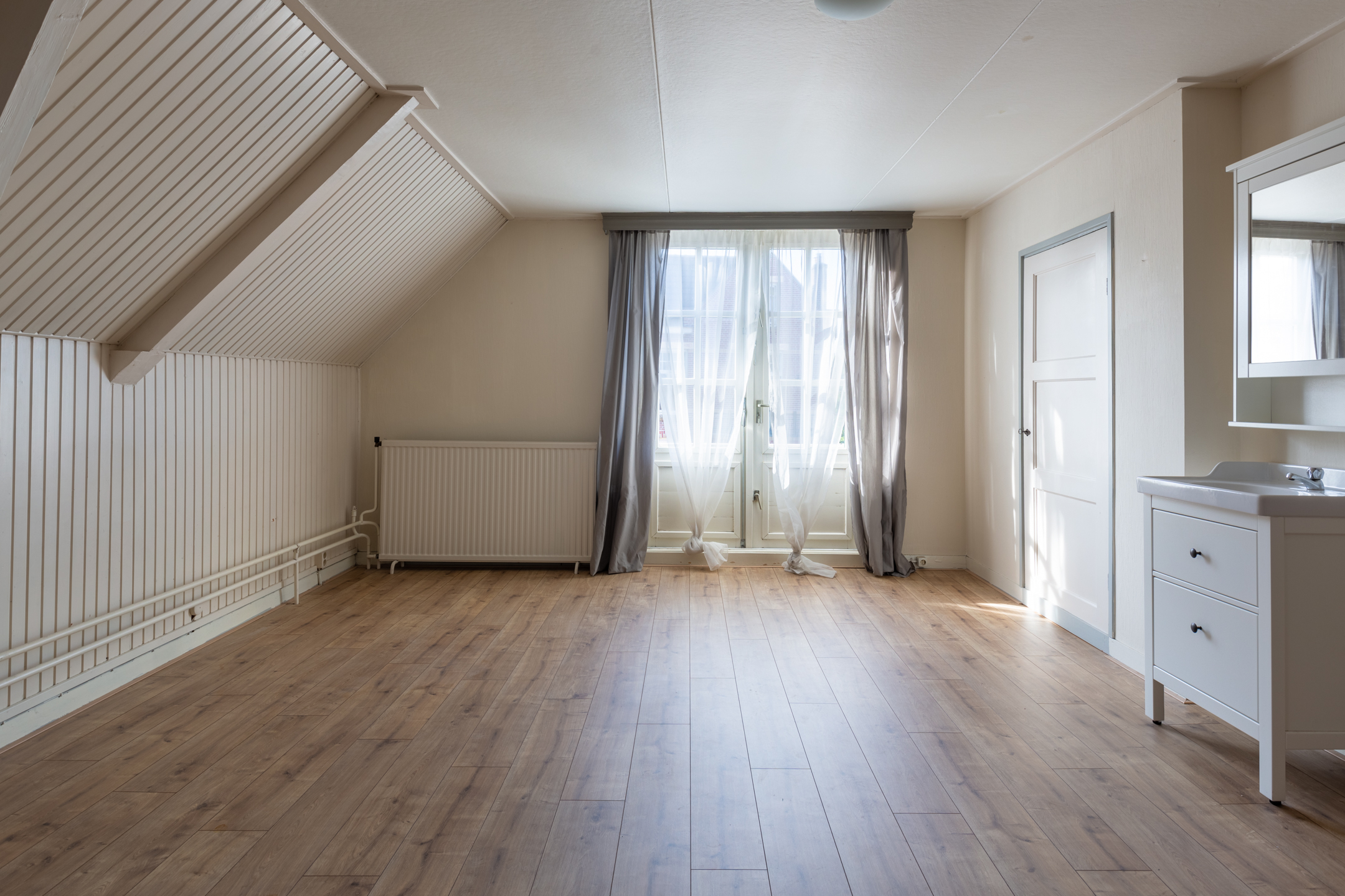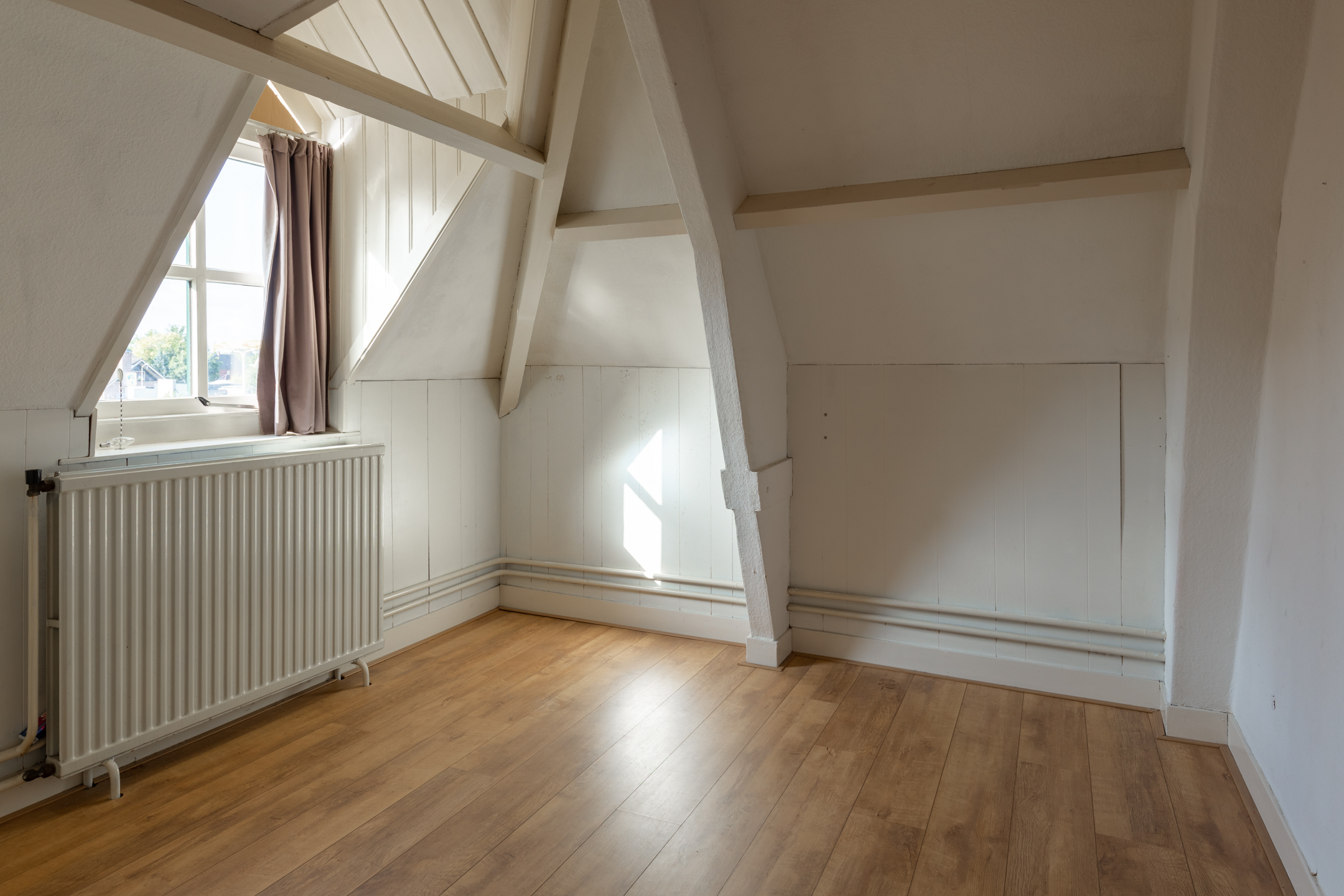 Vanuit de slaapkamer aan de achterzijde is via een vlizotrap de bergzolder bereikbaar.