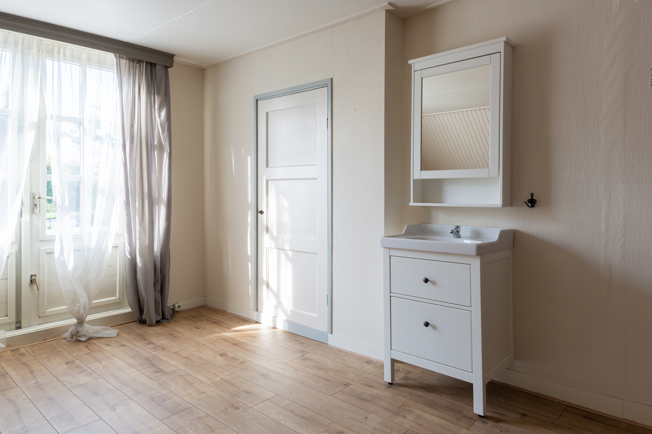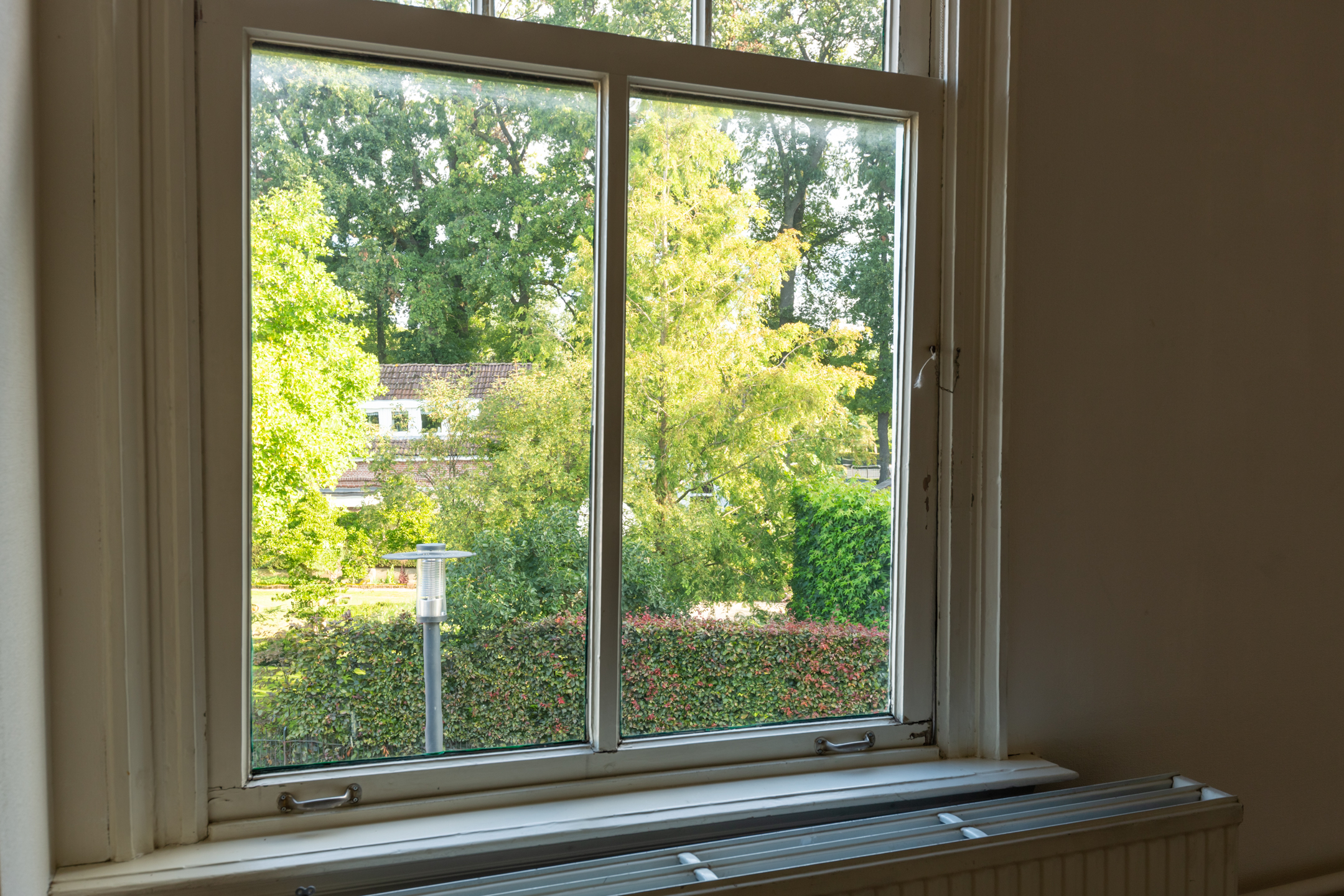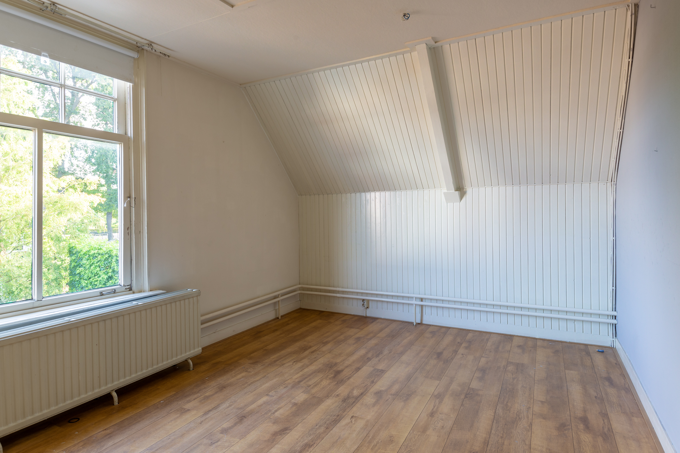 Vanuit de slaapkamer aan de achterzijde is via een vlizotrap de bergzolder bereikbaar.