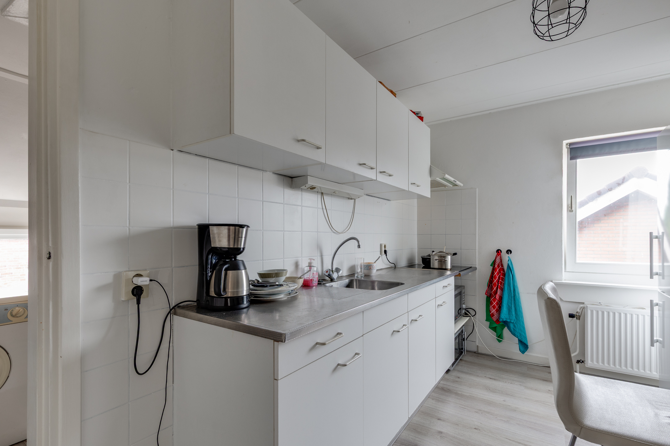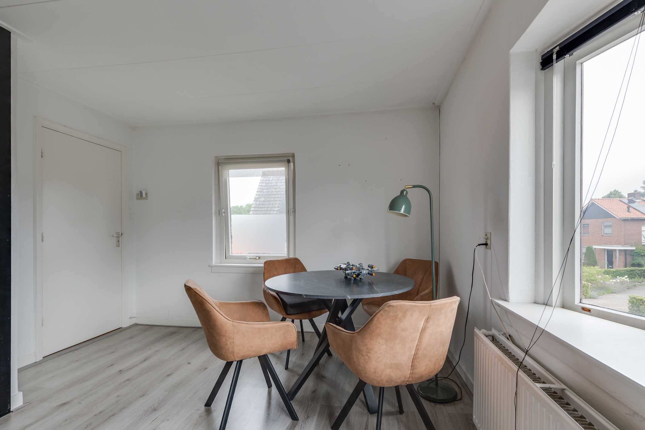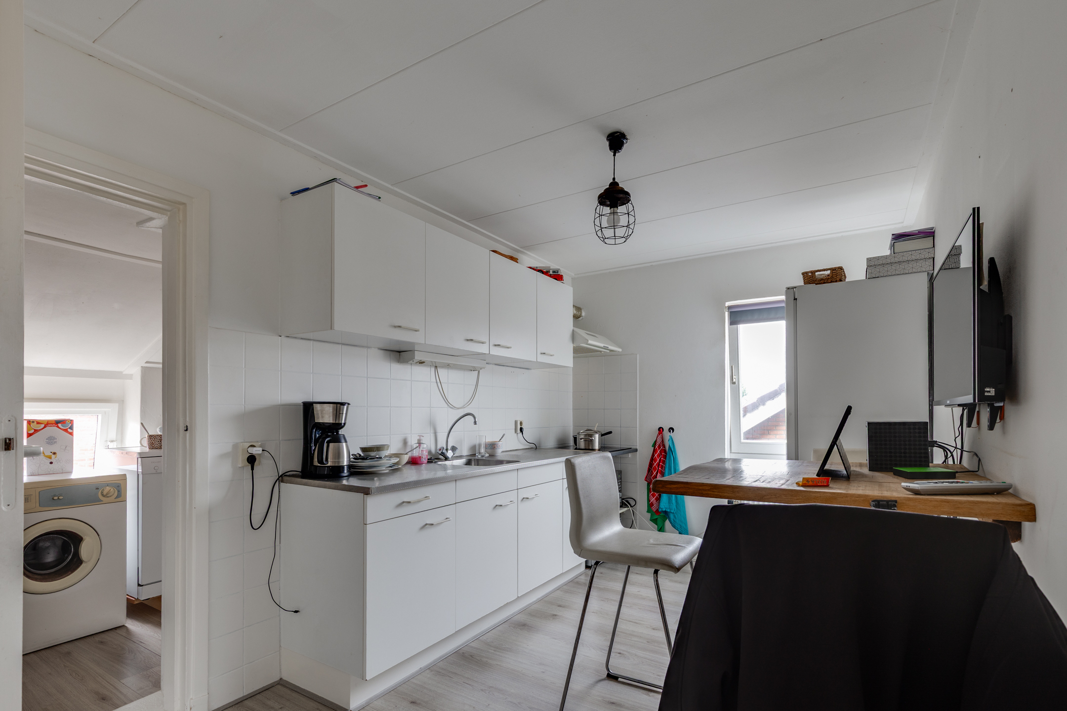 1e verdieping: woonkamer, keuken, bijkeuken, slaapkamer, badkamer.