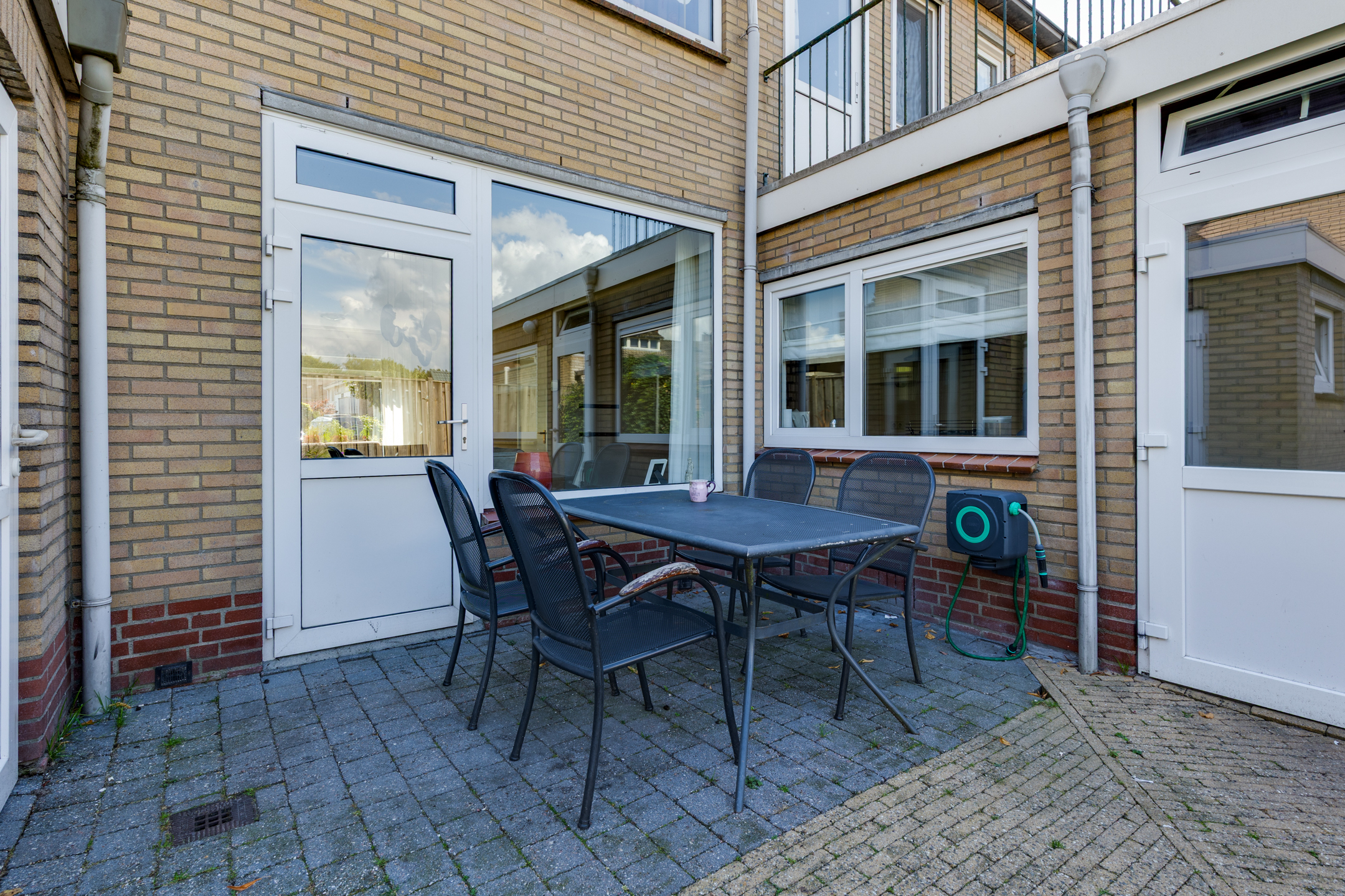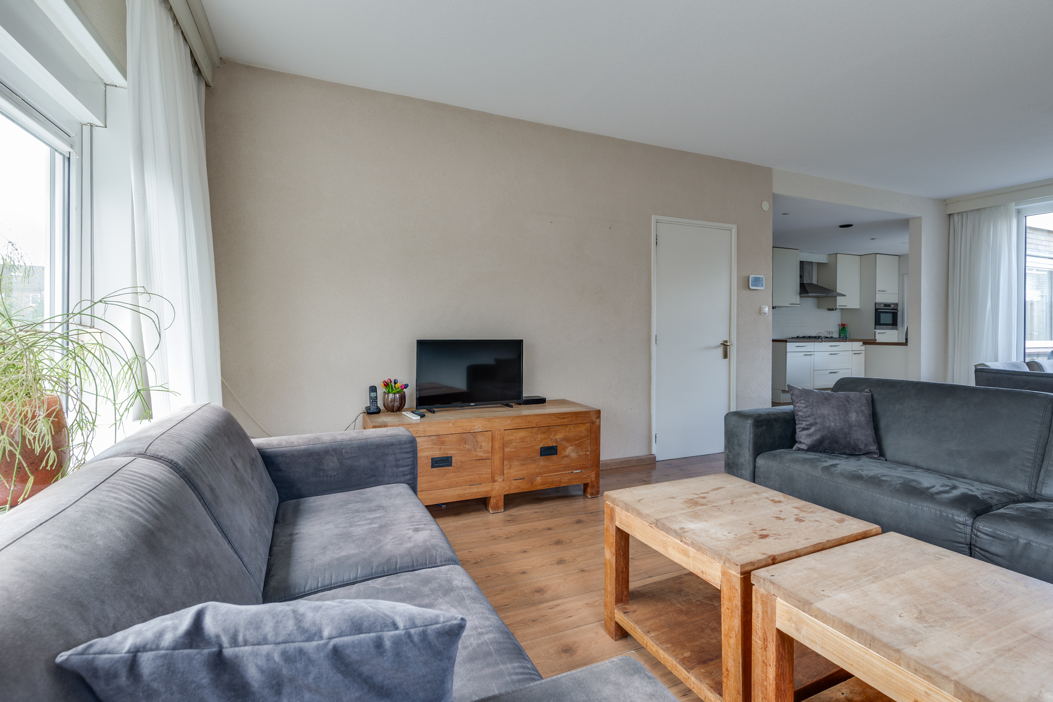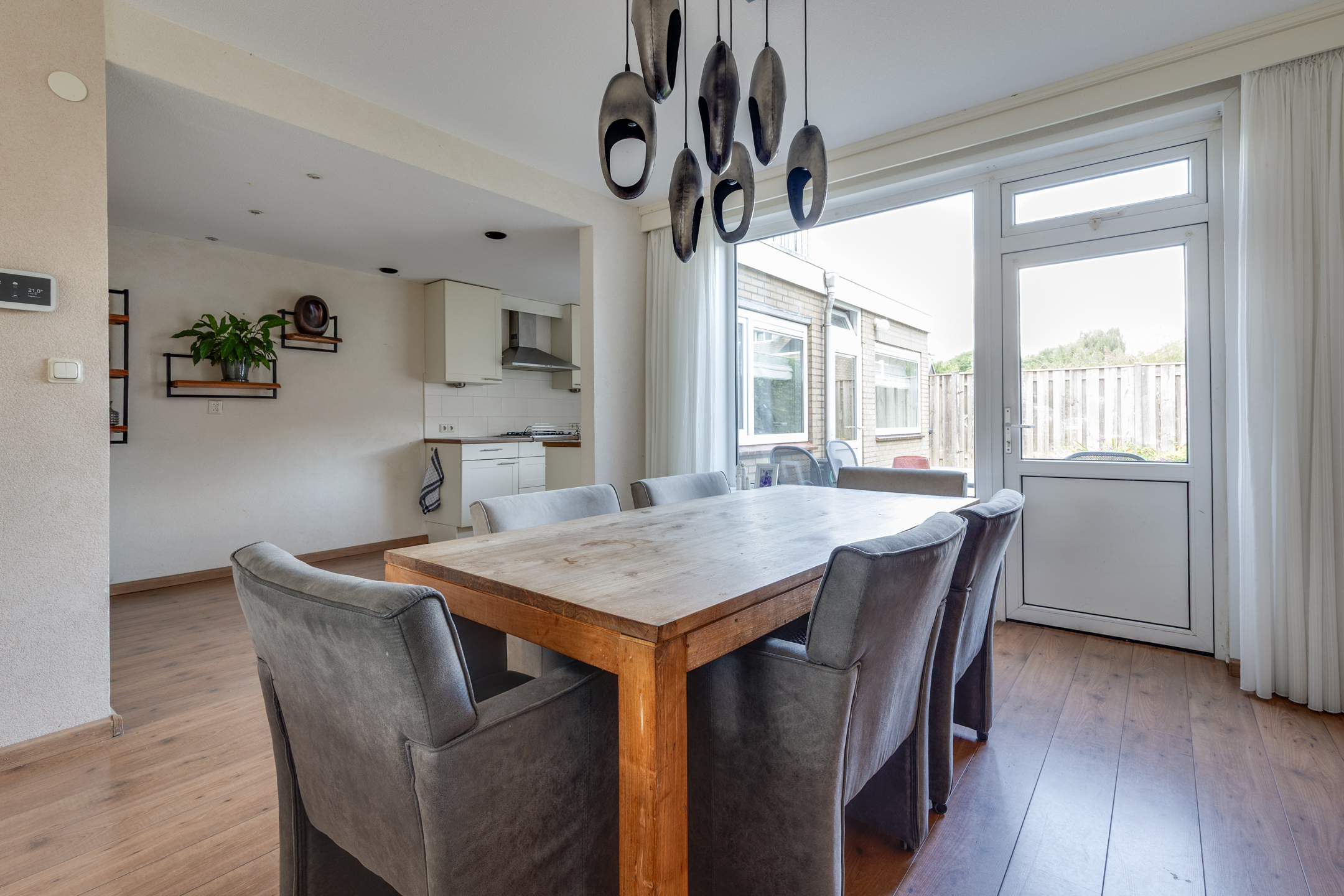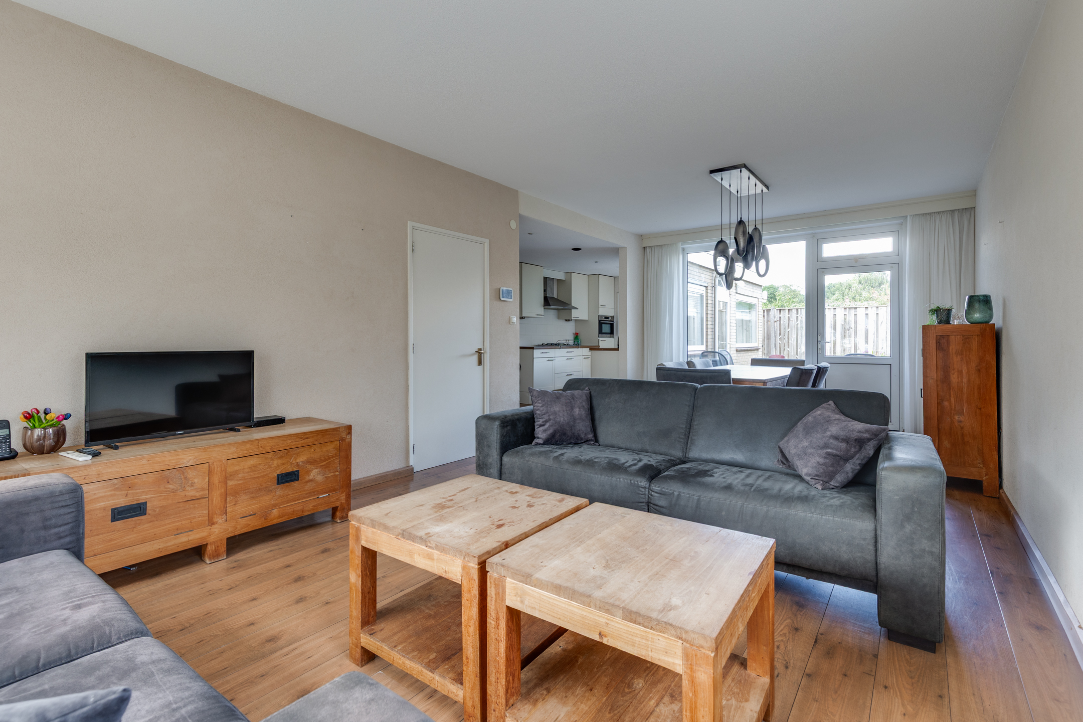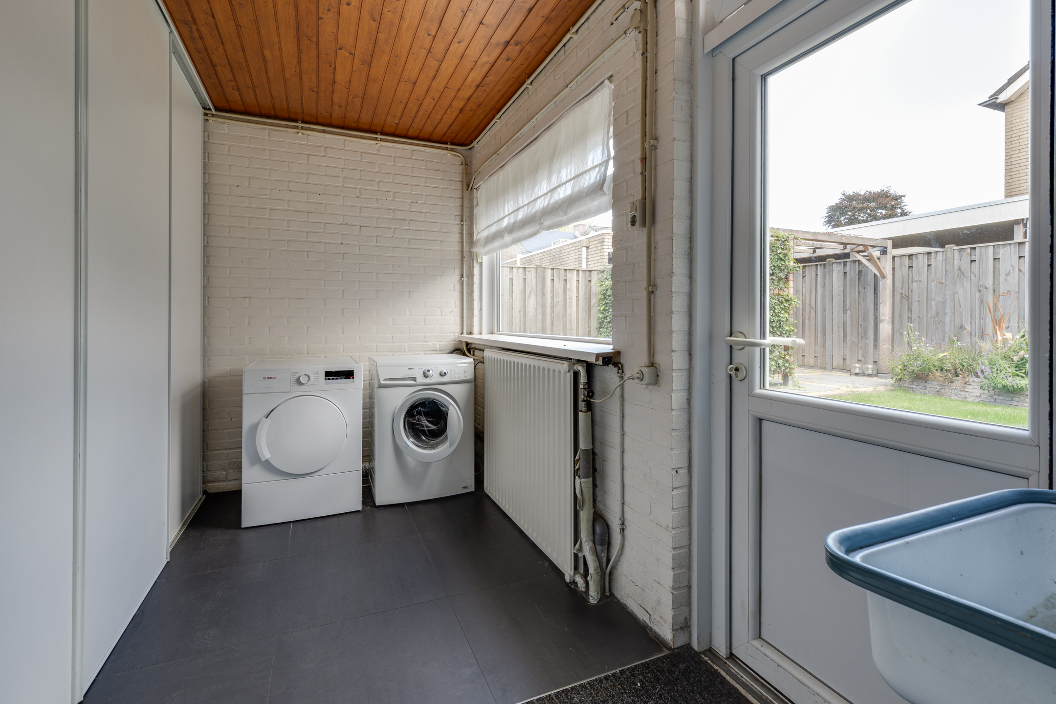 BEGANE GROND: Entree/ hal, meterkast, trapkast, toilet met fonteintje; doorzon woonkamer; open keuken met inbouwapparatuur (o.a. koelkast, vaatwasser, 4- pits gaskookplaat, RVS afzuigkap); bijkeuken voorzien van vaste kastenwand; wasmachine- en drogeraansluiting, wasbak en toegang tot de achtertuin.