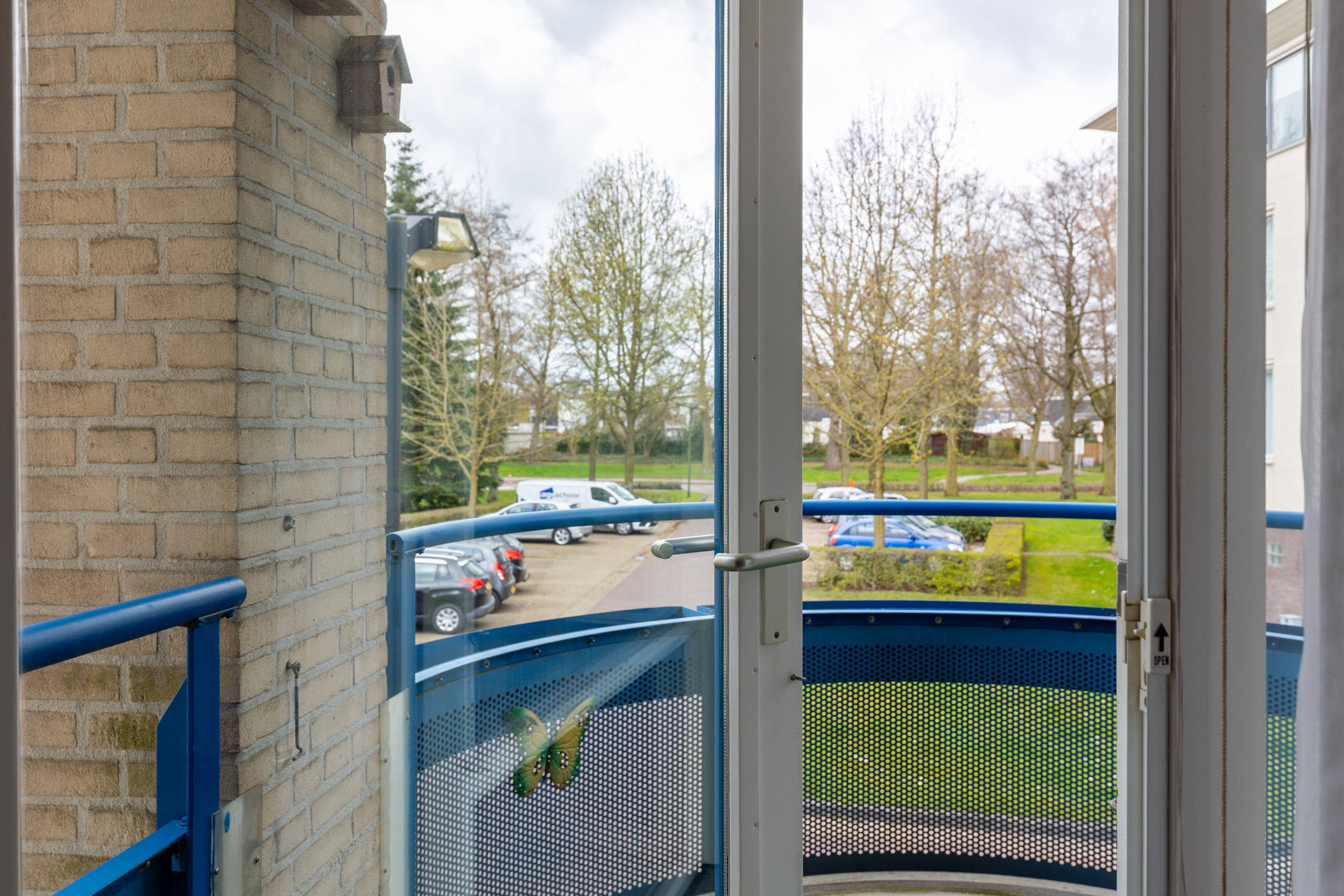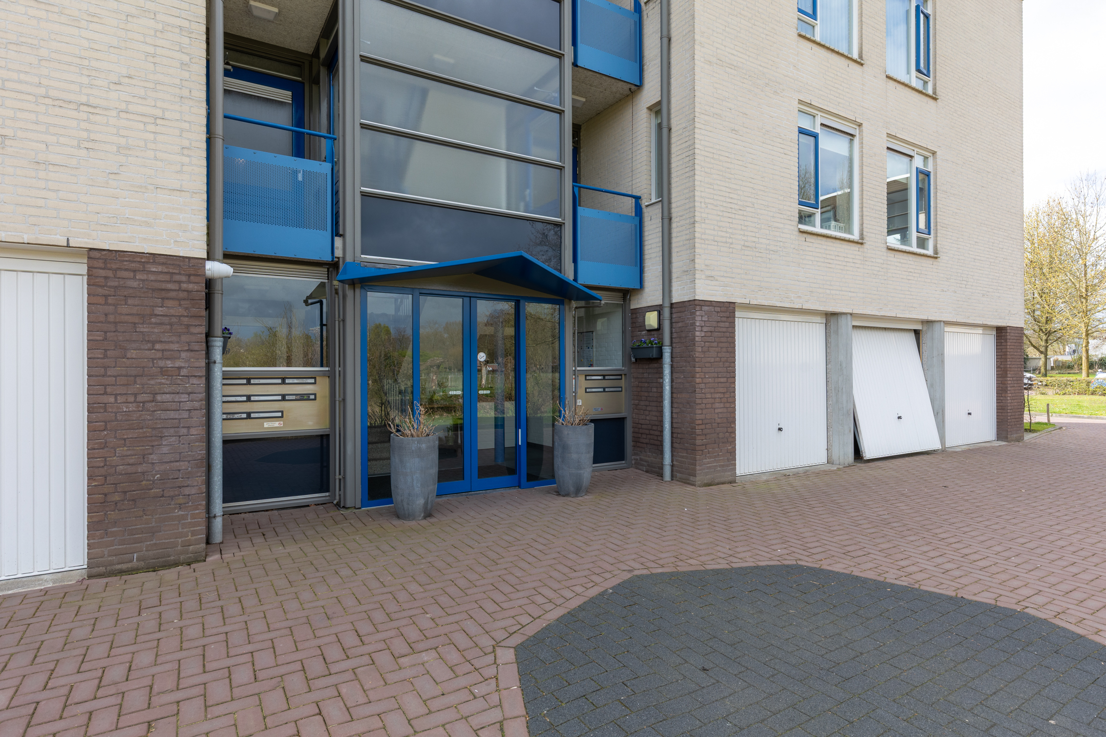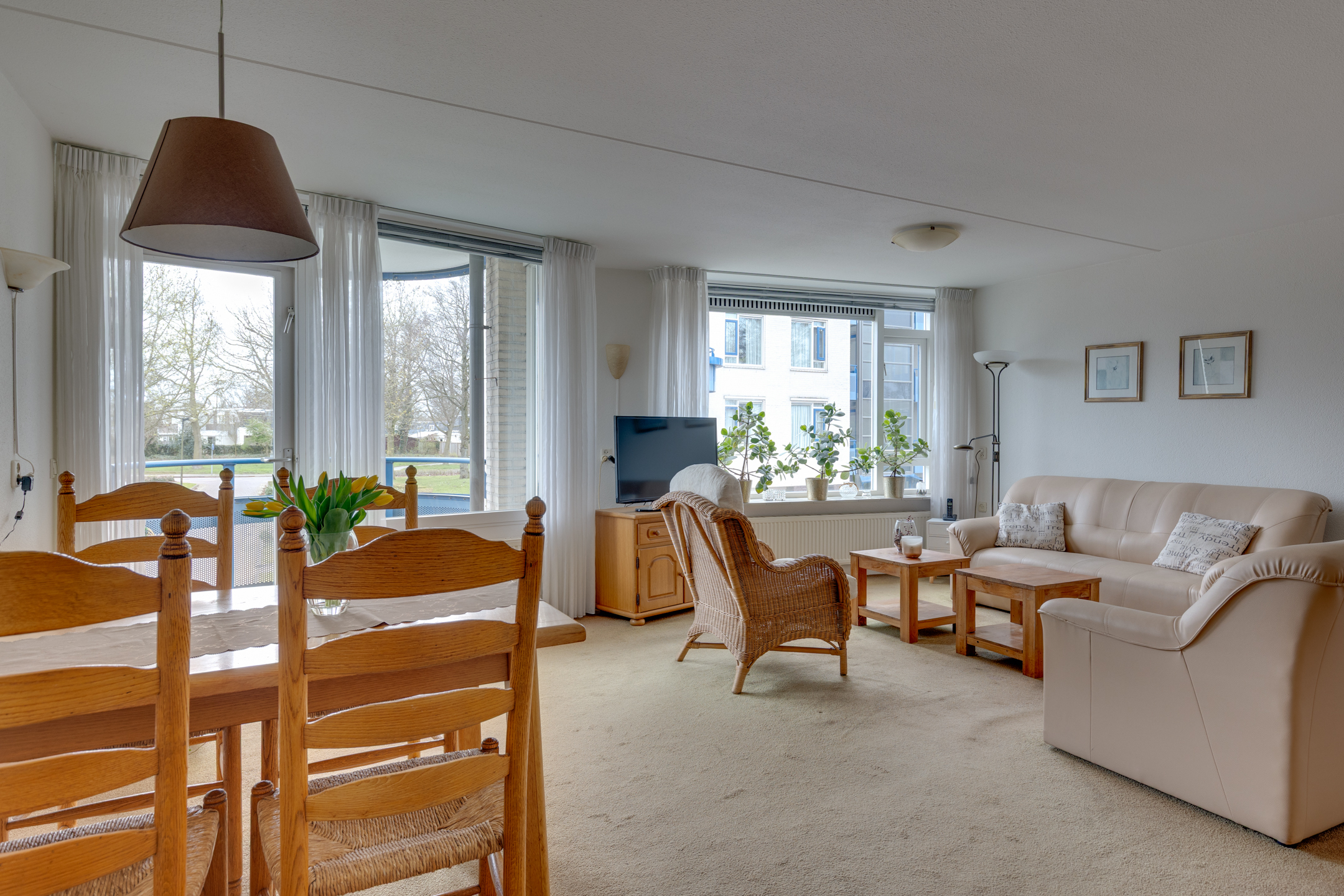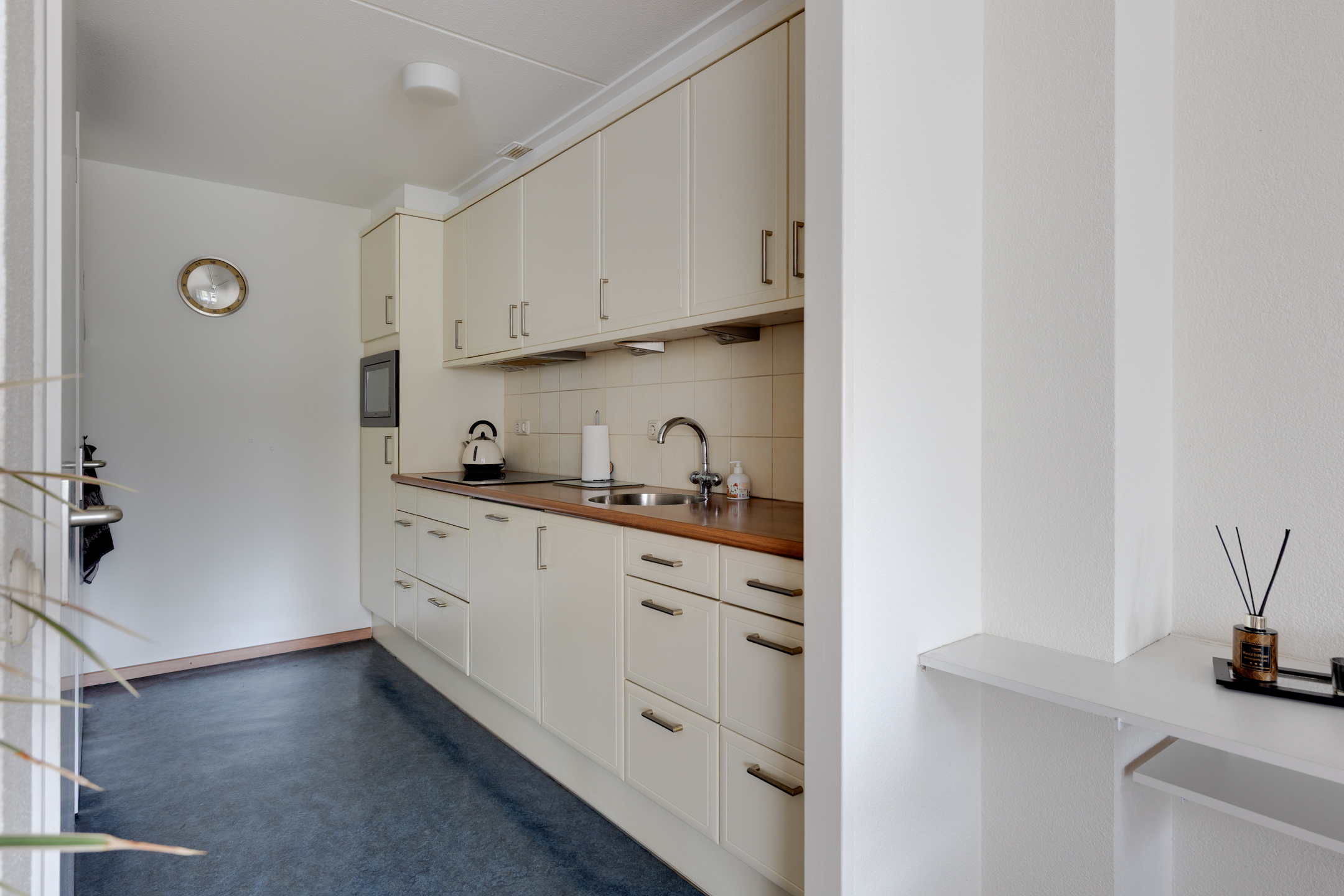 Op de eerste verdieping bereiken we het appartement. We komen via de entree/hal in de woonkamer. Vanuit de hal zijn ook het toilet met fonteintje en de badkamer met douche en wastafel bereikbaar. De woonkamer biedt een vrij uitzicht en geeft toegang tot het balkon. De keuken is voorzien van een provisiekast en diverse inbouwapparaten, waaronder een koelkast, combi-oven, kookplaat en afzuigkap. Vanuit de keuken is de berging bereikbaar, waar zich de aansluiting voor de wasmachine en droger bevindt.