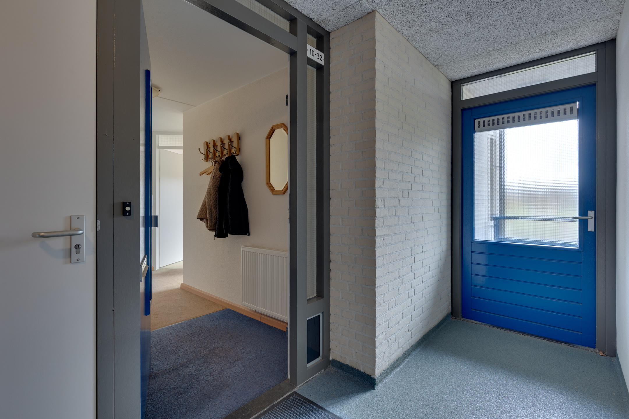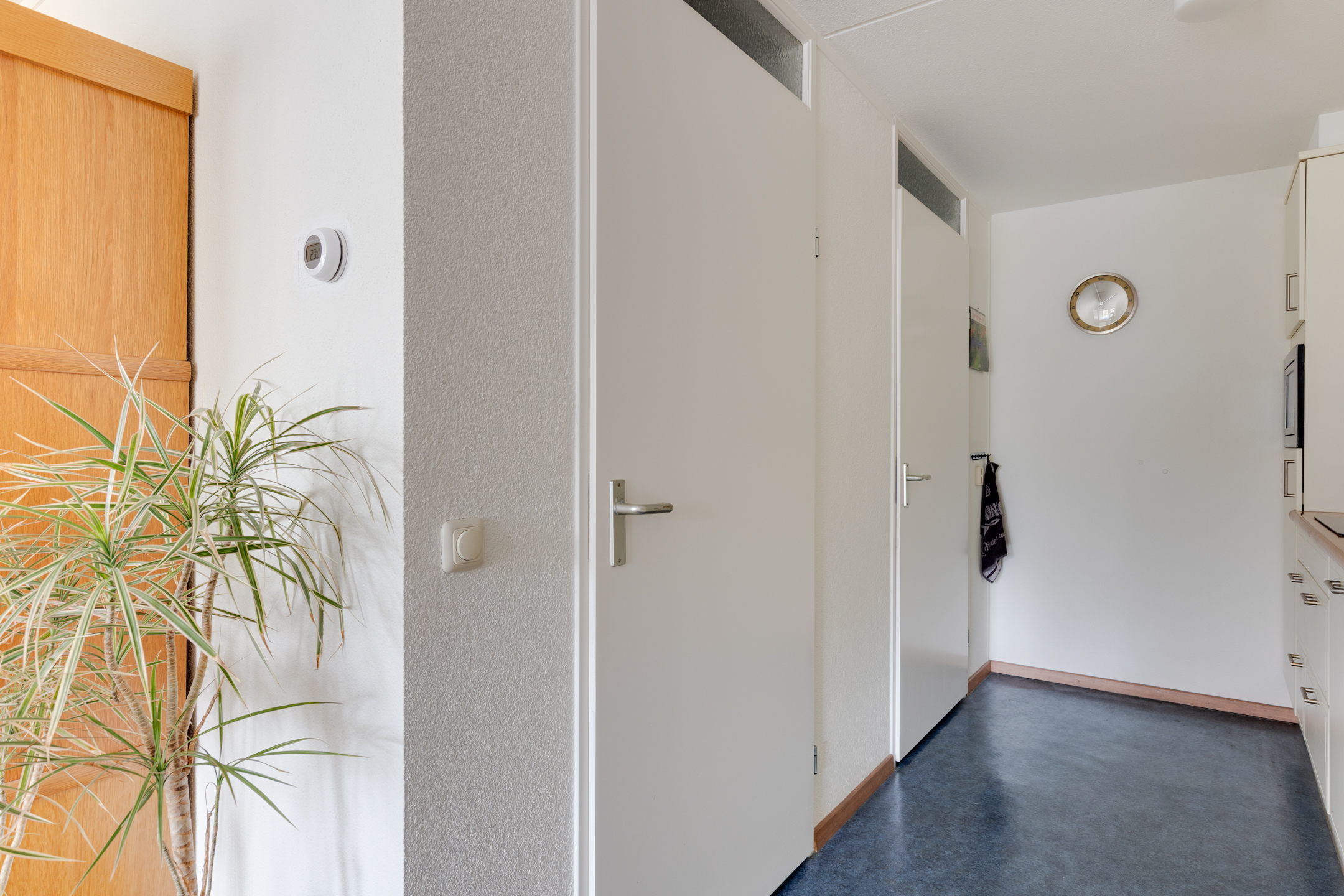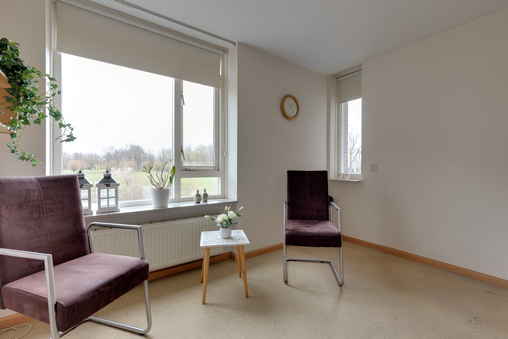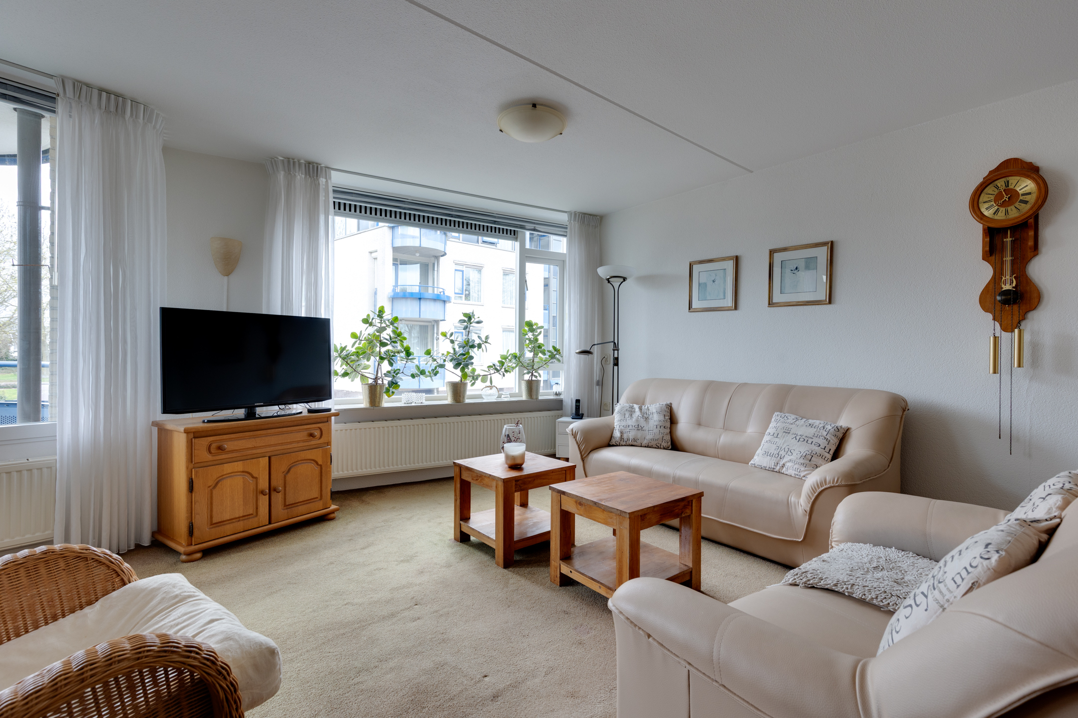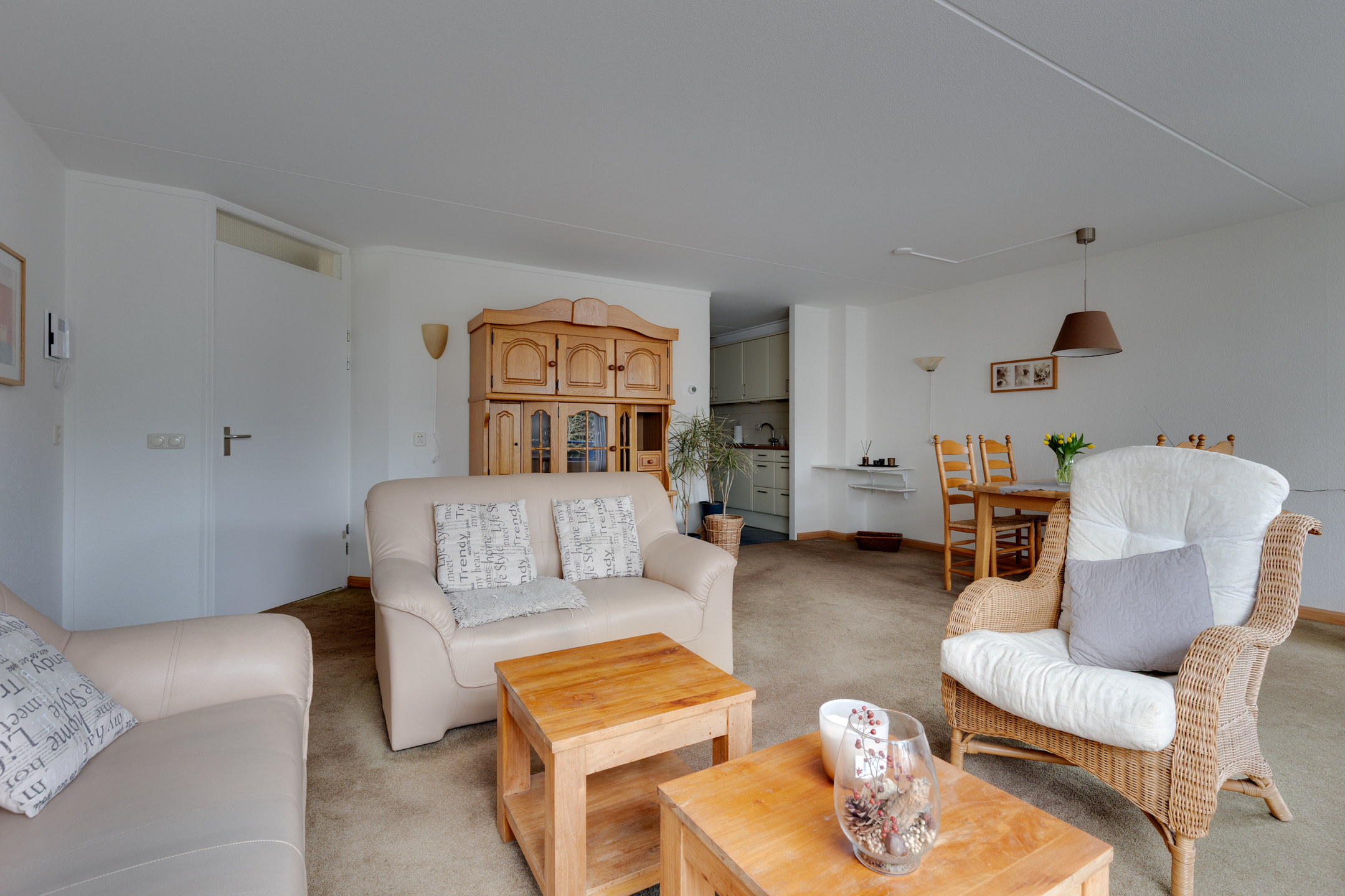 Op de eerste verdieping bereiken we het appartement. We komen via de entree/hal in de woonkamer. Vanuit de hal zijn ook het toilet met fonteintje en de badkamer met douche en wastafel bereikbaar. De woonkamer biedt een vrij uitzicht en geeft toegang tot het balkon. De keuken is voorzien van een provisiekast en diverse inbouwapparaten, waaronder een koelkast, combi-oven, kookplaat en afzuigkap. Vanuit de keuken is de berging bereikbaar, waar zich de aansluiting voor de wasmachine en droger bevindt.