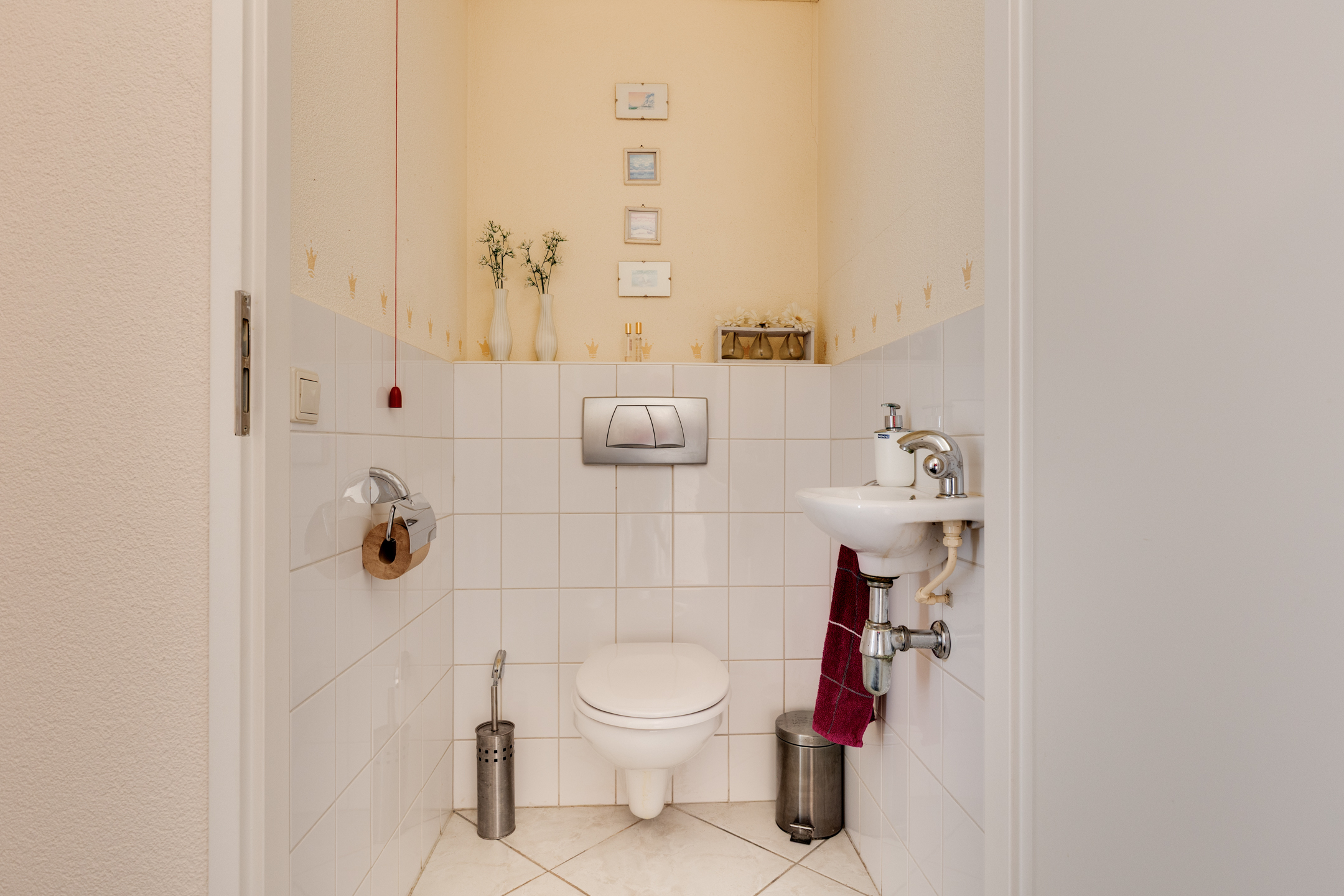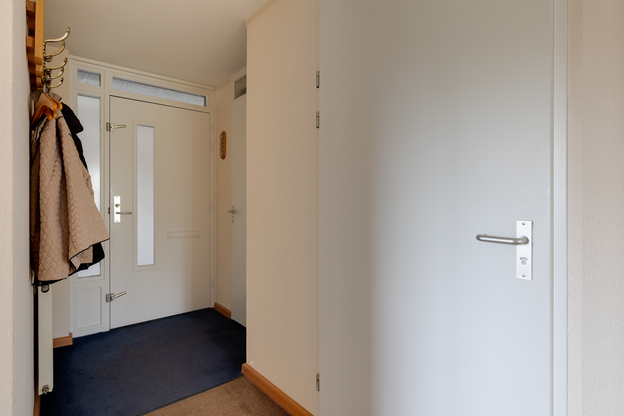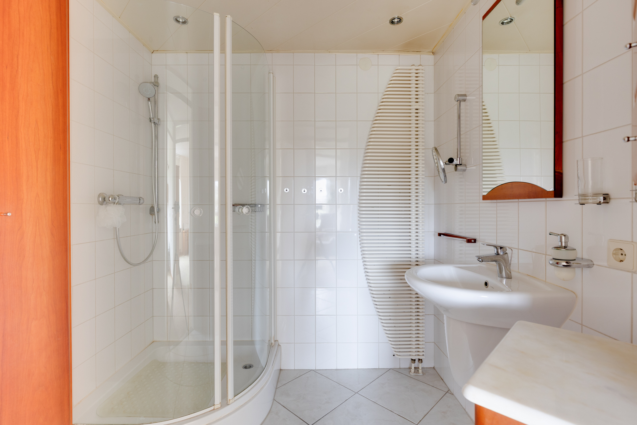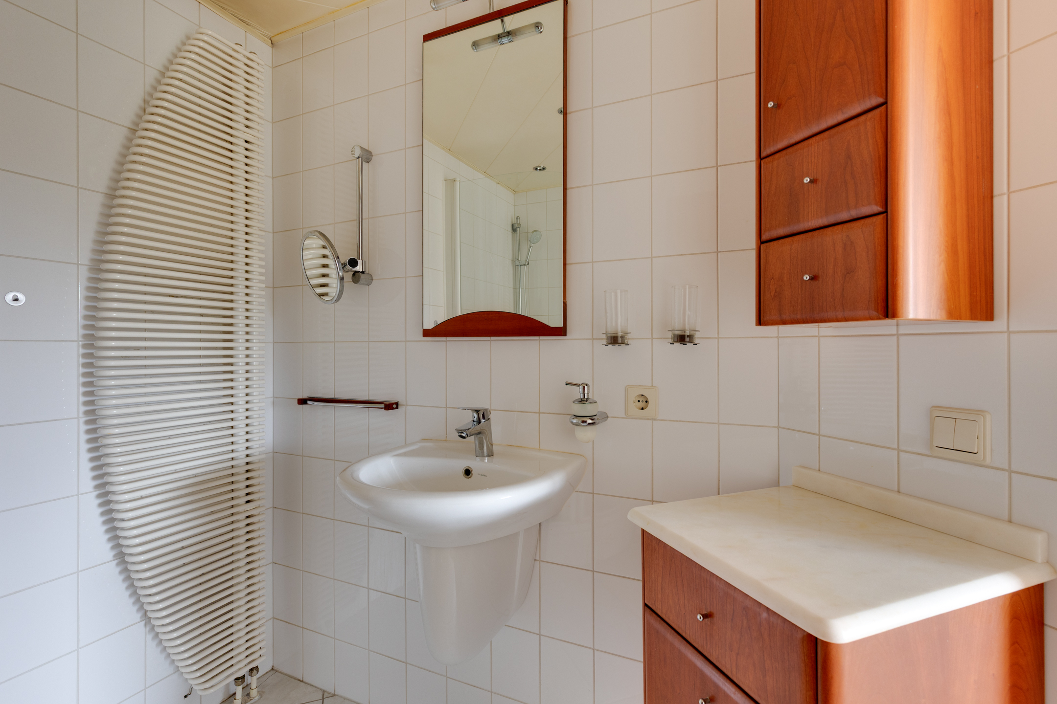 Op de eerste verdieping bereiken we het appartement. We komen via de entree/hal in de woonkamer. Vanuit de hal zijn ook het toilet met fonteintje en de badkamer met douche en wastafel bereikbaar. De woonkamer biedt een vrij uitzicht en geeft toegang tot het balkon. De keuken is voorzien van een provisiekast en diverse inbouwapparaten, waaronder een koelkast, combi-oven, kookplaat en afzuigkap. Vanuit de keuken is de berging bereikbaar, waar zich de aansluiting voor de wasmachine en droger bevindt.