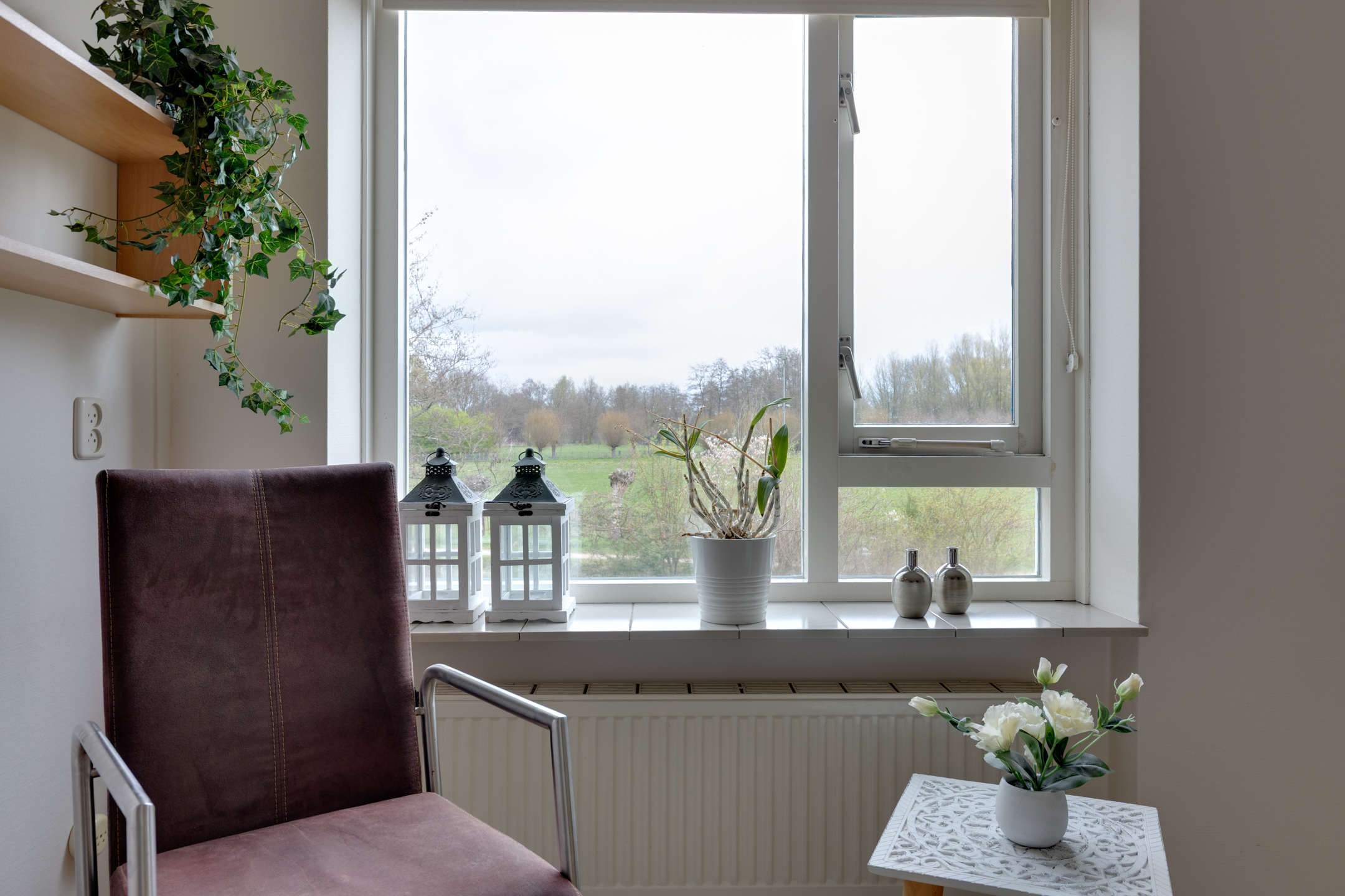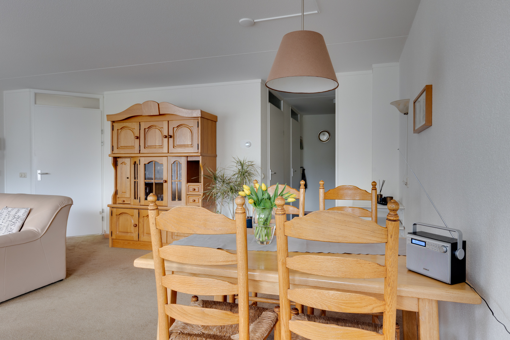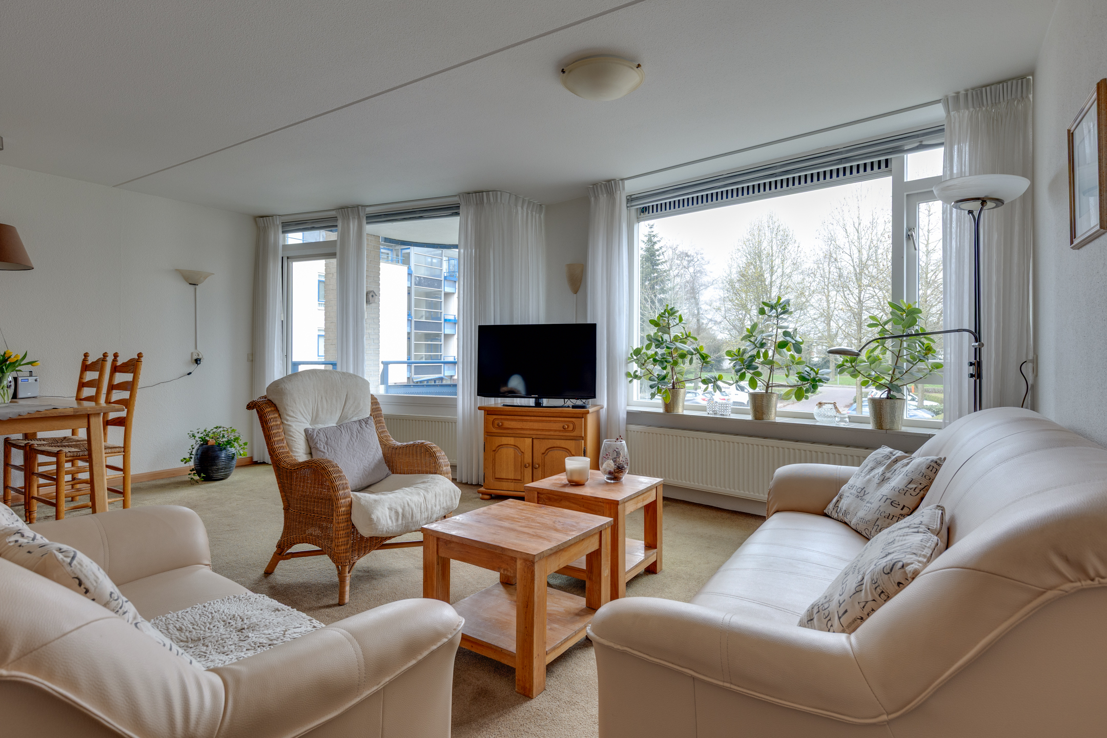 Via de woonkamer bereik je het balkon, waar je vrij kunt wegkijken en heerlijk kunt genieten van de zon.