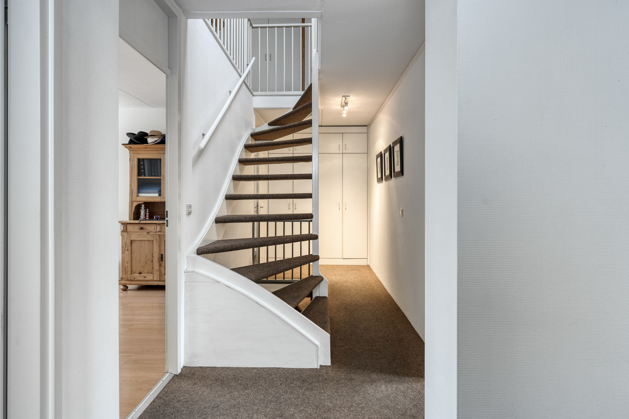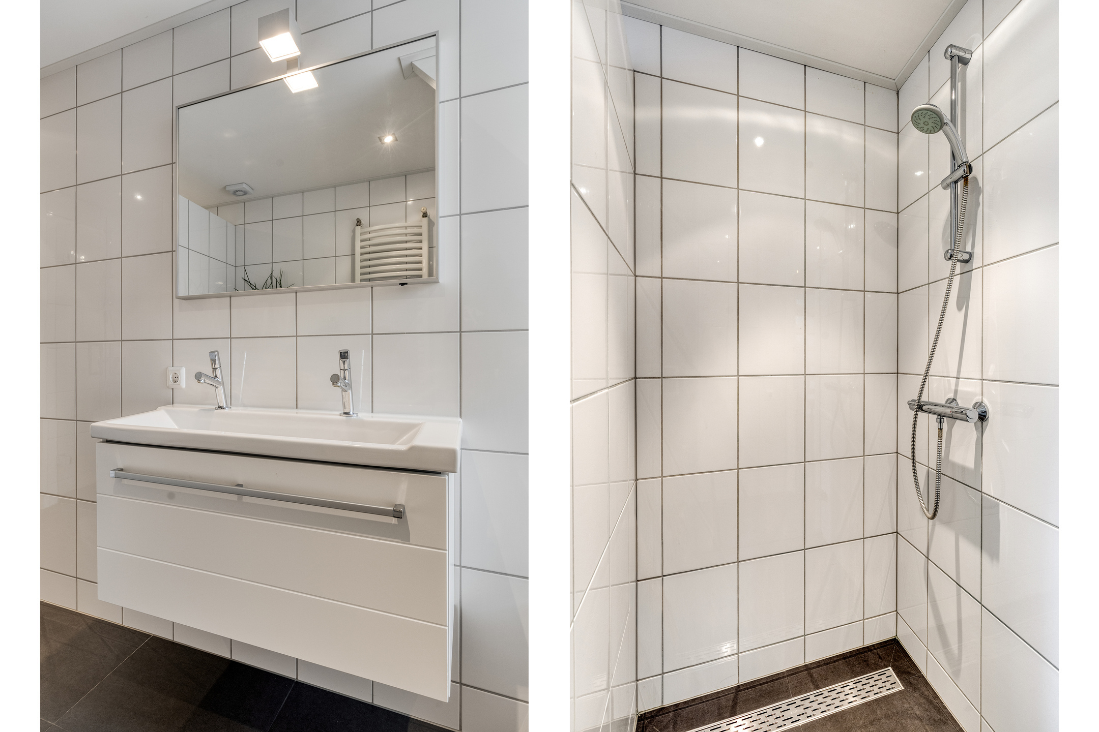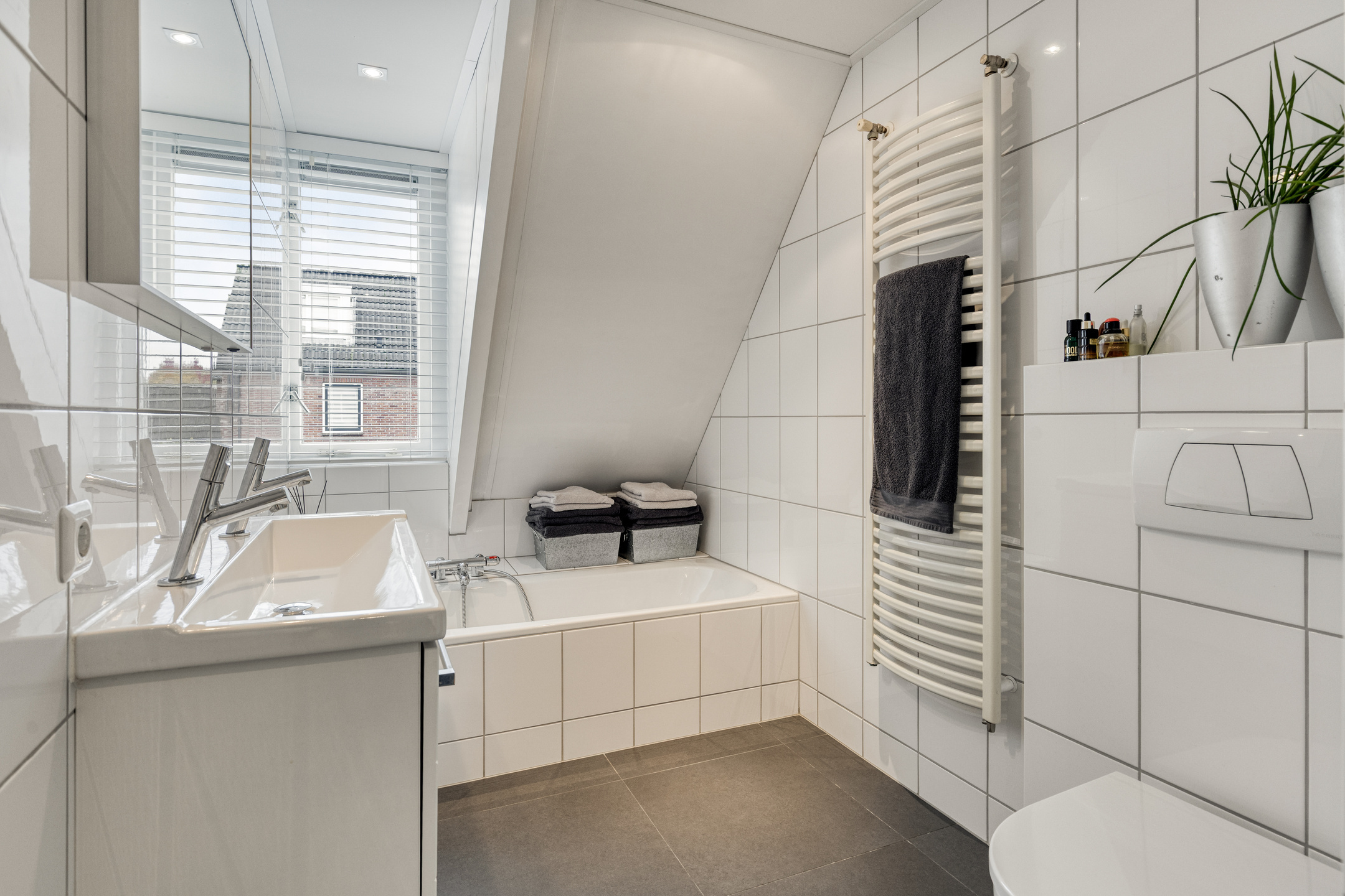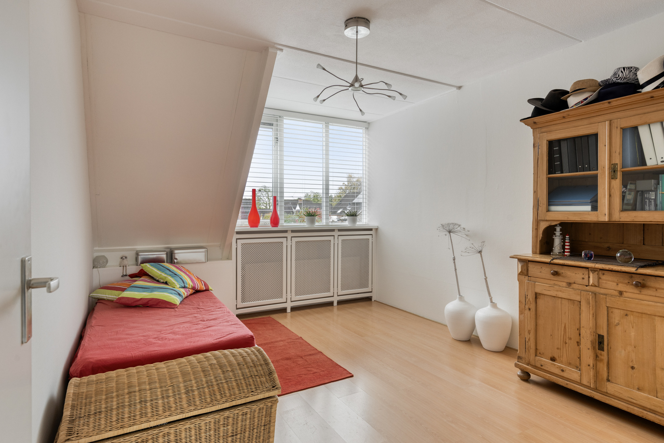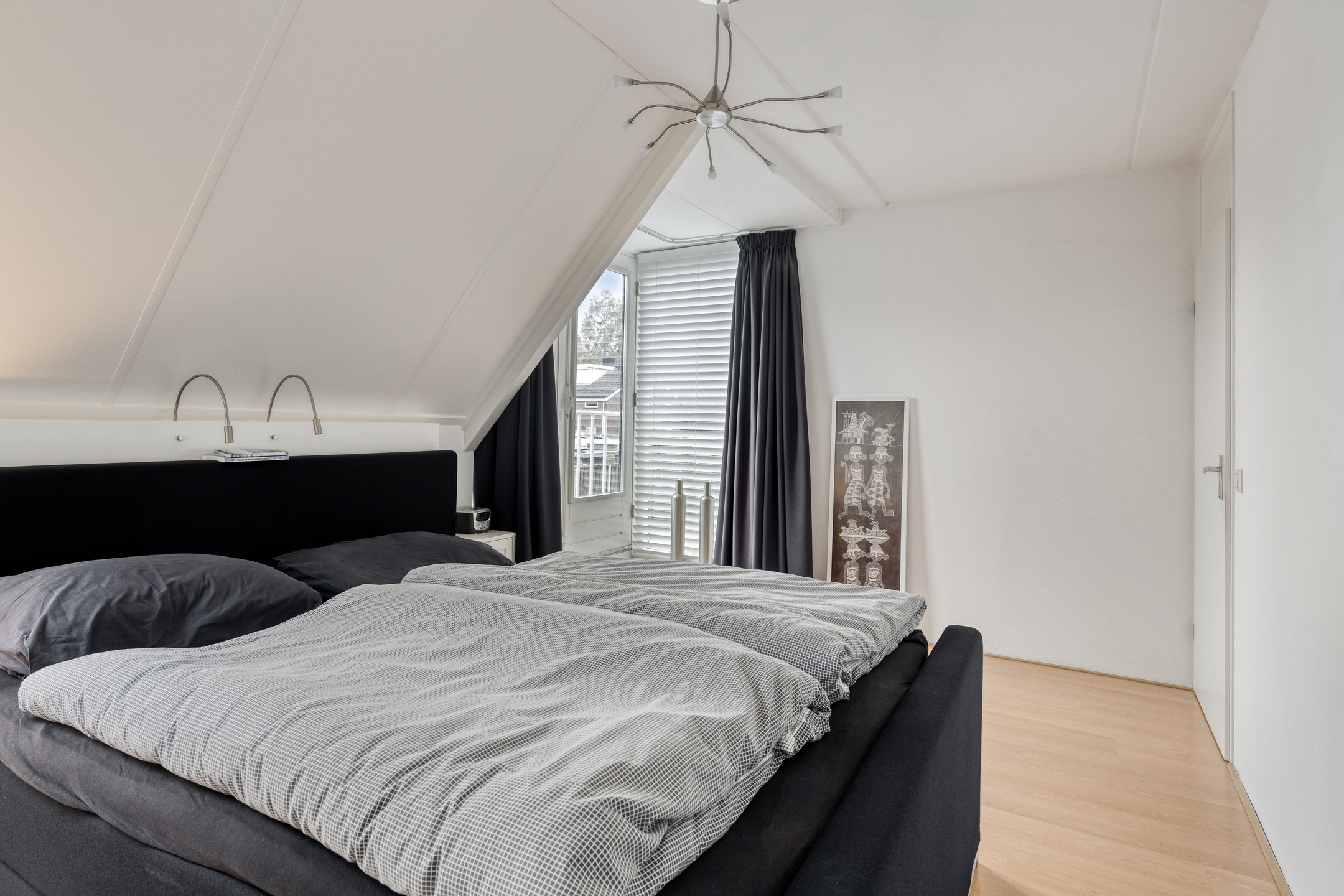 Op de eerste verdieping bevinden zich drie ruime slaapkamers en de badkamer. Dankzij de uitbouw is er extra leefruimte gecreëerd. De badkamer is voorzien van moderne gemakken en voorzien van vloerverwarming. Via een vaste trap bereik je de zolderverdieping- een veelzijdige ruimte die eenvoudig kan worden ingericht als 4e slaapkamer of hobbyruimte.