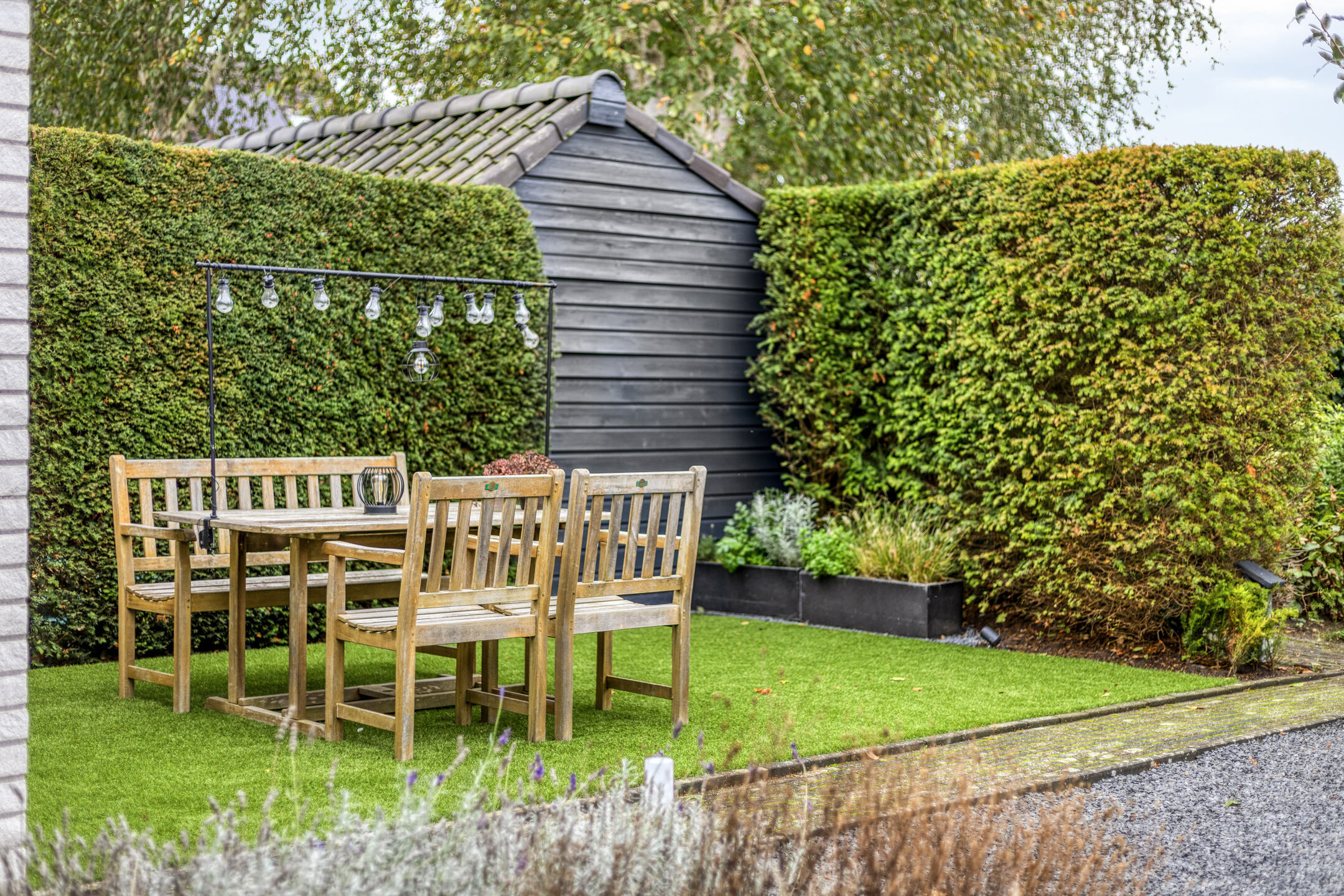 – Onderhoudsvriendelijke achtertuin in 2025 heringericht en voorzien van kunstgras, waterpartij en tuinverlichting.