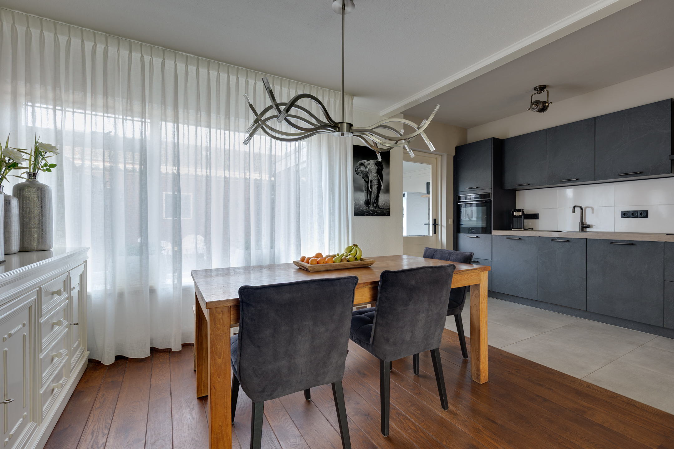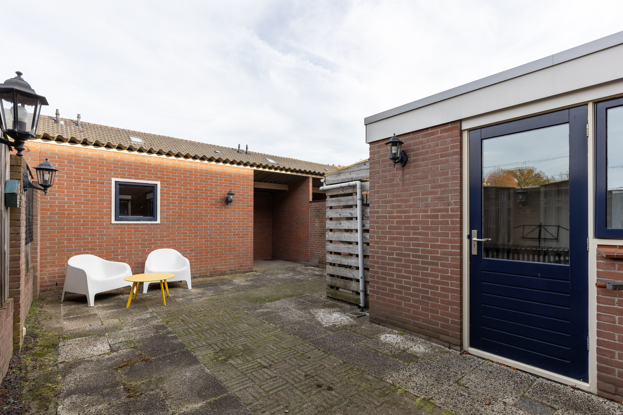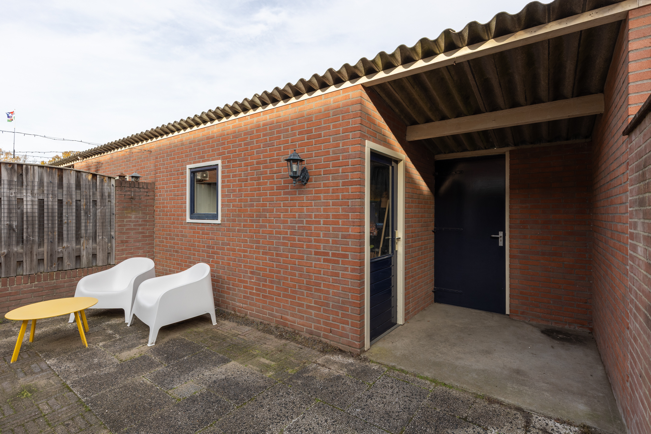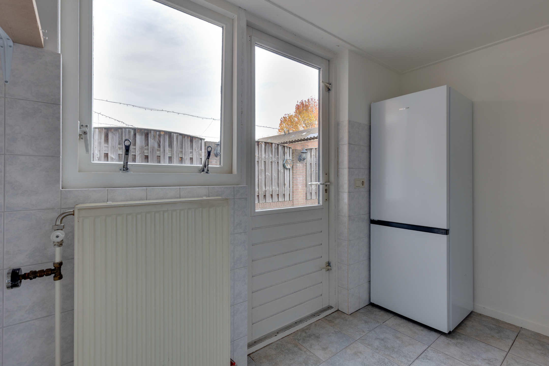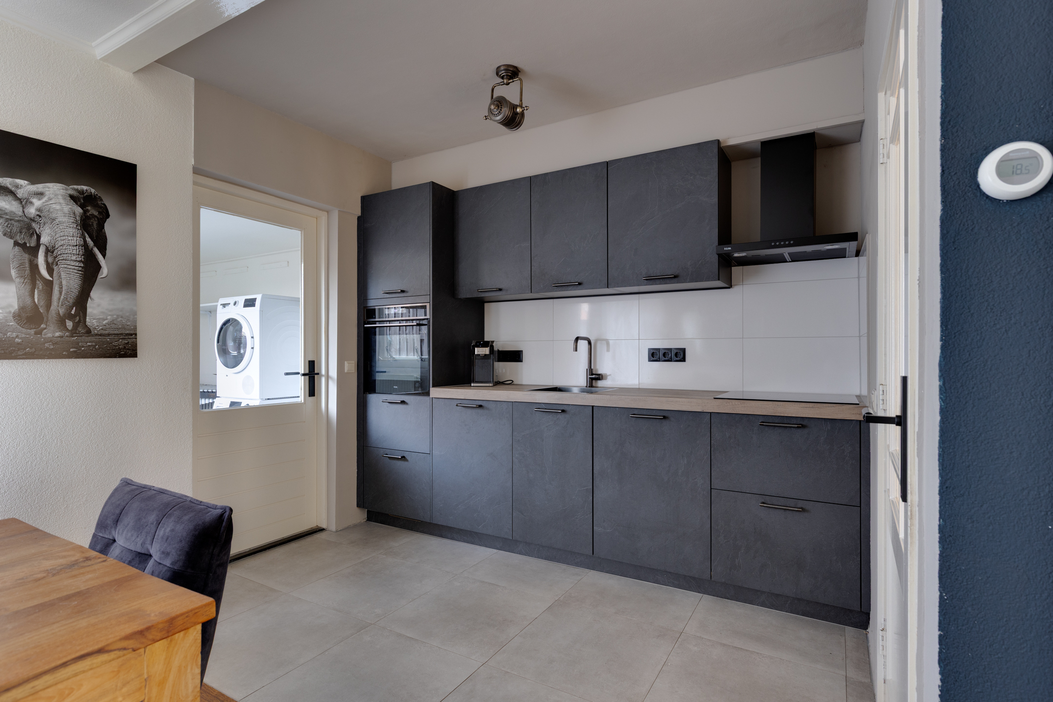 De straatgerichte woonkamer met erker, houtkachel en een houten vloer, is licht door de grote raampartijen aan de voor- en achterzijde. De moderne open keuken is geplaatst in 2024 en geeft toegang naar de bijkeuken, een praktische ruimte met o.a. wasmachine- en drogeraansluiting. In de onderhoudsvriendelijke tuin staat een stenen berging met achteringang.