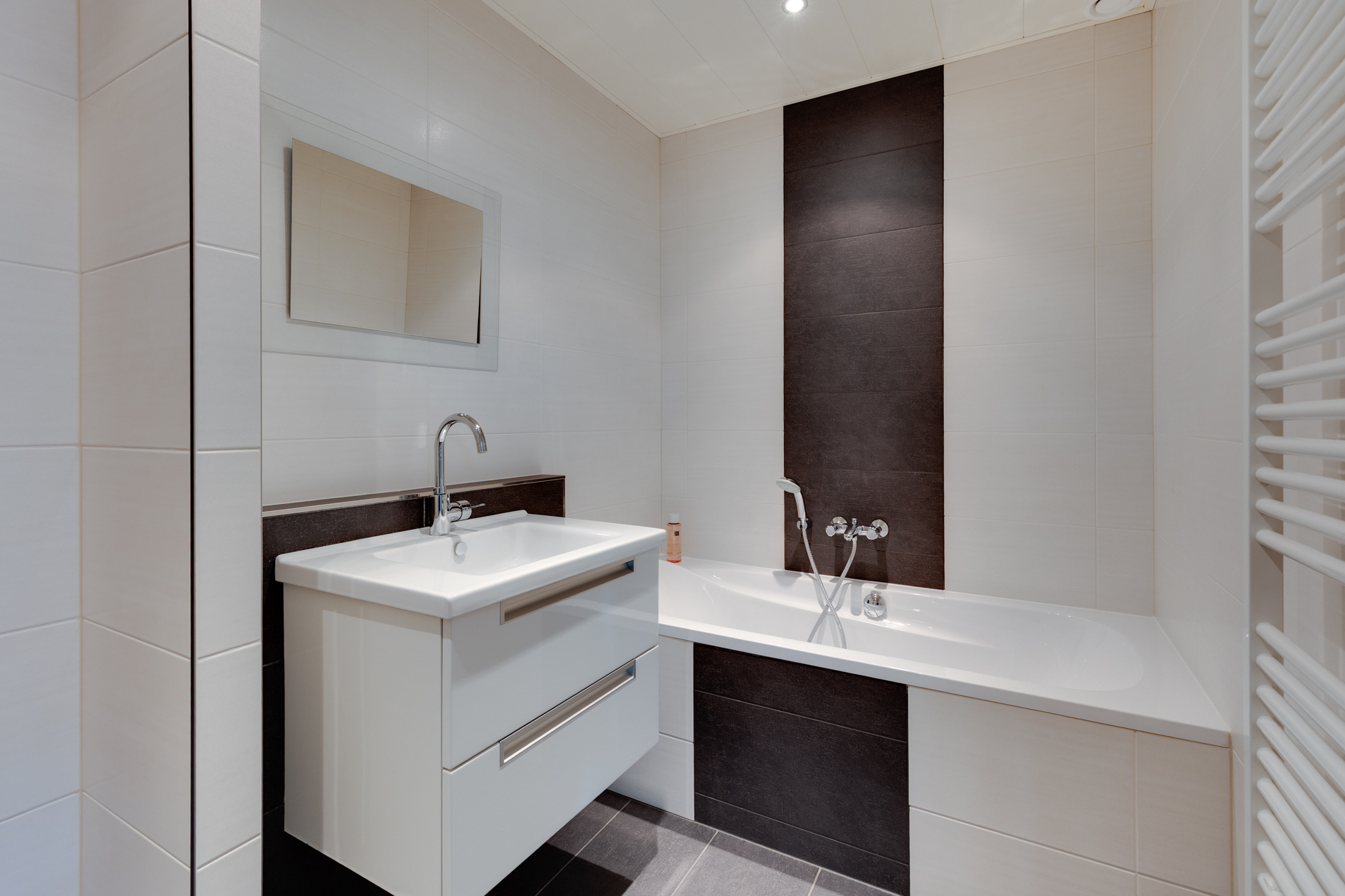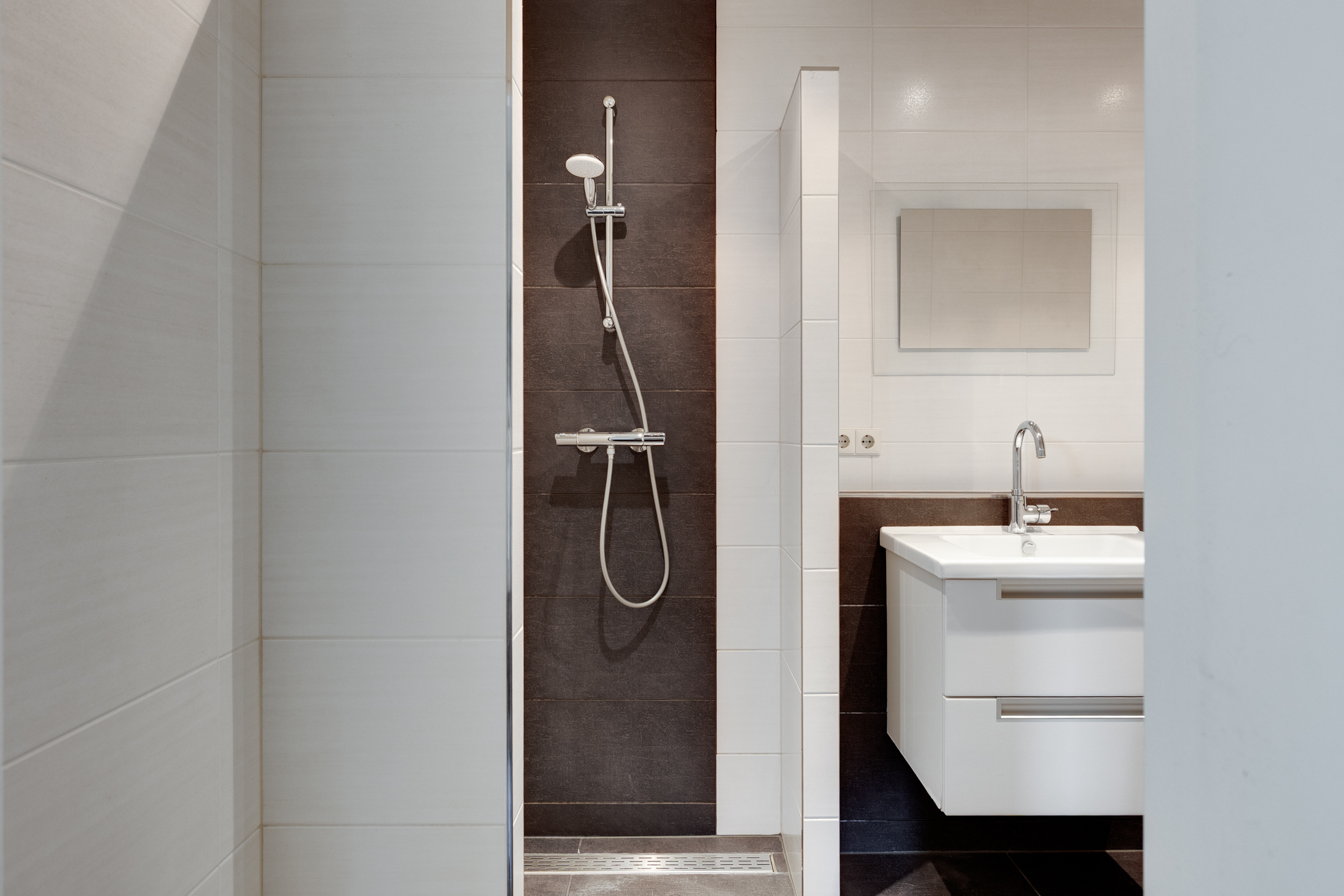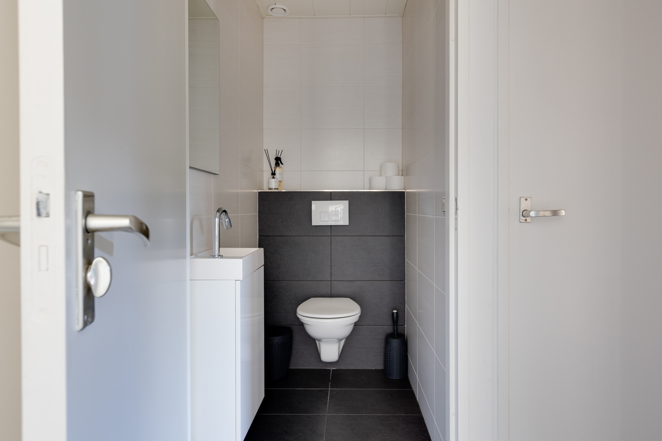 Je komt binnen in de entree / hal van waaruit je naar de inpandige berging, het toilet en de badkamer kunt. Zowel het toilet als de badkamer zijn volledig gemoderniseerd en de badkamer is zelfs iets vergroot. Het toilet is voorzien van een wandcloset en fontein, de badkamer van een douche, wastafel en ligbad.