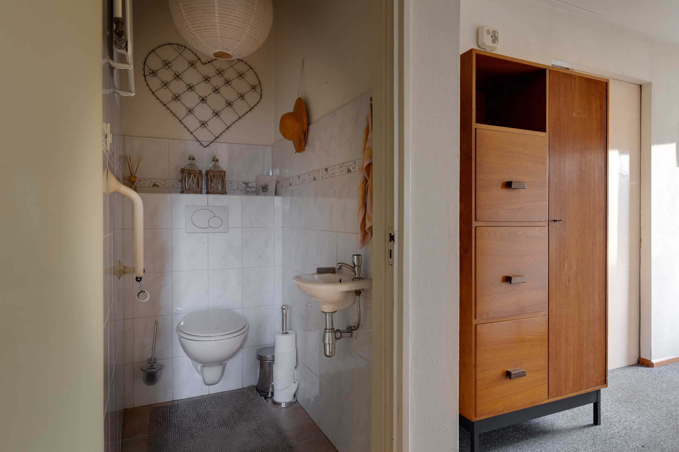 BEGANE GROND: entree/hal met meterkast en trapopgang; badkamer met ligbad, wastafel, toilet en douche; lichte woonkamer met zit- en eetgedeelte; woonkeuken voorzien van een keukenmeubel met inbouwapparaten (o.a. inductie kookplaat, Quooker kraan, oven en koelkast) en kelderkast; hal met wasmachineaansluiting; opkamer met keldertrap; toilet met fonteintje; badkamer v.v. wastafelmeubel en douche; ruime slaapkamer.