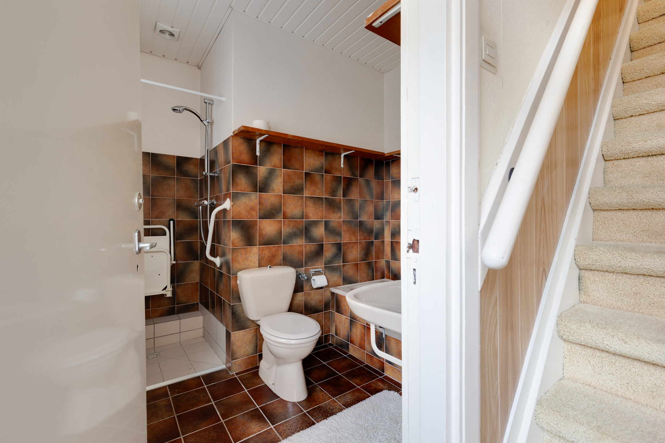 Het woonhuis is aan de achterzijde uitgebouwd op de begane grond. In de aanbouw is een slaapkamer en 2e badkamer gerealiseerd. Verder beschikt de begane grond een ruime woonkamer, woonkeuken, opkamer met handige voorraadkelder, een tweede badkamer en een separaat toilet.
