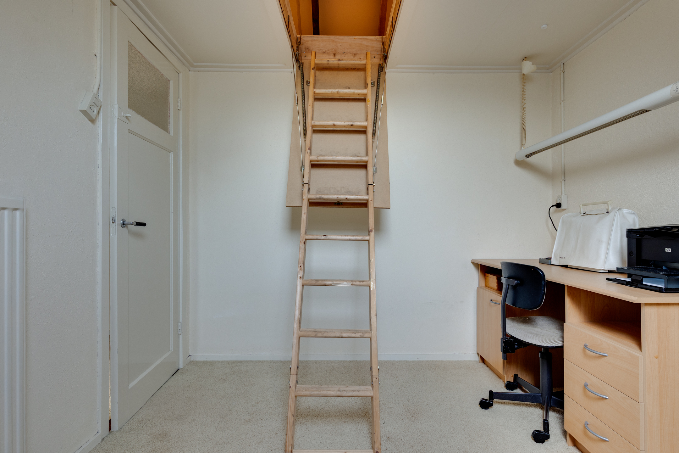 Op de eerste verdieping bevinden zich vier slaapkamers waarvan één toegang geeft naar een dakterras. De tweede verdieping is een opbergzolder die te bereiken is middels een vlizotrap.