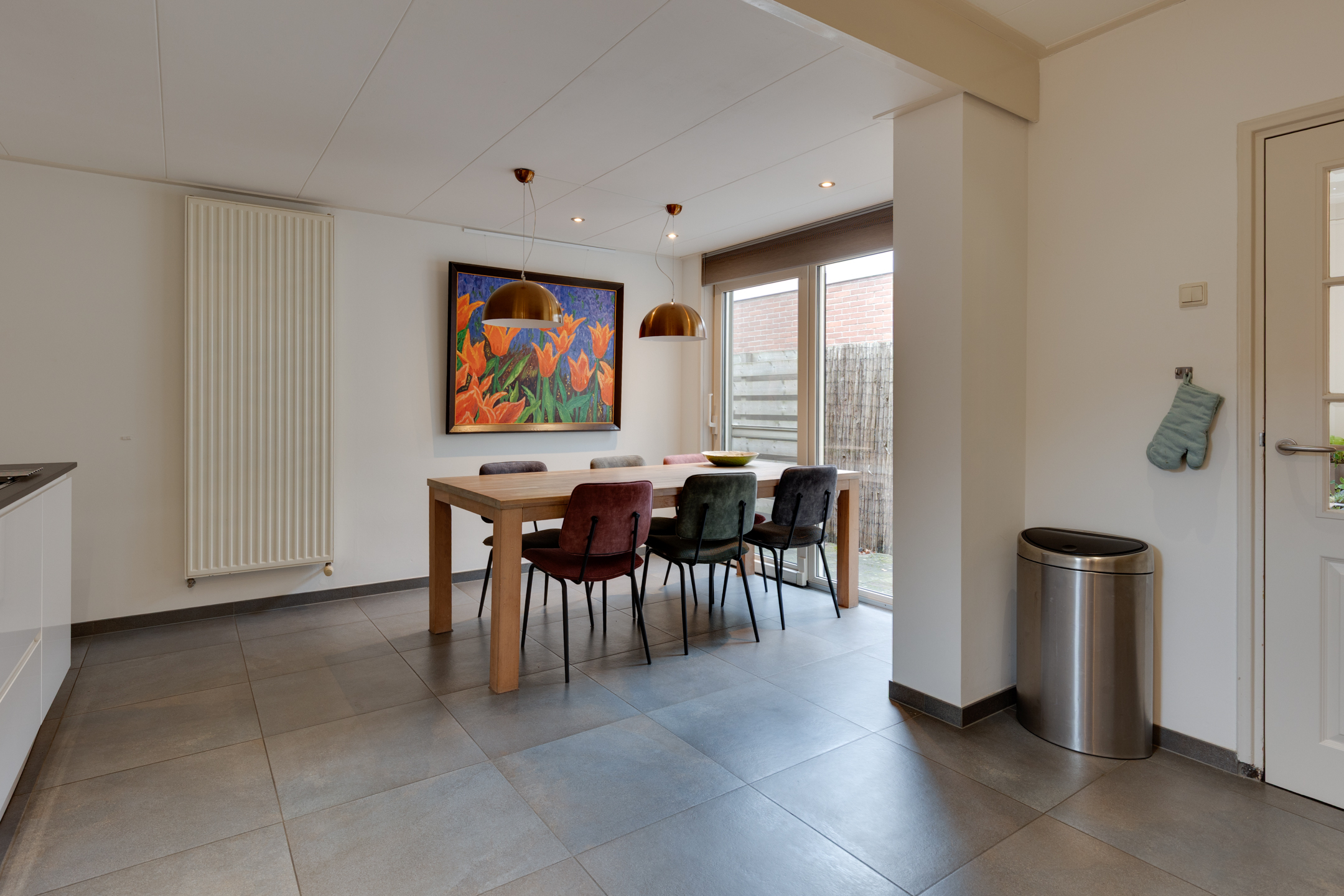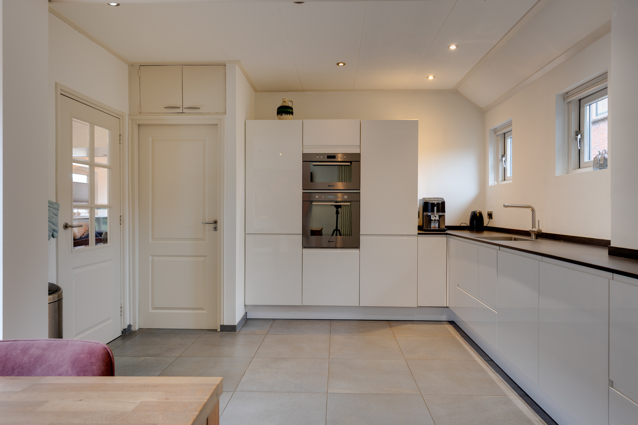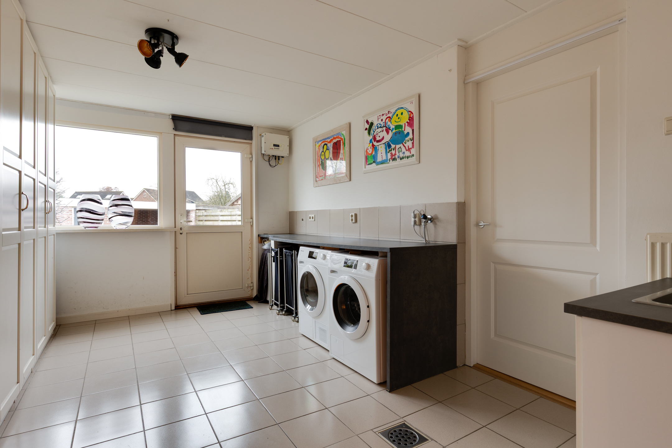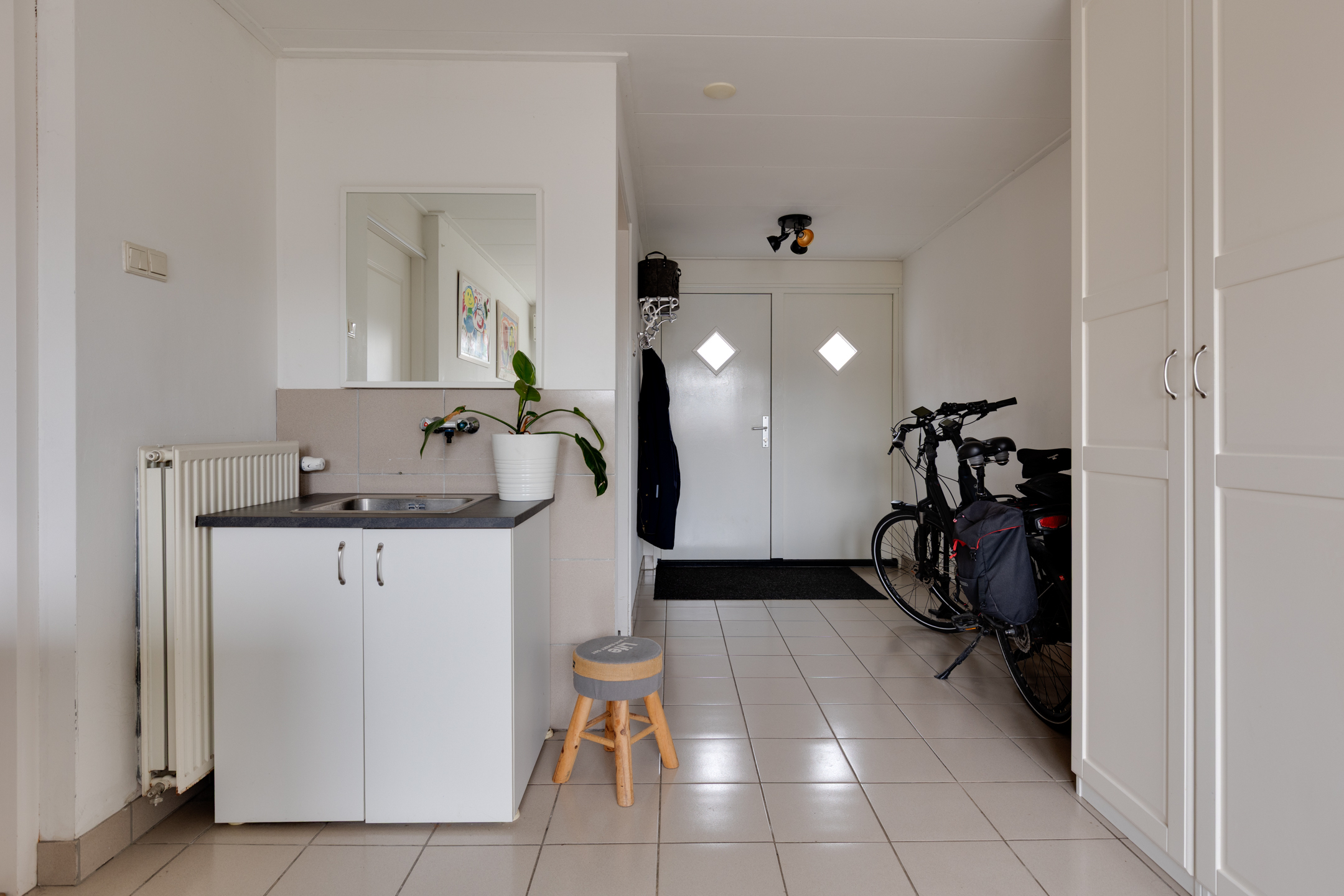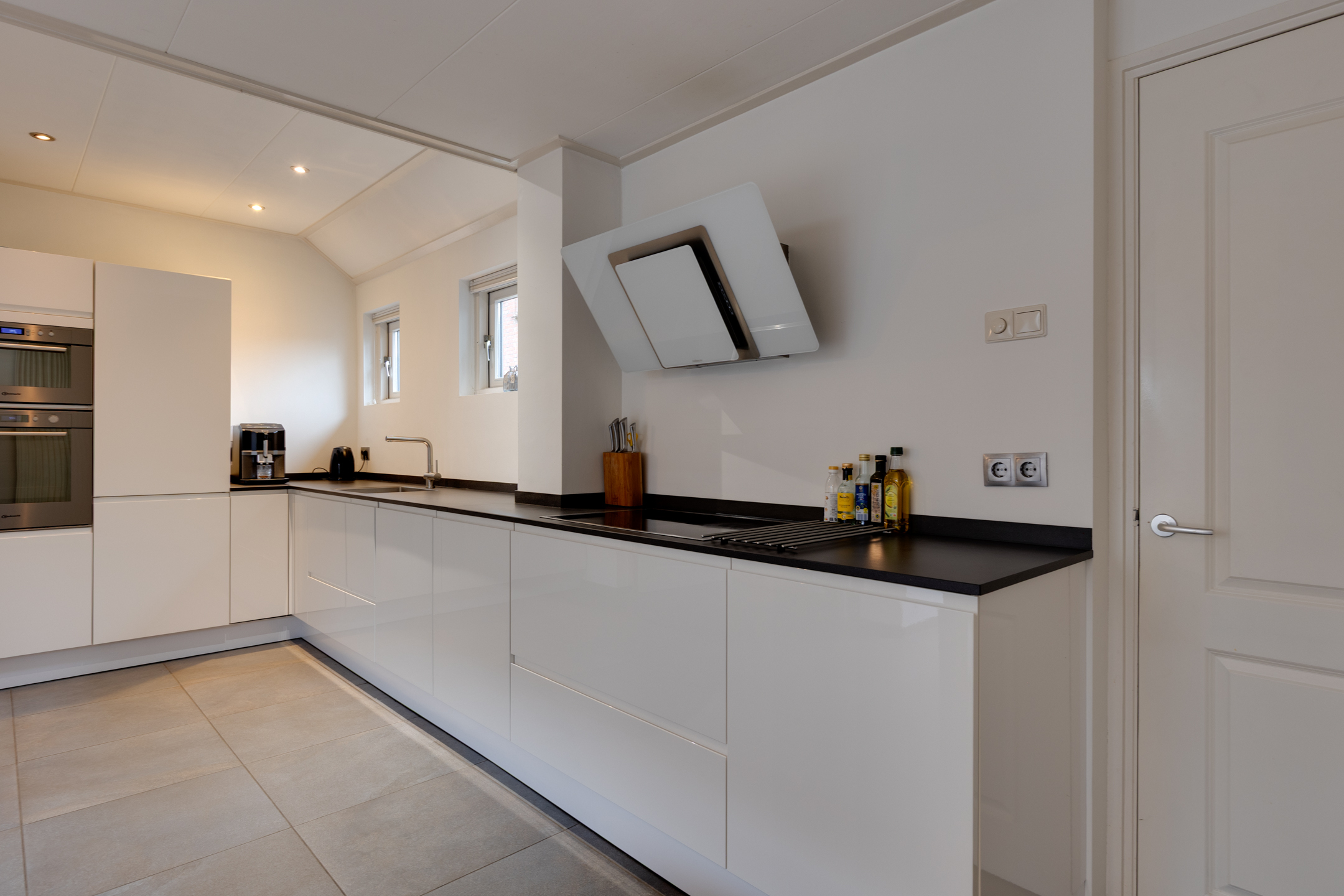Op de begane grond vind je een slaapkamer én een ruime badkamer – ideaal voor wie gelijkvloers wil wonen, nu of in de toekomst. De woonkamer is mede dankzij de gashaard sfeervol en lekker ruim. Aan de voorzijde kijk je vrij weg over openbaar groen. De moderne woonkeuken is hoogwaardig afgewerkt en van alle gemakken voorzien, waaronder een magnetron, oven, koelkast, vriezer, inductiekookplaat en afzuigkap. De keuken biedt toegang tot de kelder, perfect als extra provisieruimte. Daarnaast stap je via de schuifpui zo de tuin in. De grote bijkeuken beschikt over praktische inbouwkasten, een ruime werkplek bij de wasmachine en droger én een extra keukenblok met wastafel.