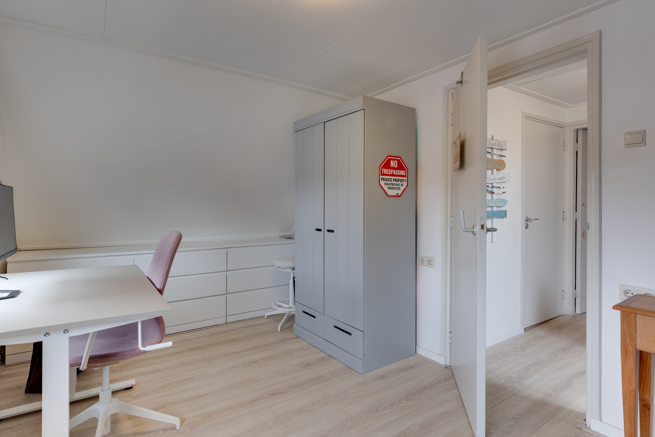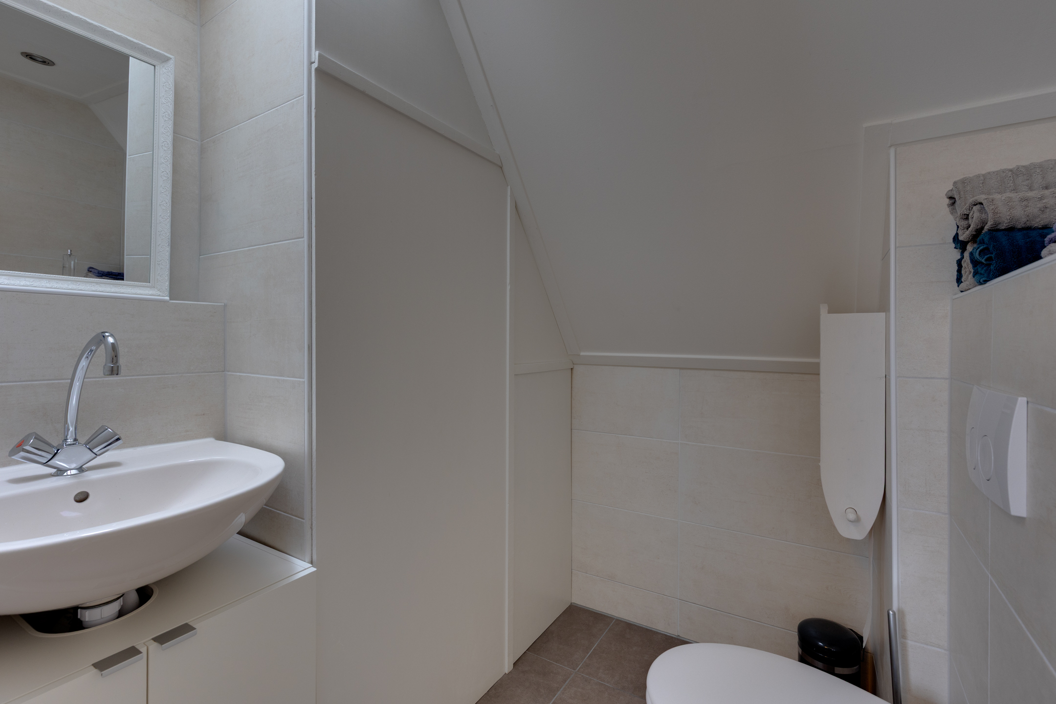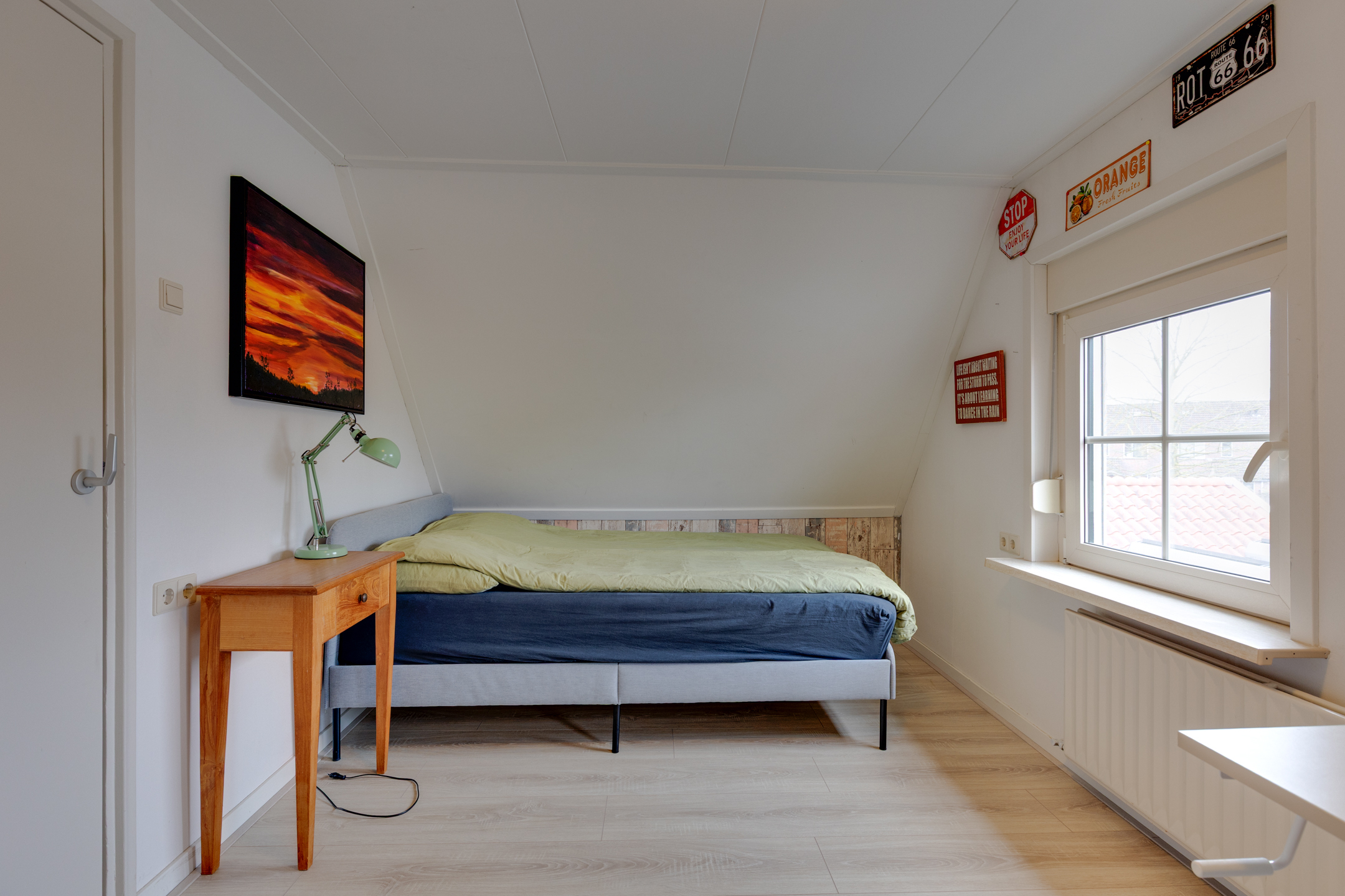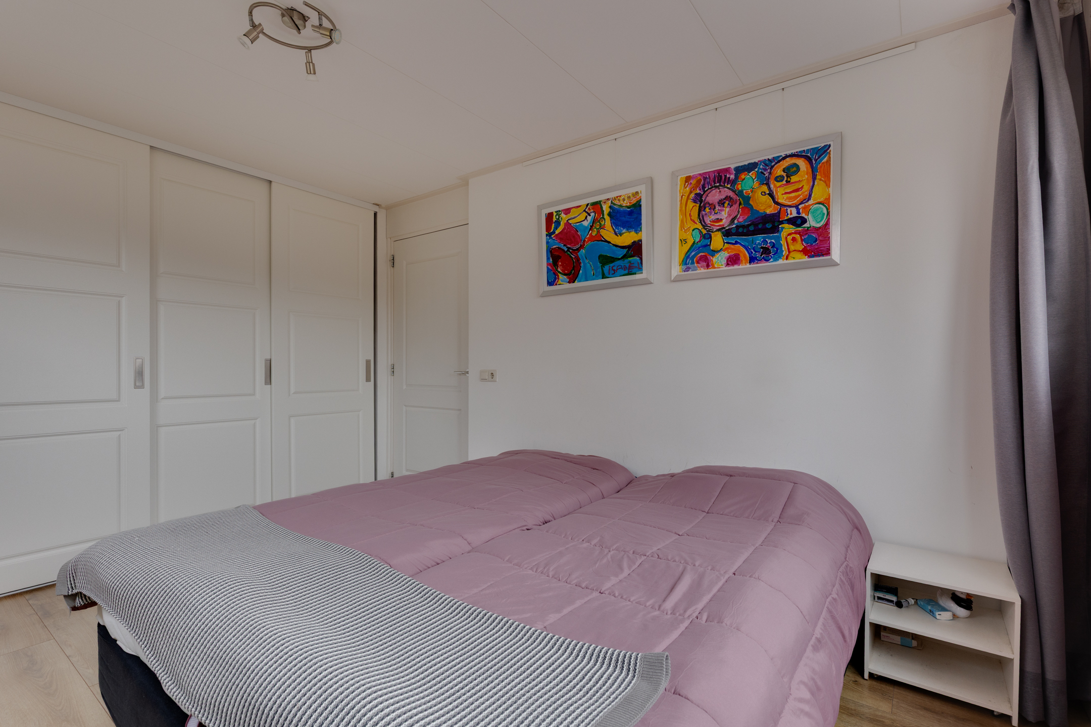Drie volwaardige slaapkamers op de eerste verdieping, waarvan één met inbouwkasten. Via de vlizotrap bereik je de vliering met nog meer praktische opbergruimte.