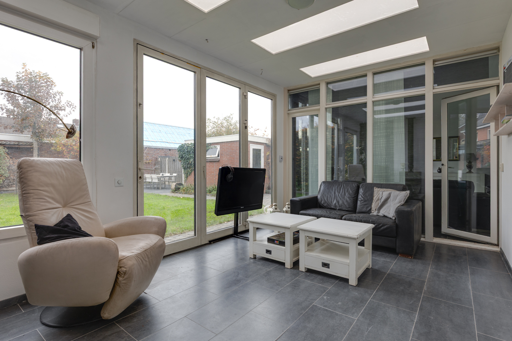 tuinkamer v.v. houtkachel en harmonica vouwdeuren; garage met roldeur.