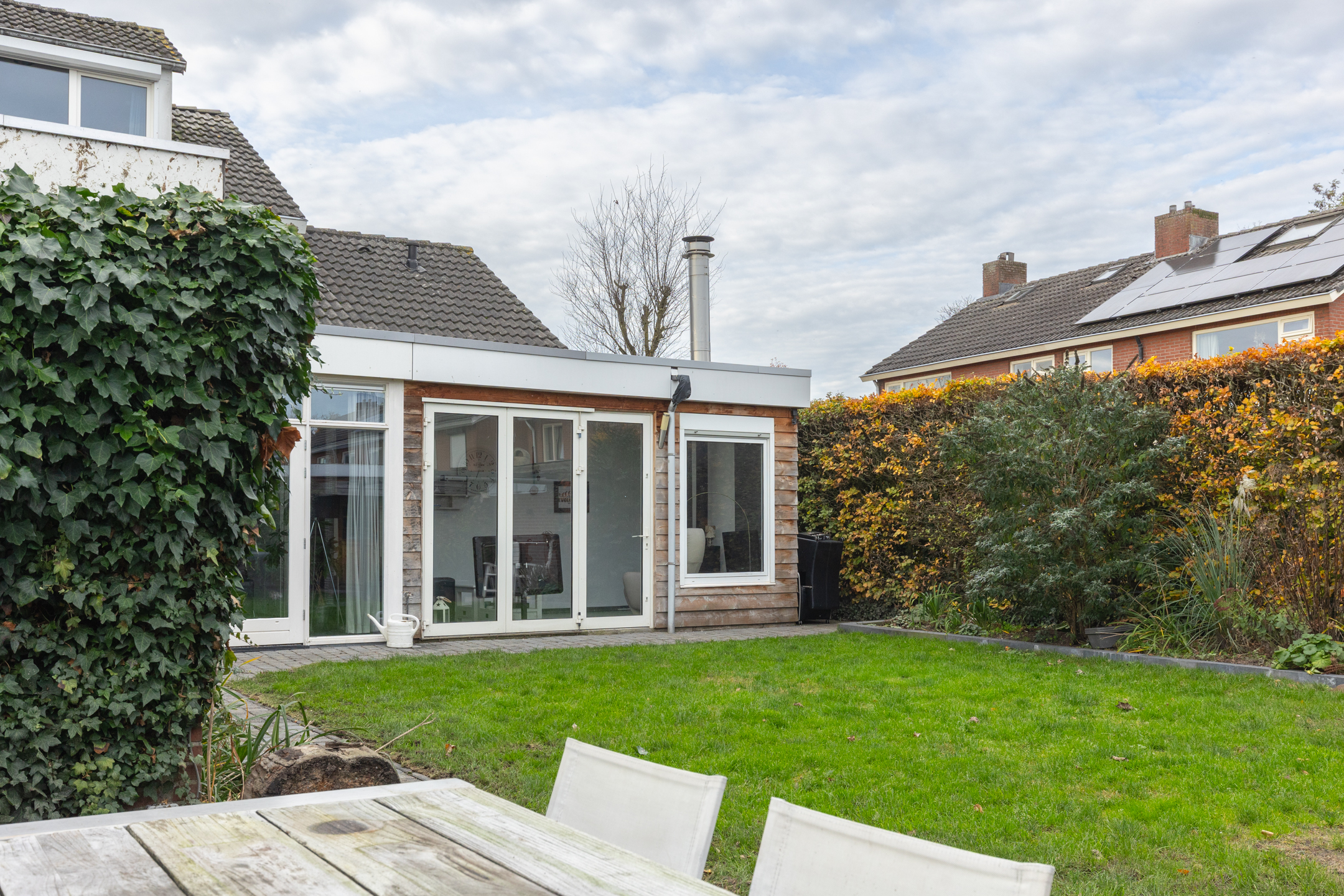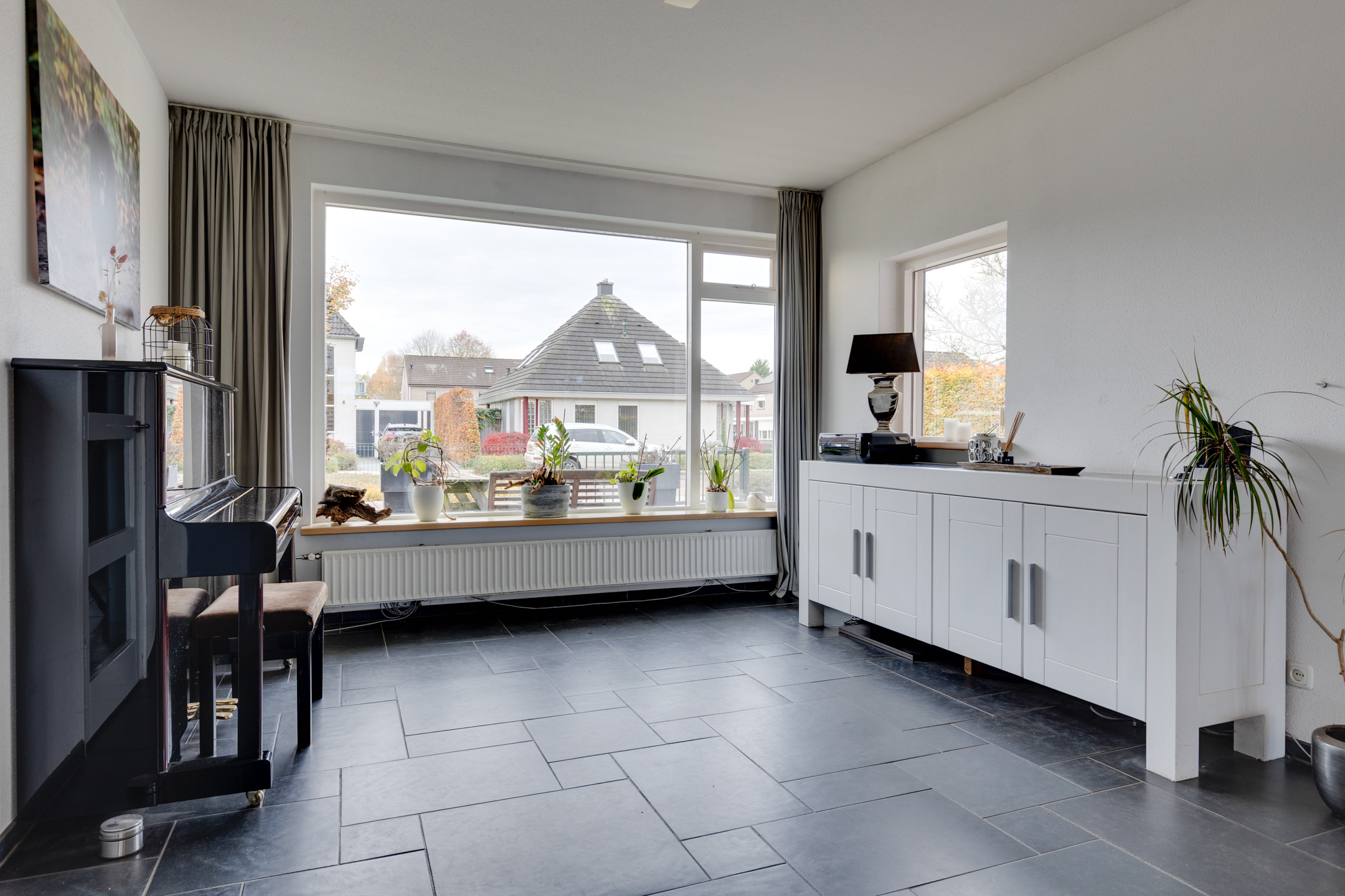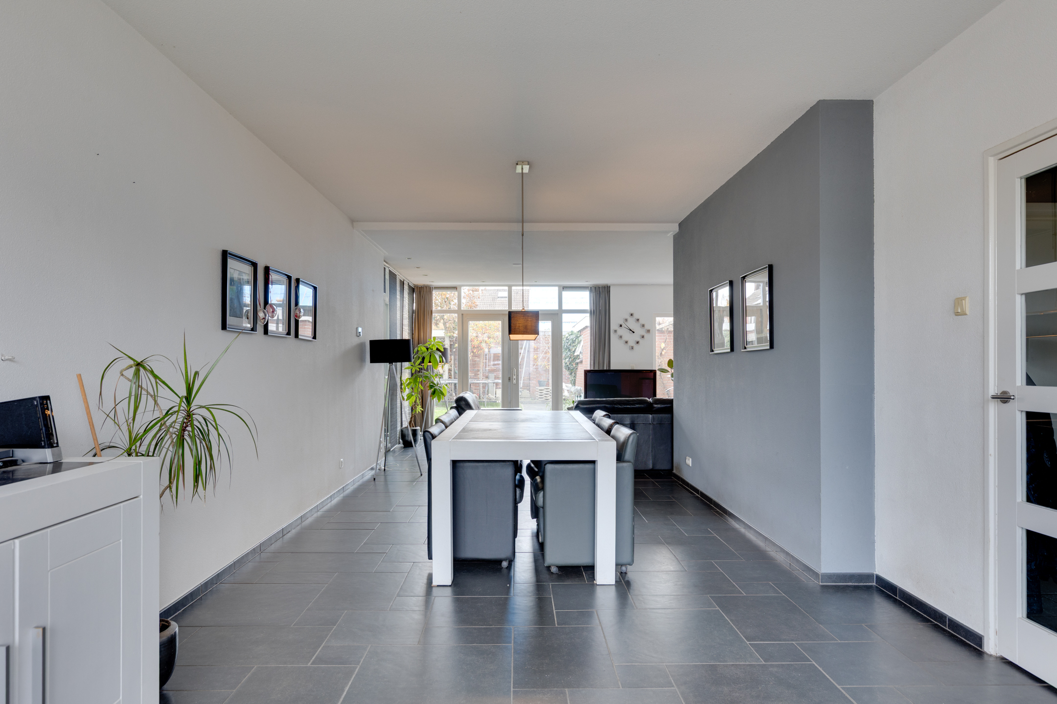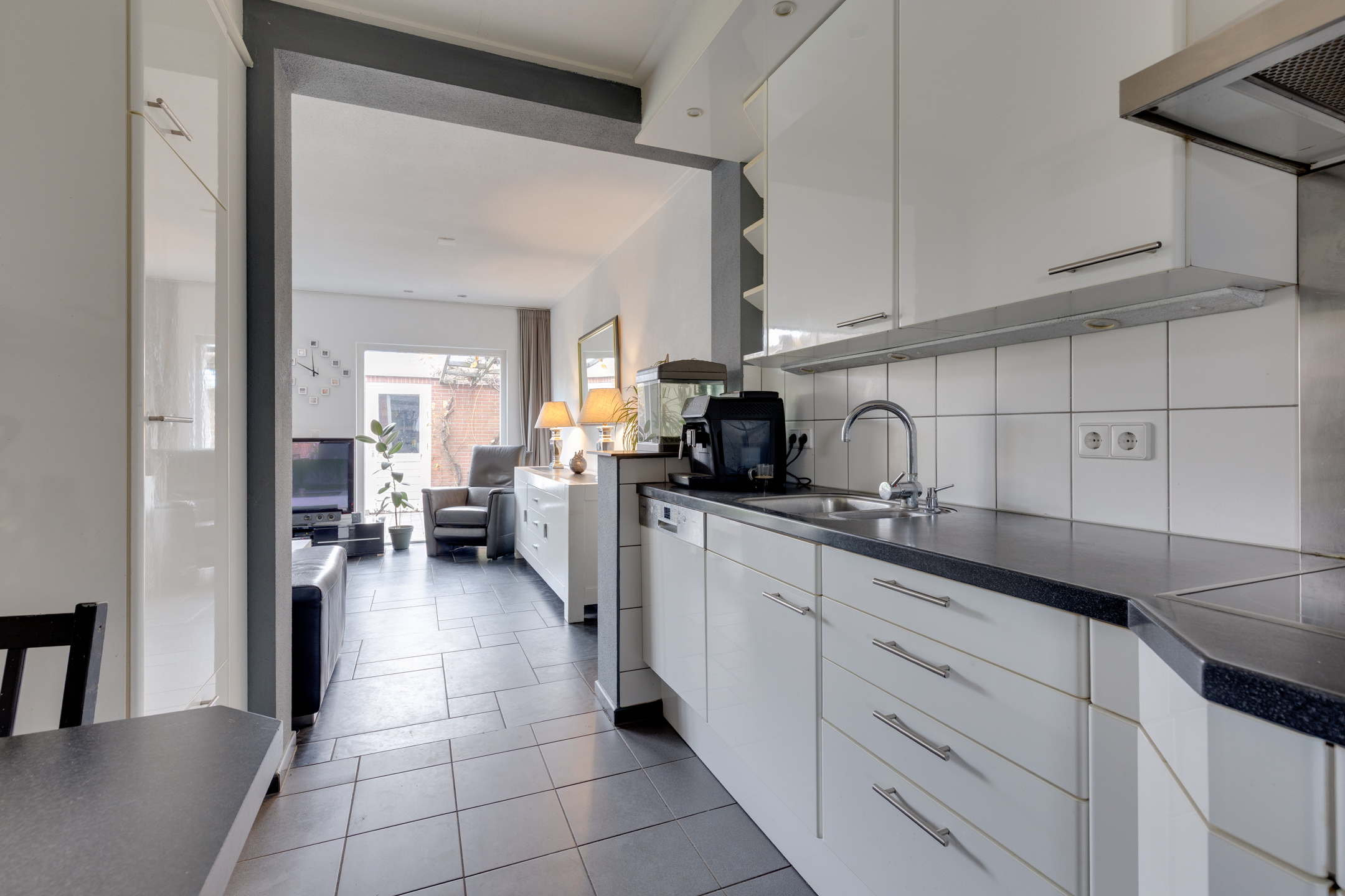 De lichte woonkamer is voorzien van vloerverwarming, grote raampartijen en openslaande deuren naar de achtertuin. Het eetgedeelte aan de voorzijde biedt een mooi uitzicht op de straat. Vanuit de woonkamer heb je toegang tot de in 2025 vernieuwde tuinkamer, een extra leefruimte met veel daglicht, grote ramen en een gezellige houtkachel. De keuken beschikt over diverse inbouwapparaten.