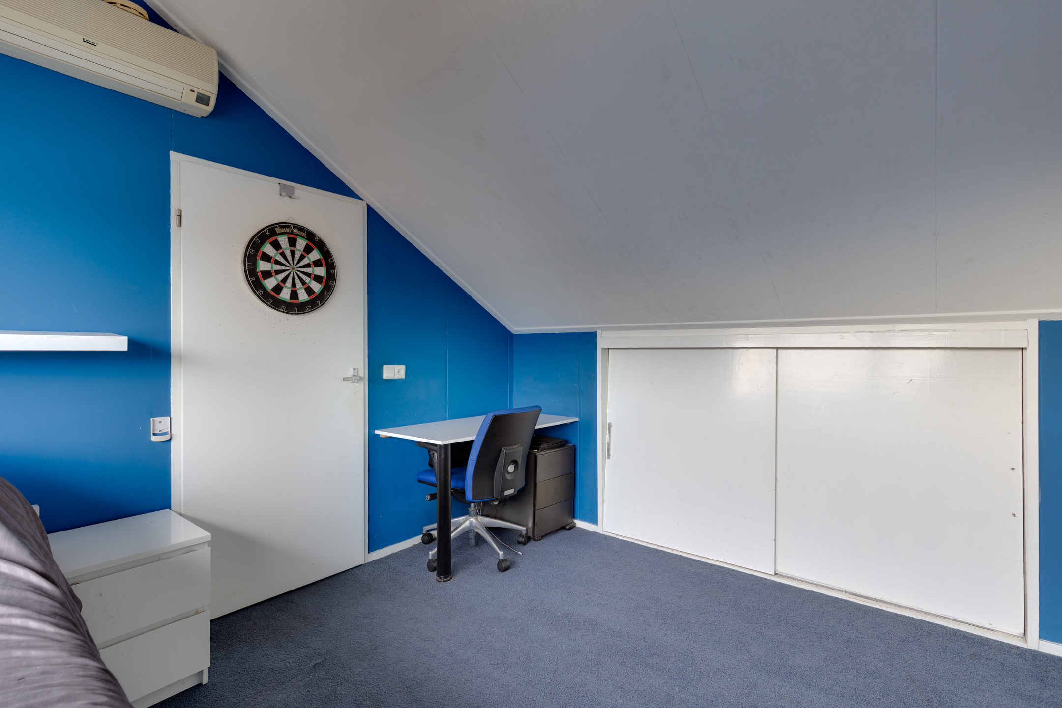 Op de zolderverdieping bevindt zich nog een vijfde ruime slaapkamer, voorzien van wastafel en een dakkapel met draai-kiepramen.