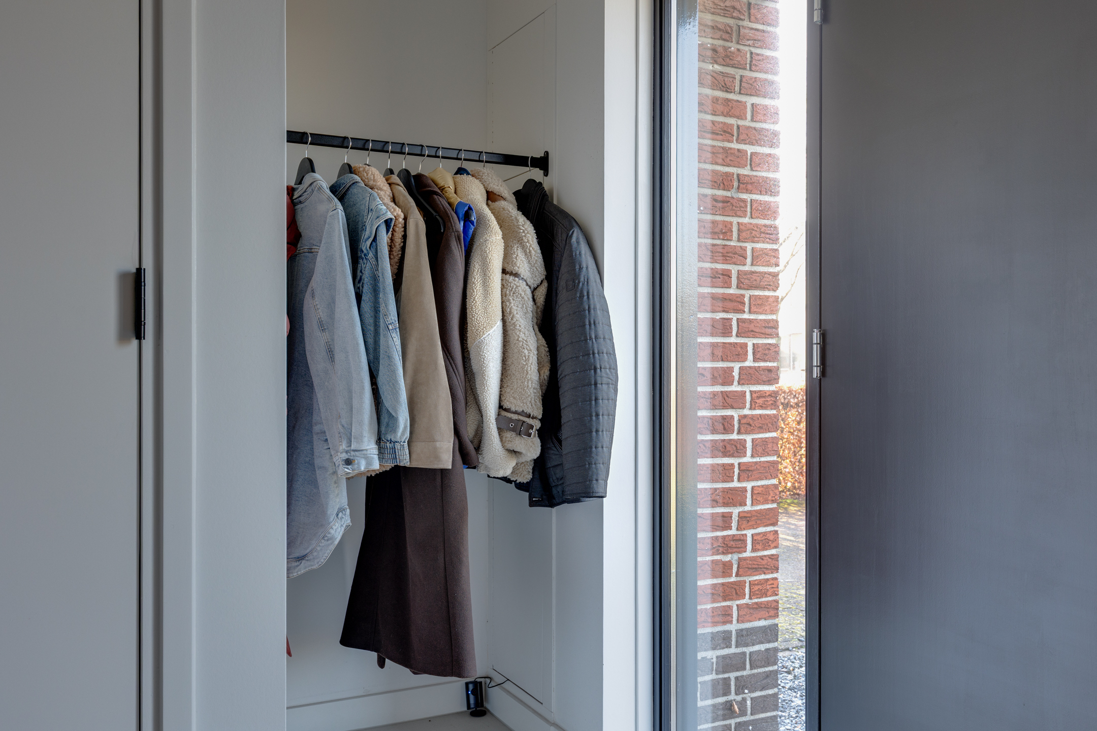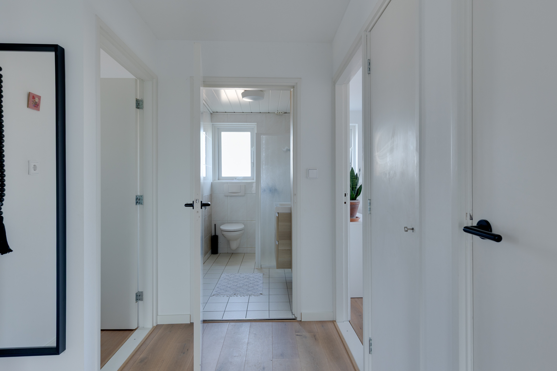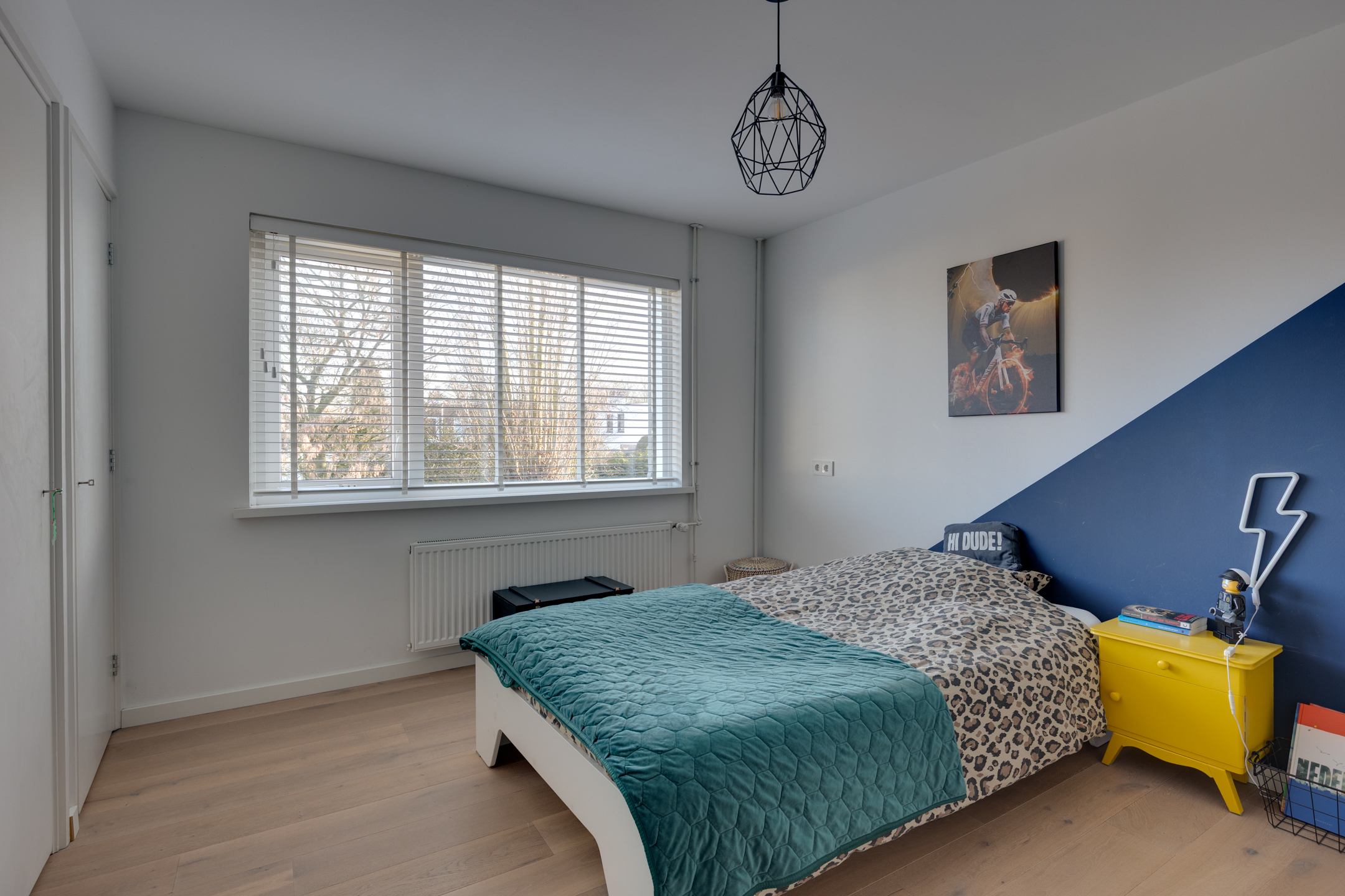 Op de eerste verdieping geeft de overloop toegang tot vier slaapkamers, voorzien van inbouwkasten. De ouderslaapkamer heeft tevens een balkon. De badkamer is voorzien van een wastafelmeubel, inloopdouche en toilet.