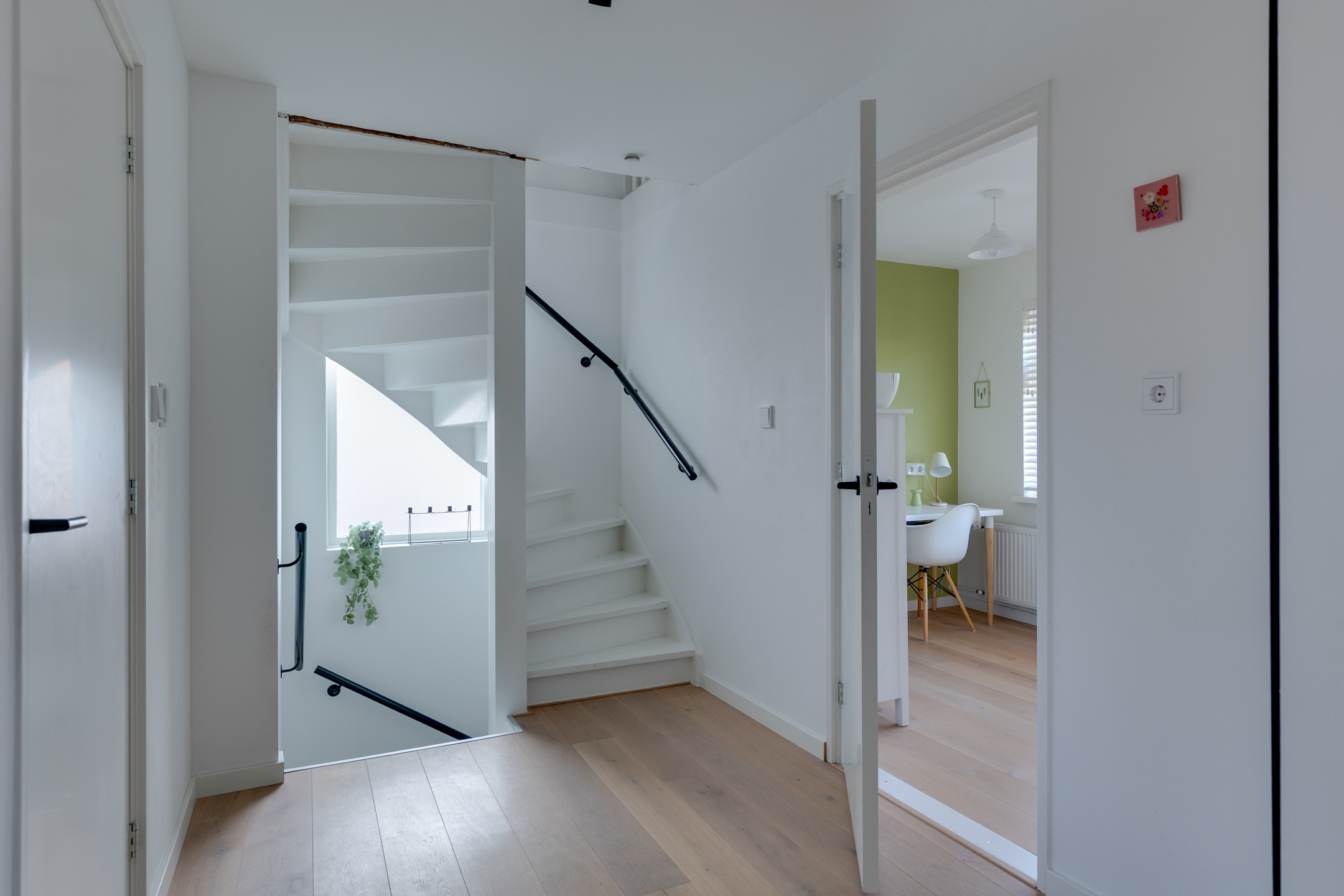 – Wanden en plafonds op begane grond gestuct en voorzien van renovlies behang