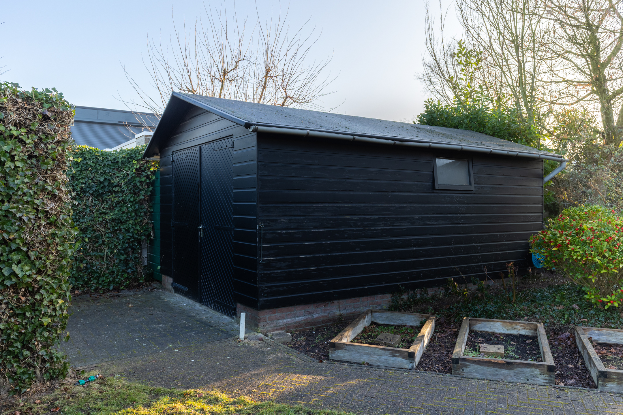 Aan de voorzijde van de woning bevindt zich het oprit met ruimte voor 2 auto’s. De woning beschikt over royale tuin met volop mogelijkheden om te genieten van het buitenleven of voor kinderen om te spelen. De houten schuur is perfect te gebruiken als extra opslagruimte, werkplaats of hobbyruimte.