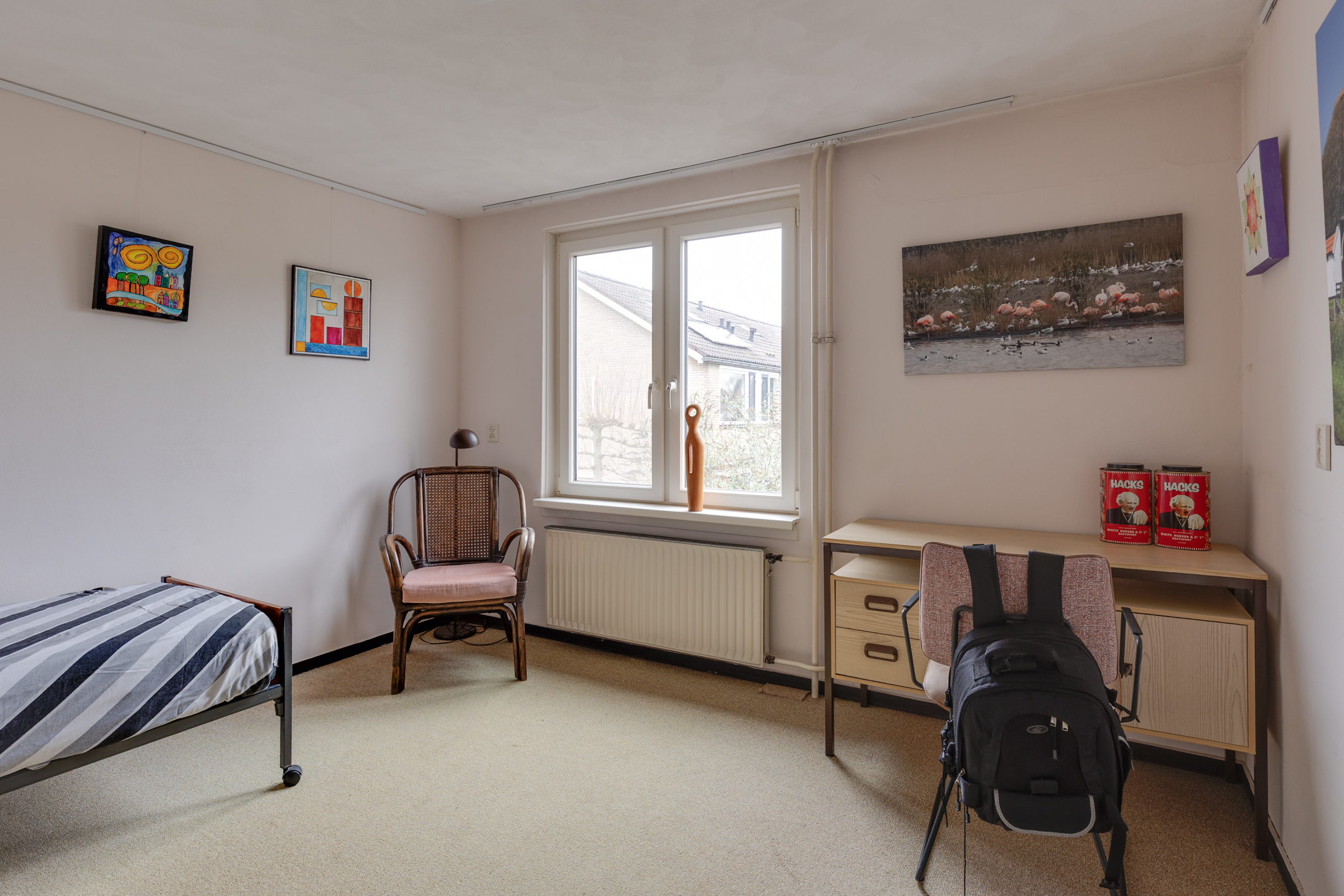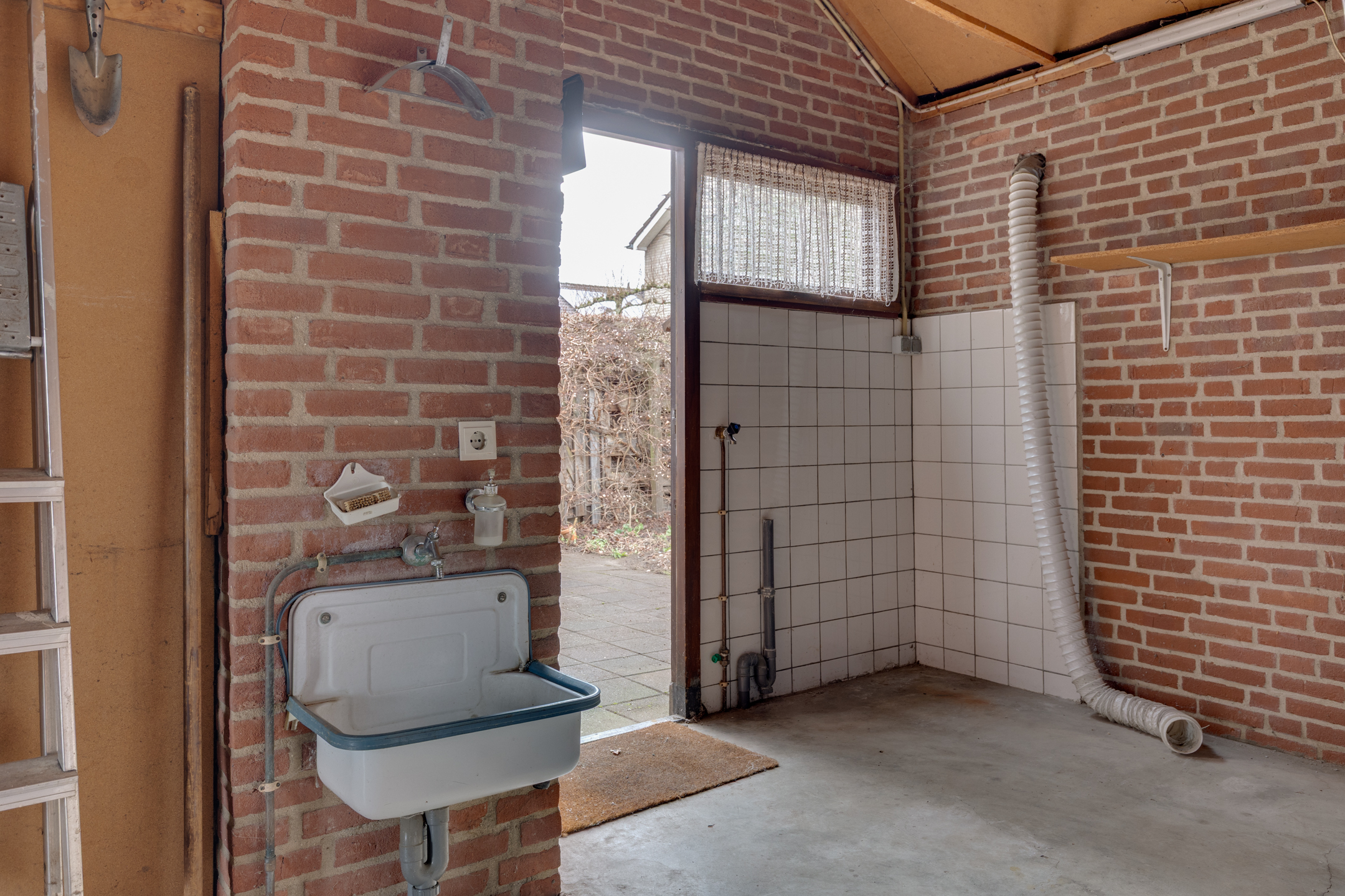 De aangebouwde garage geeft ruime mogelijkheden voor stalling en hobby maar ook tot het creëren van een extra (werk-)kamer of het vergroten van de leefruimte beneden.