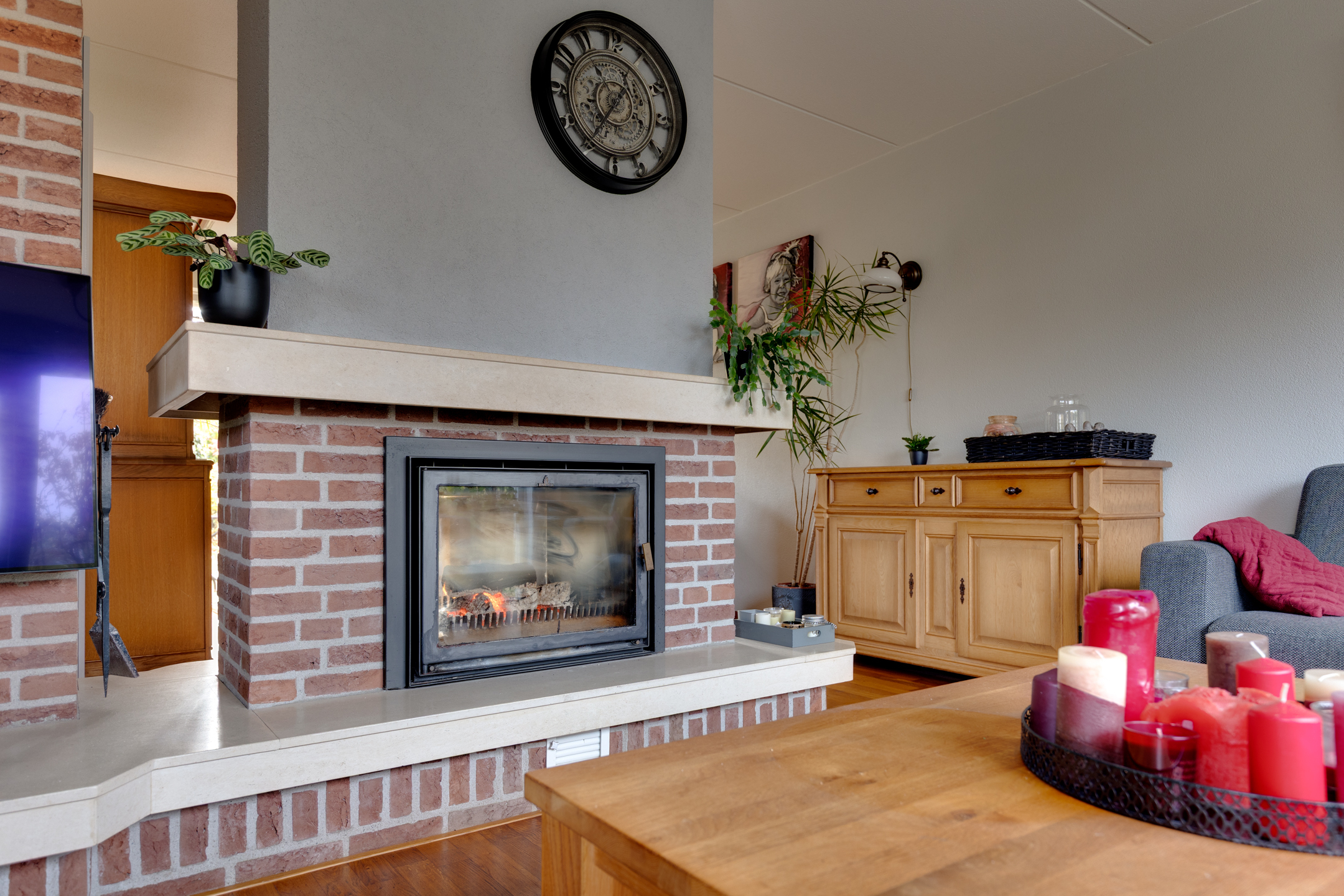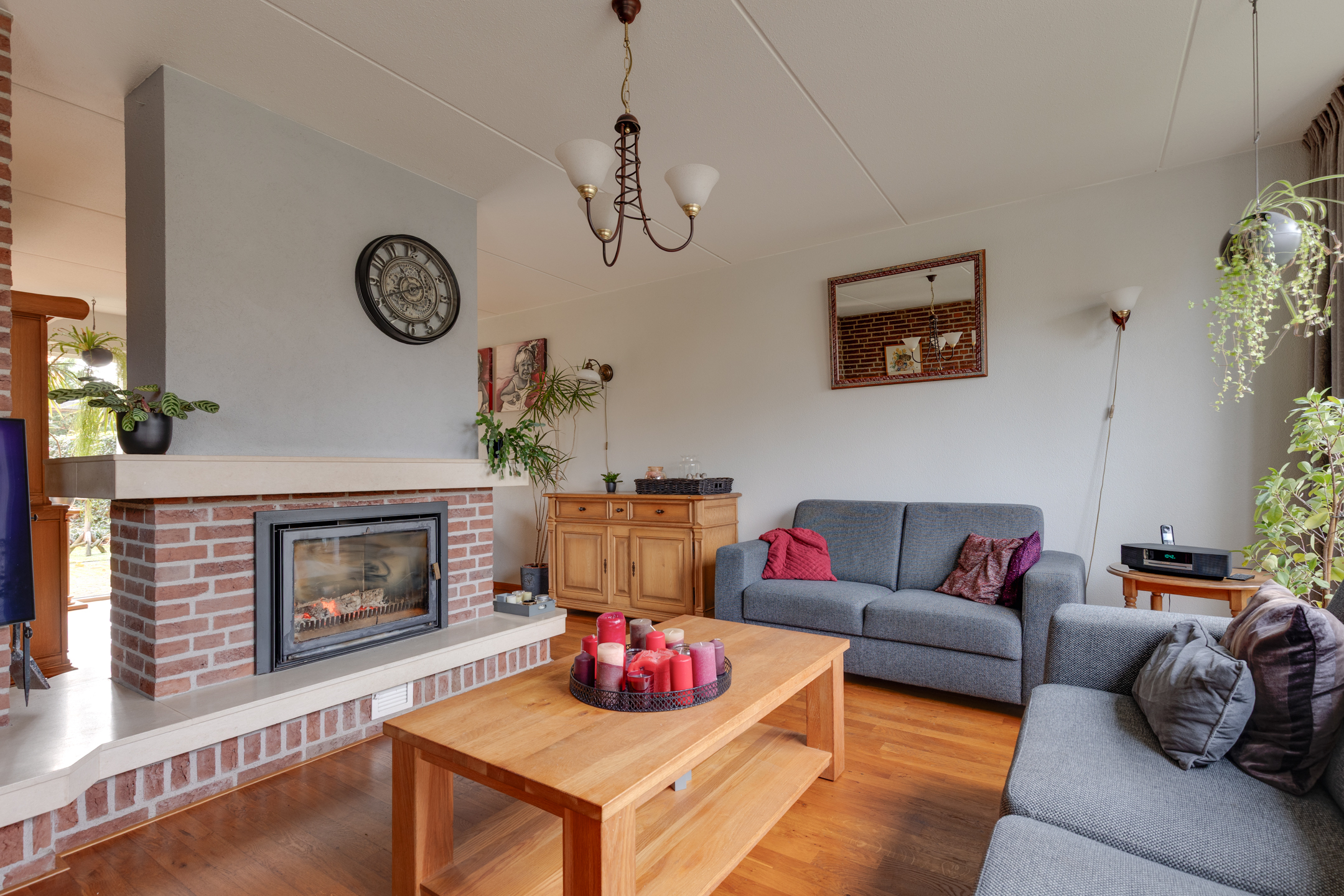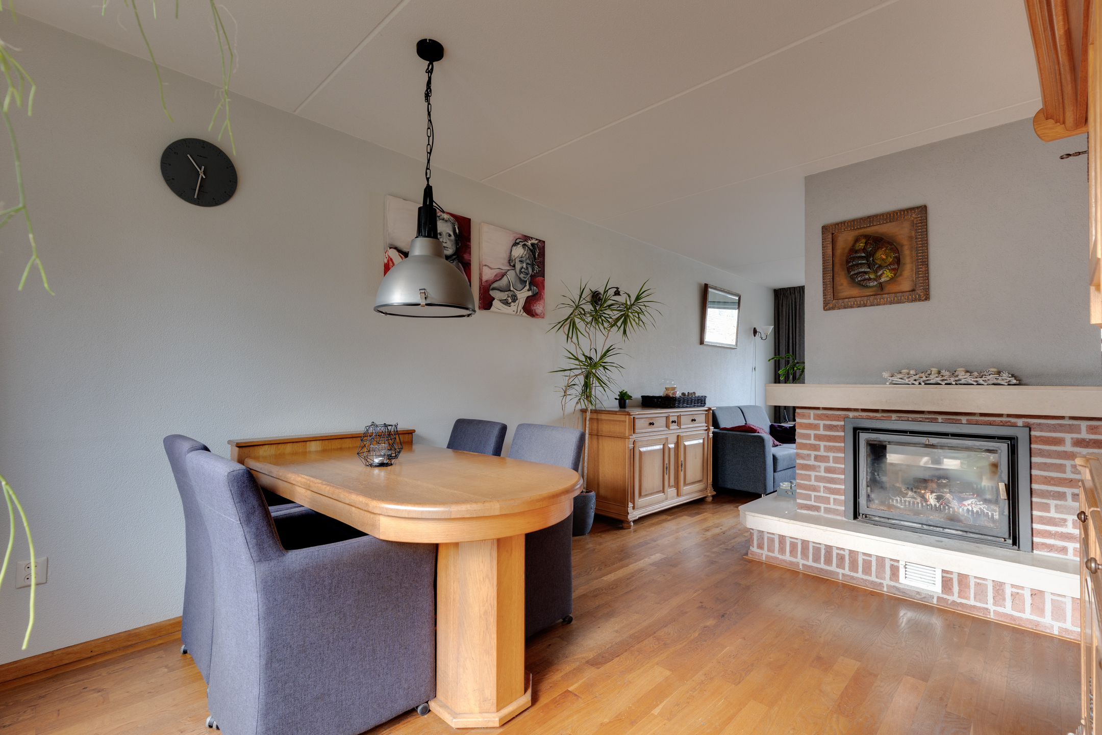 De woning biedt verassend veel ruimte. In de woonkamer is het zitgedeelte van het eetgedeelte gescheiden middels een gezellige doorkijk-houthaard. De keuken is voorzien van inbouwapparatuur en beschikt over vloerverwarming. Aangrenzend bevindt zich de praktische bijkeuken en berging.