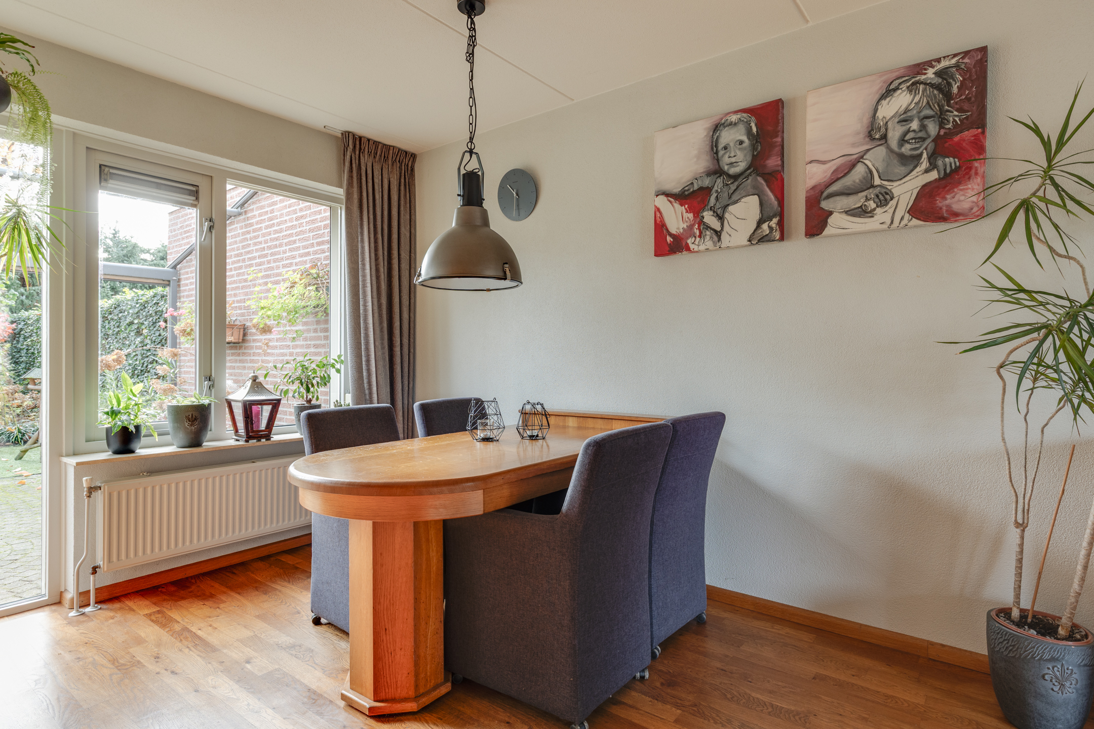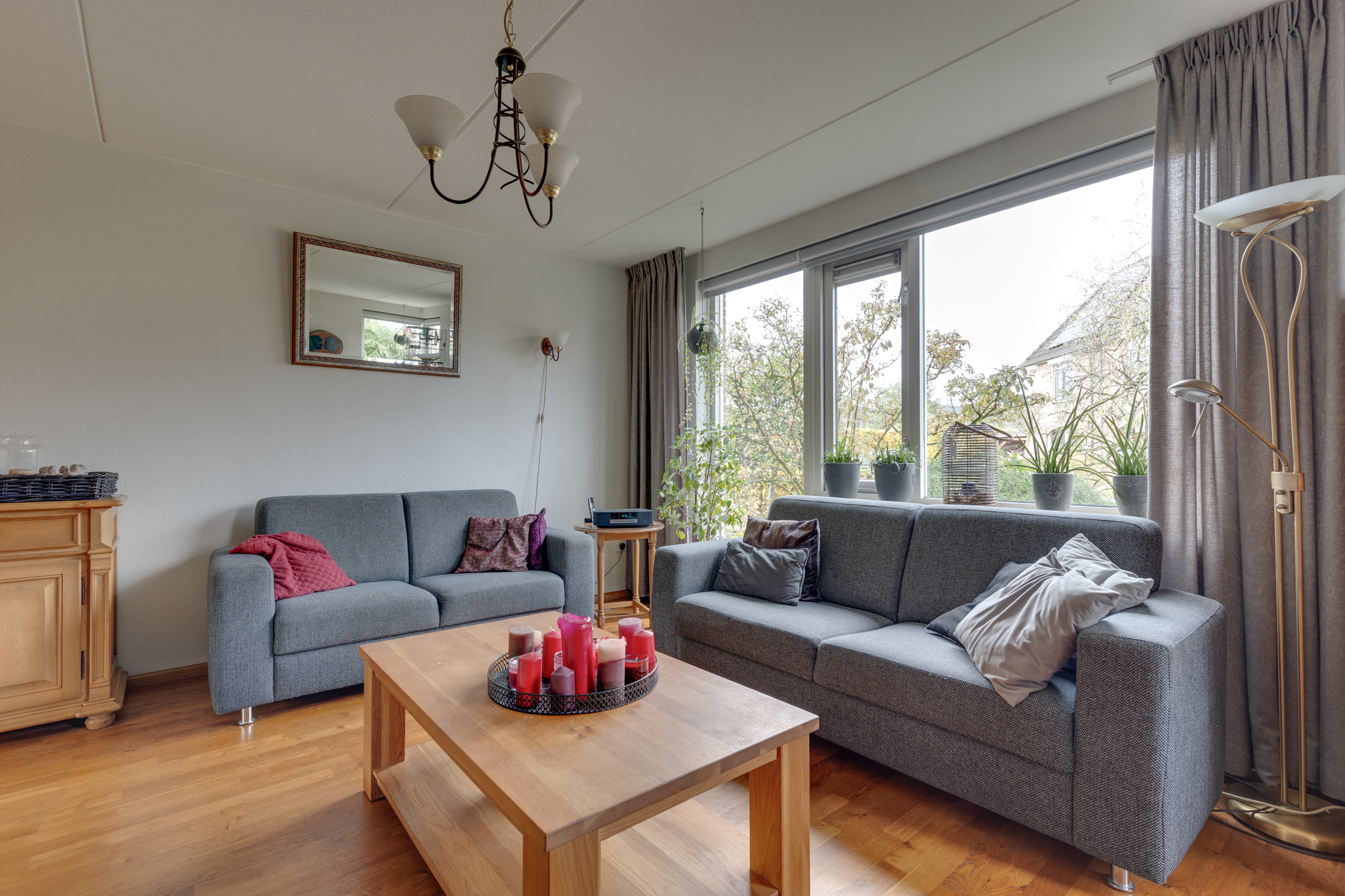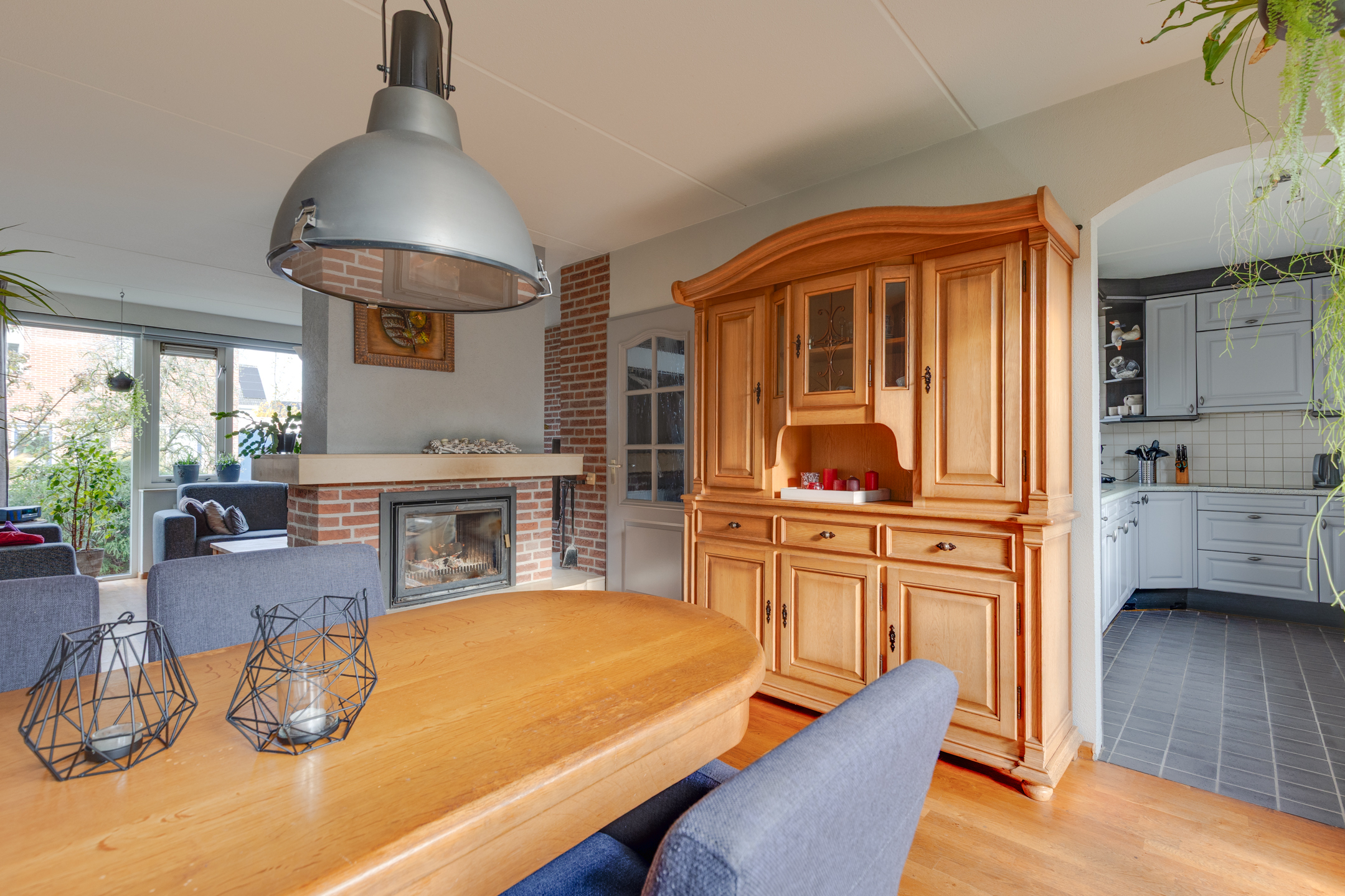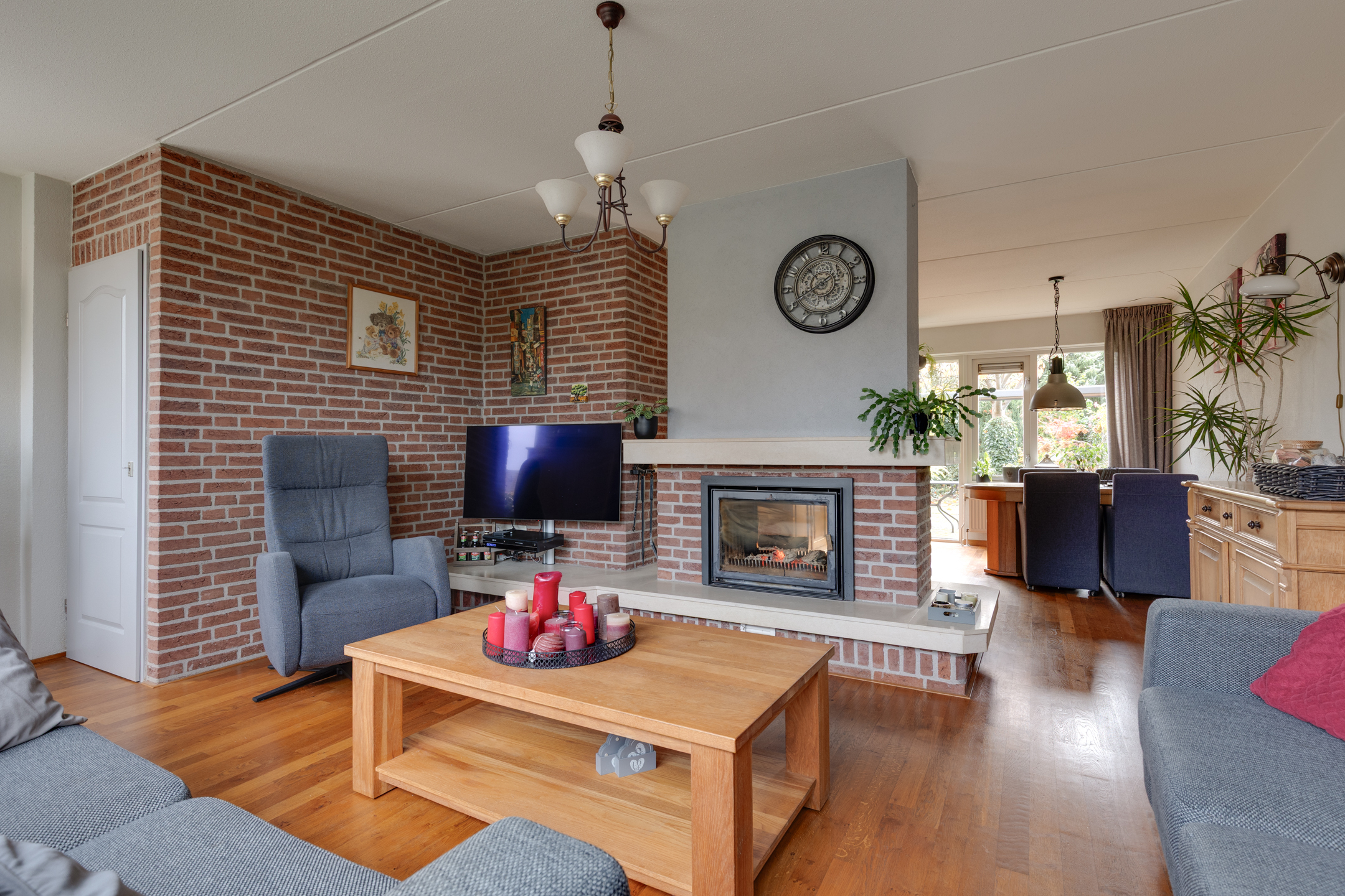 De woning biedt verassend veel ruimte. In de woonkamer is het zitgedeelte van het eetgedeelte gescheiden middels een gezellige doorkijk-houthaard. De keuken is voorzien van inbouwapparatuur en beschikt over vloerverwarming. Aangrenzend bevindt zich de praktische bijkeuken en berging.