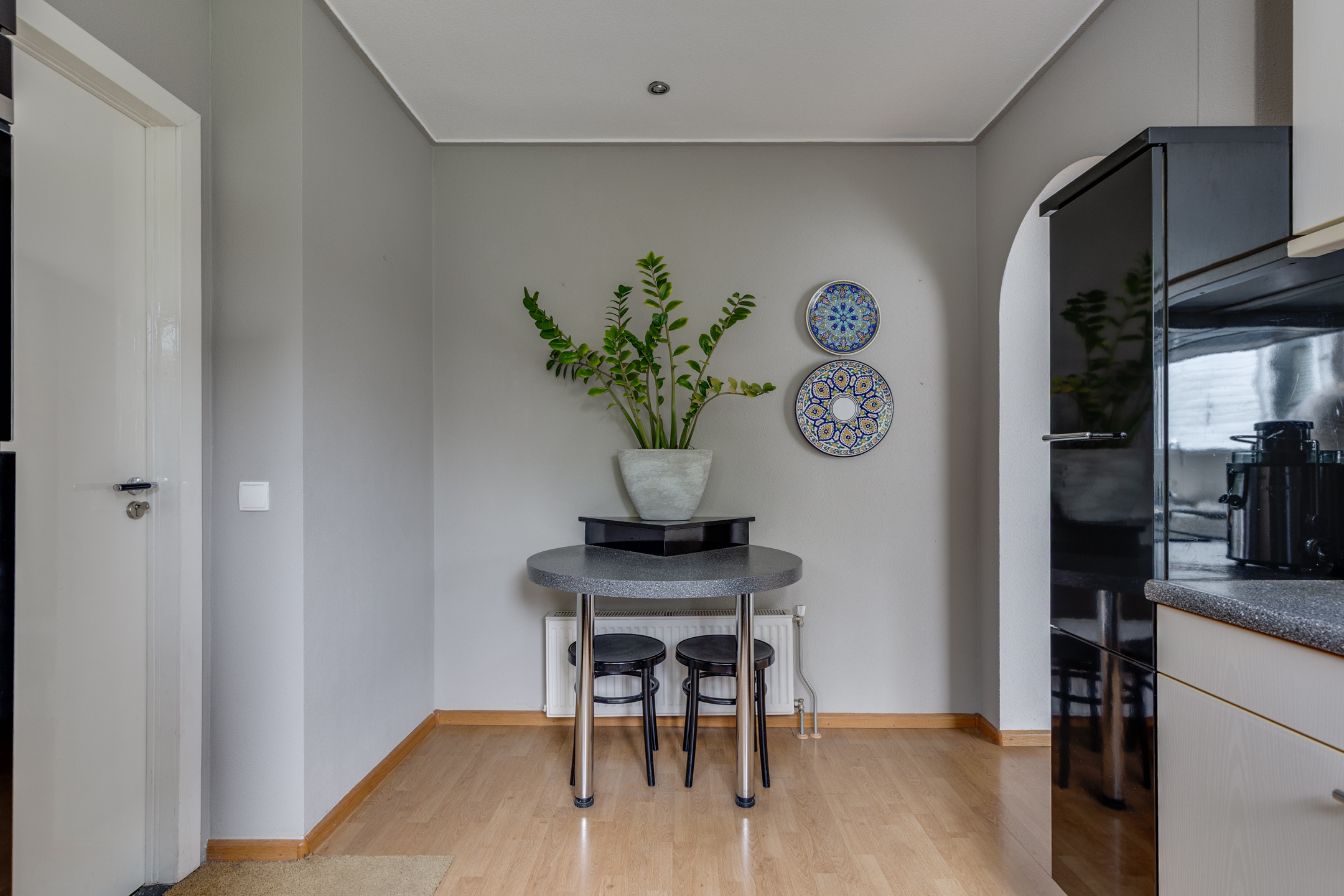 De woning is gelegen in een kindvriendelijke woonwijk en in een gewilde buurt. De L-vormige woonkamer is straatgericht en voorzien van een open haard. Daarnaast is er een aparte zit- / eetkamer met directe toegang tot de overdekte zithoek in de achtertuin. De gesloten keuken met U-vorm aanrecht is voorzien van moderne inbouwapparatuur (uit 2023) en biedt voldoende werkruimte.