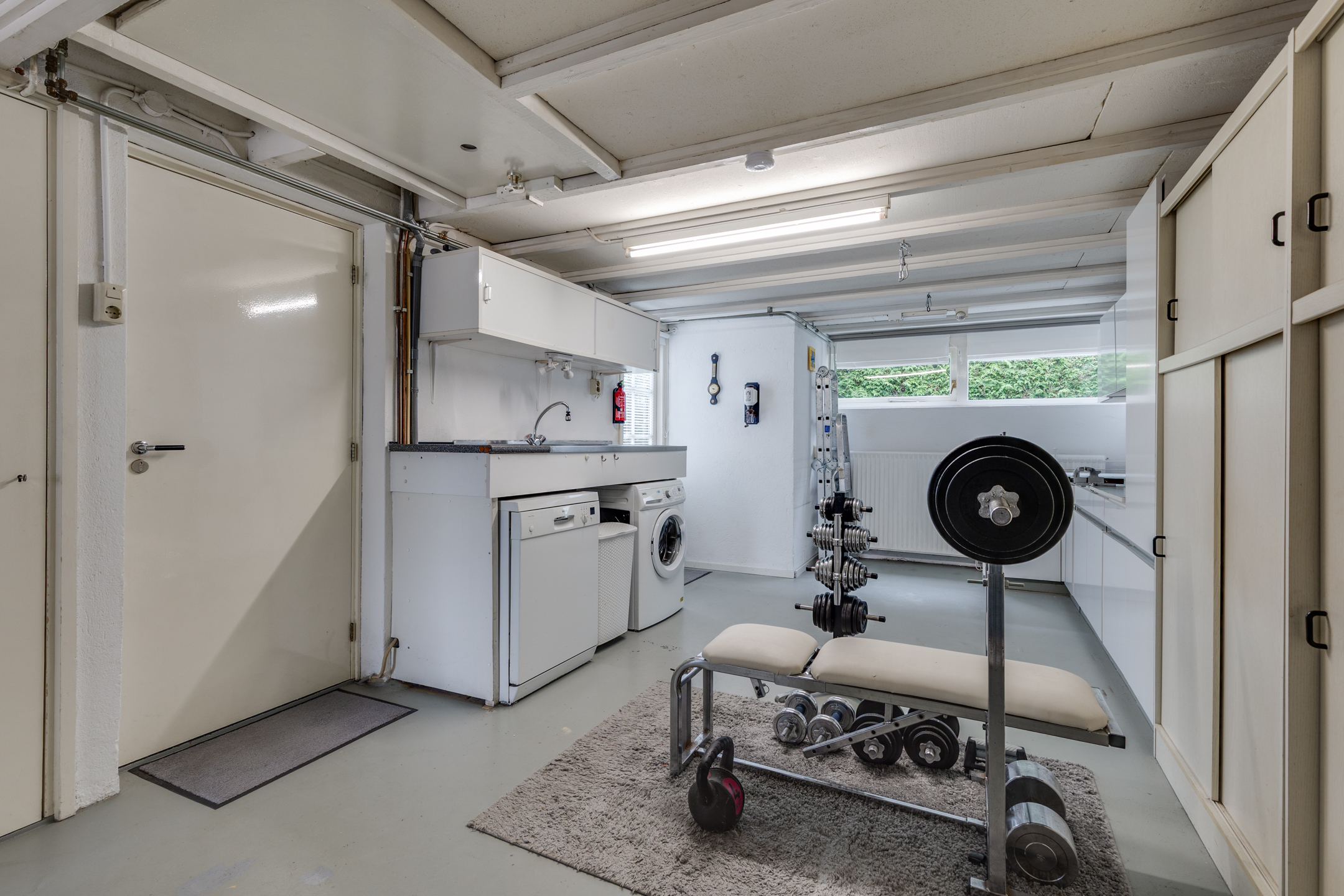 Een extra groot pluspunt is de ruime garage / berging met ruime vliering. De garage / berging is voorzien van aansluitingen voor wasmachine en wasdroger en een wastafel.