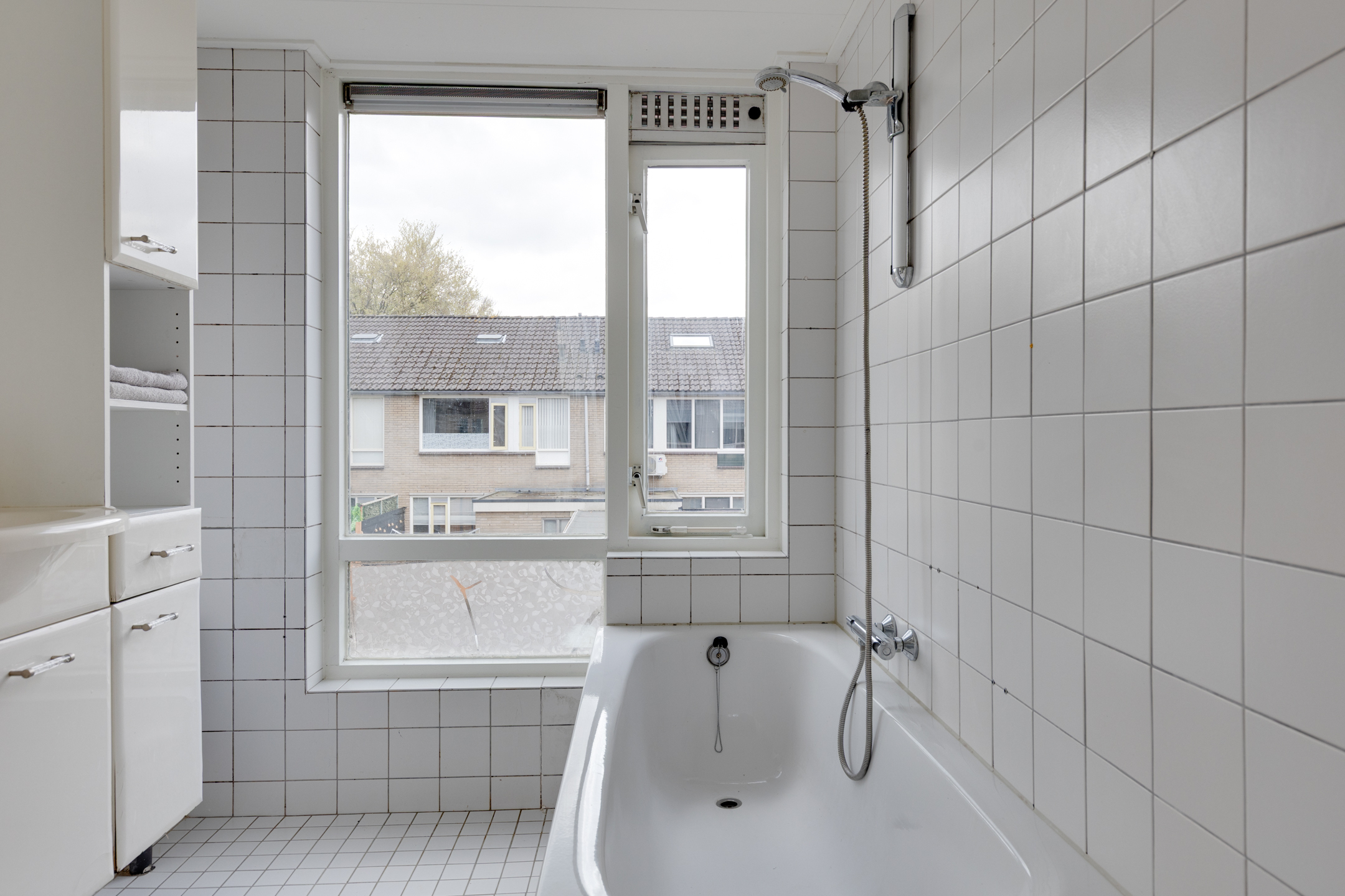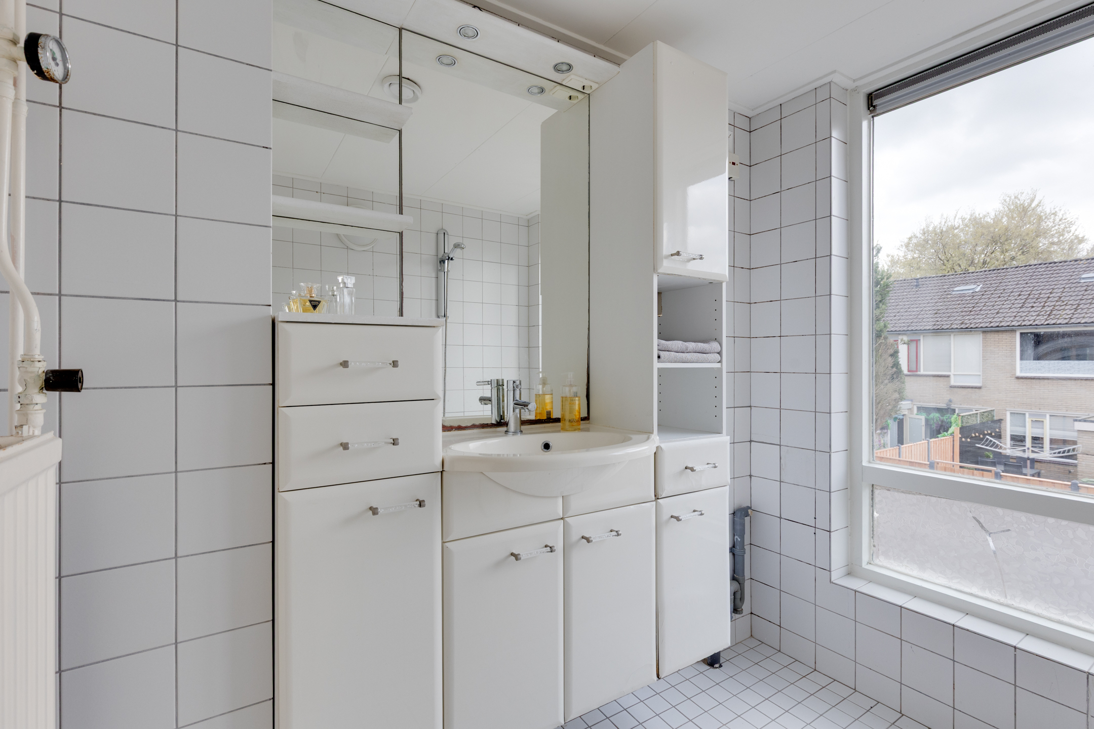 Op de overloop aangekomen vind je een ruime bergkast, drie slaapkamers en de badkamer, die is voorzien van een wastafel, ligbad en wasmachine aansluiting.