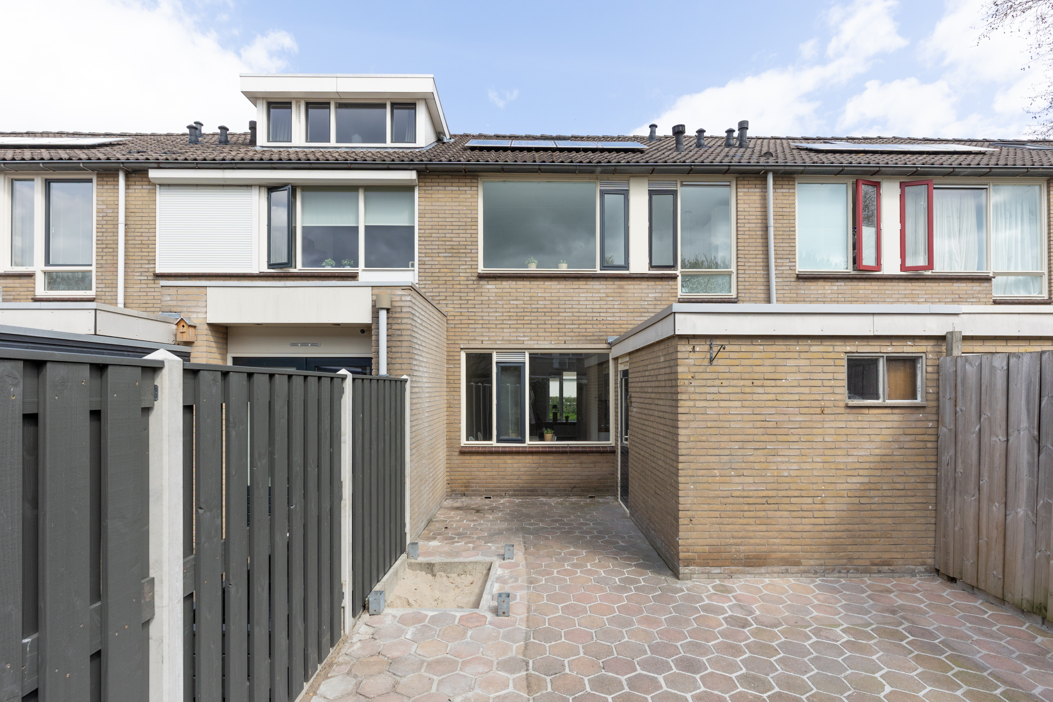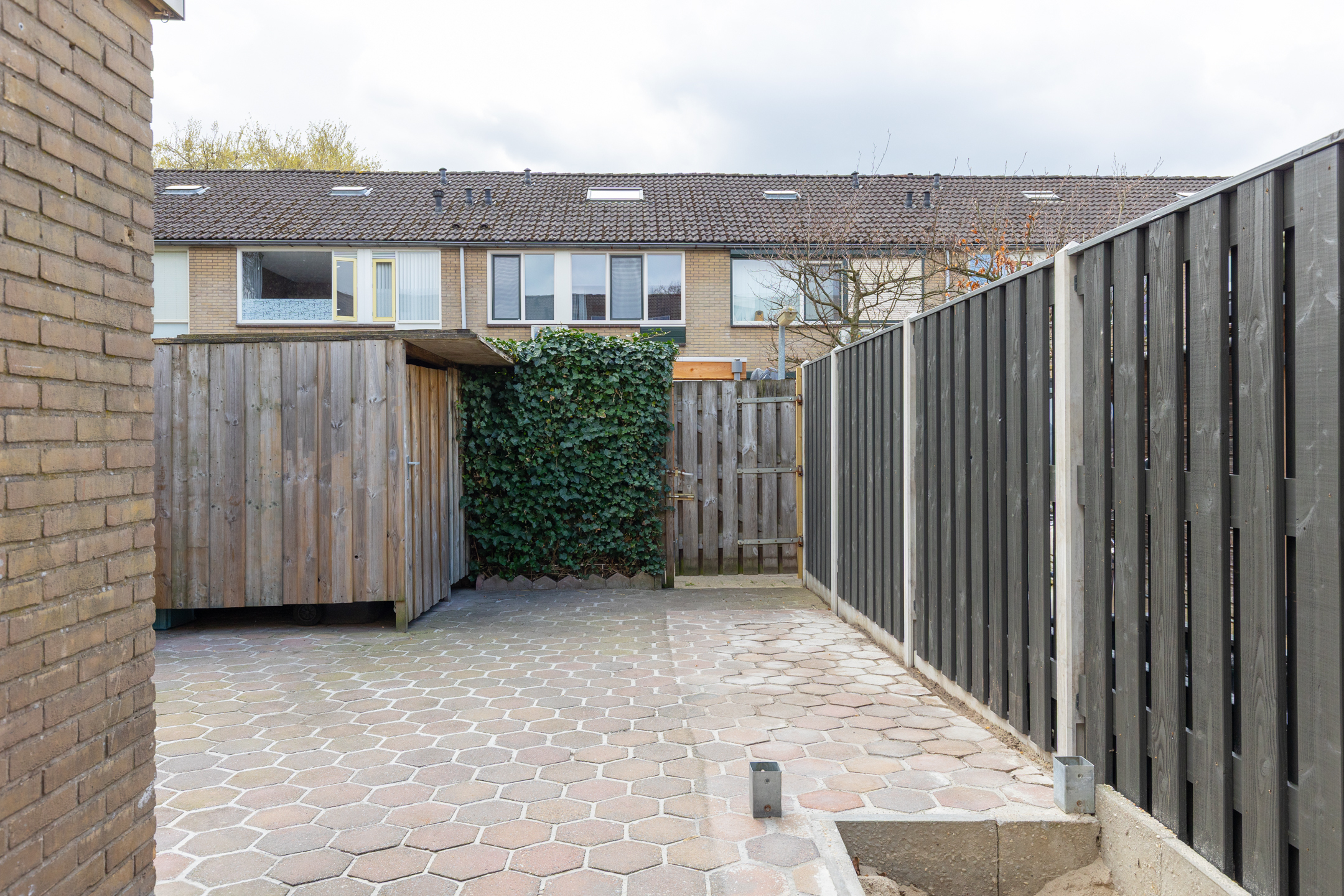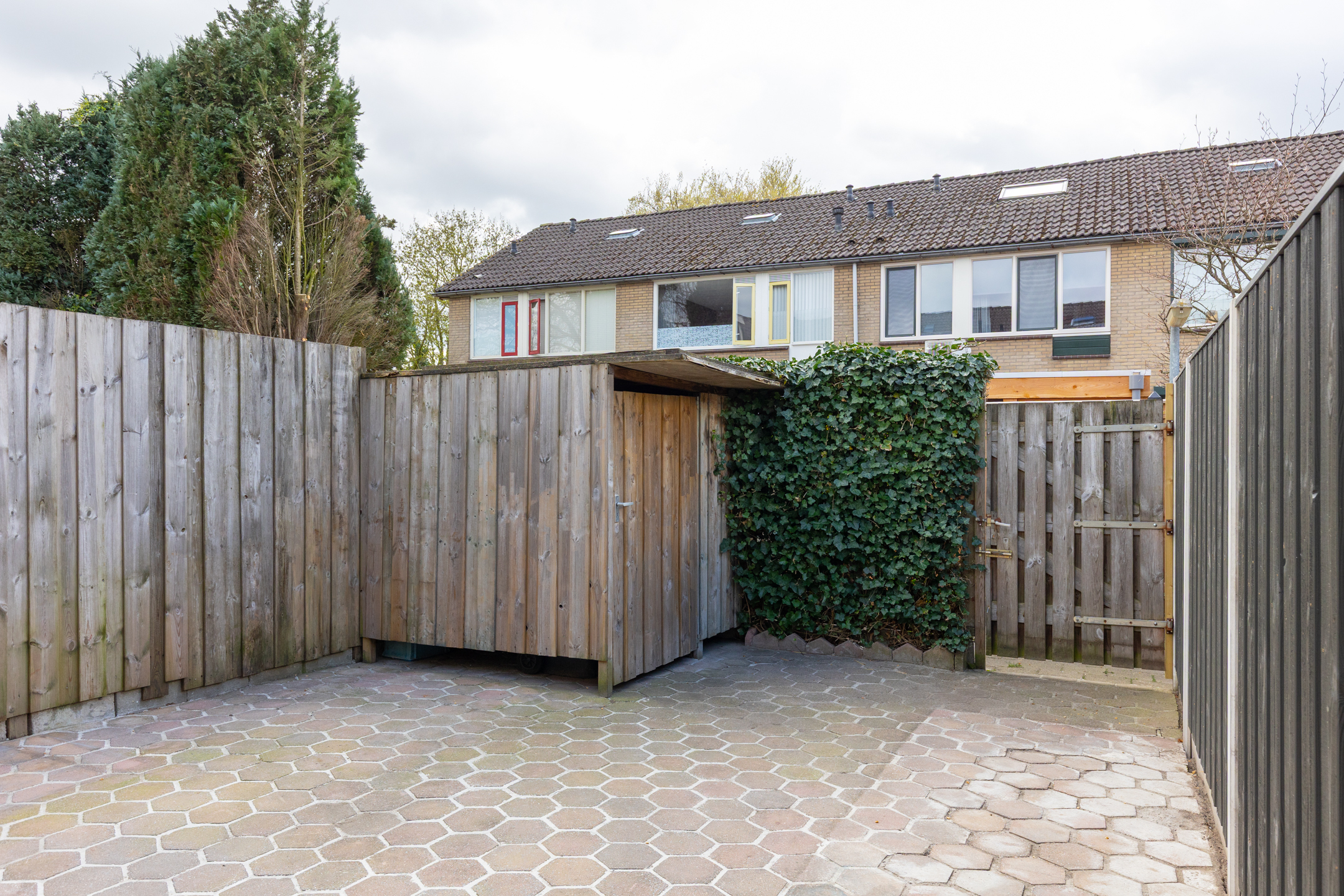 De onderhoudsvriendelijke achtertuin ligt op het zuiden en is bereikbaar via een achterom. Het is een fijne plek om buiten te zitten en biedt daarnaast een houten berging voor het opbergen van tuingereedschap en fietsen.