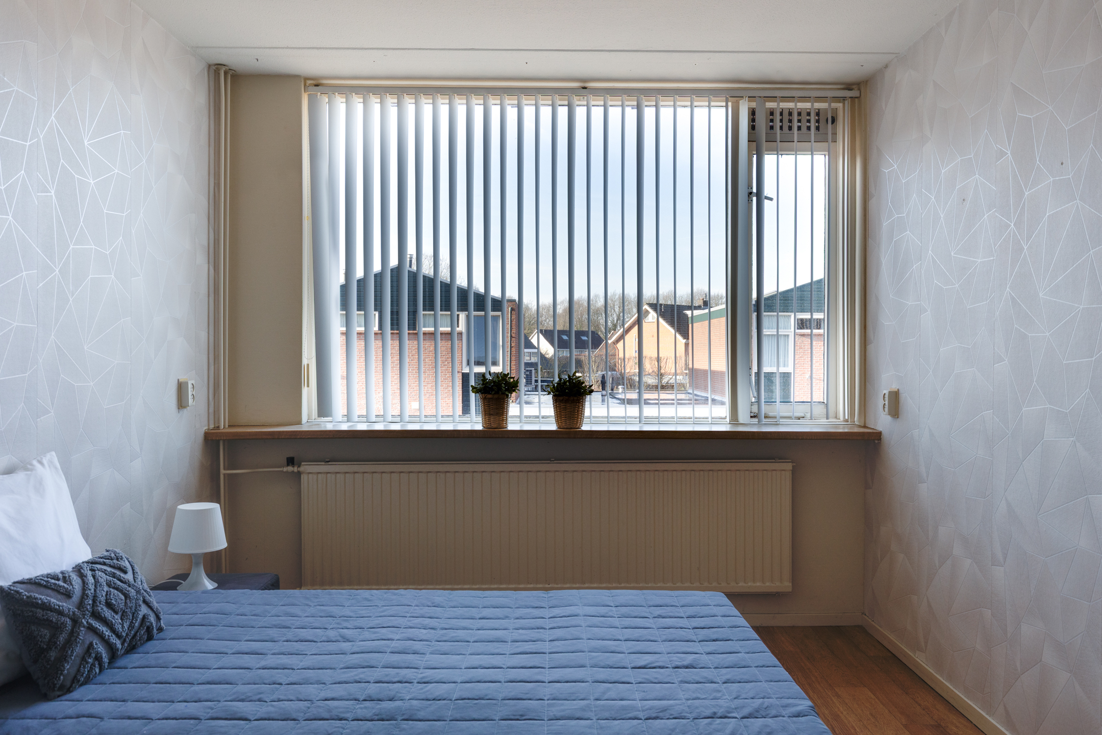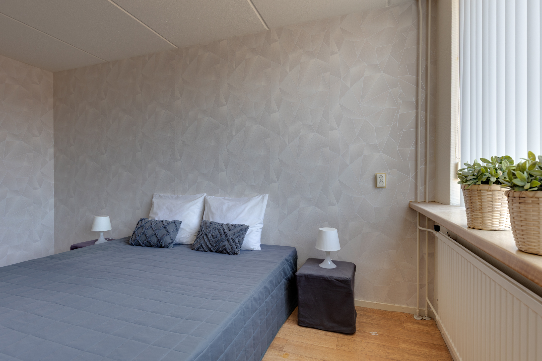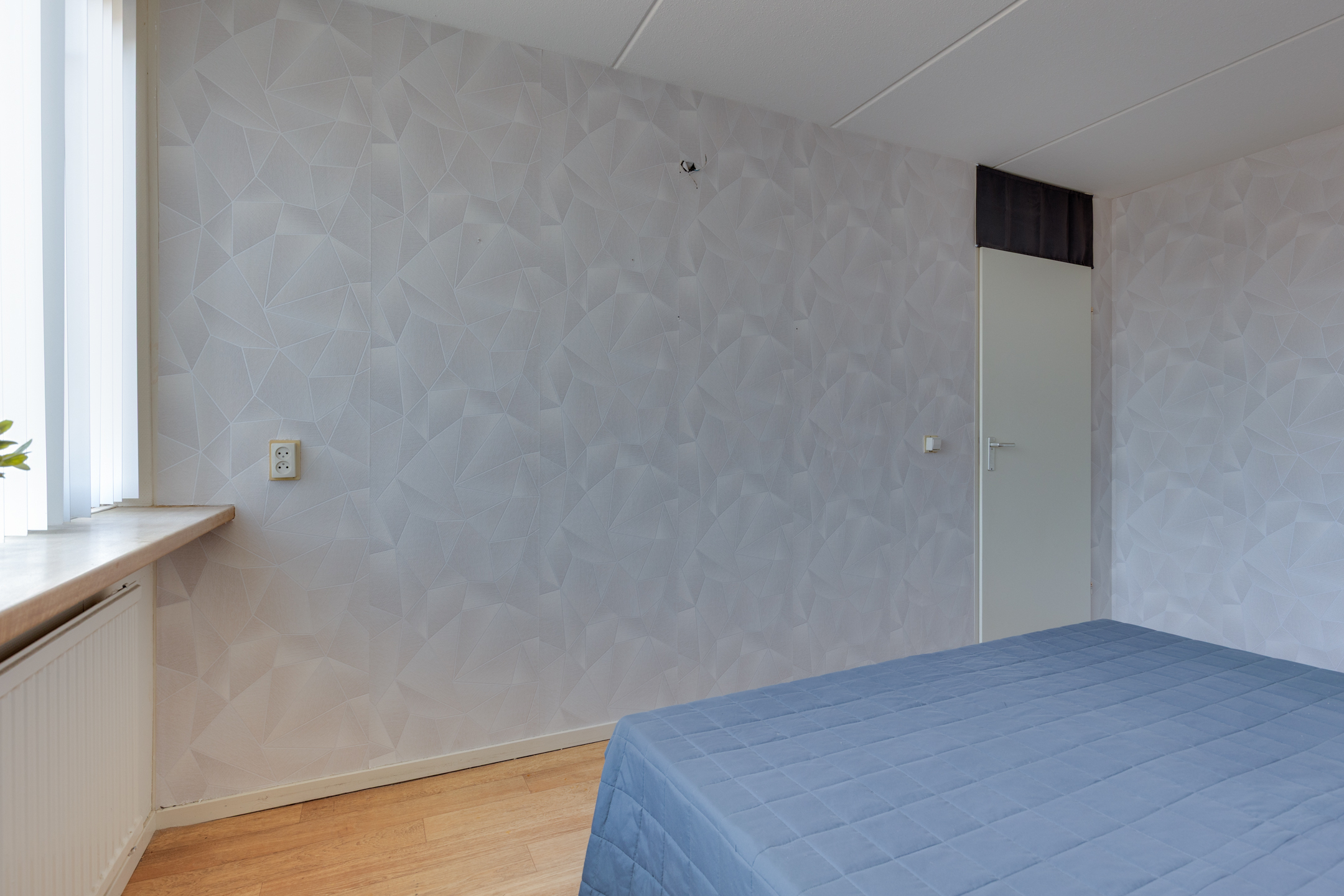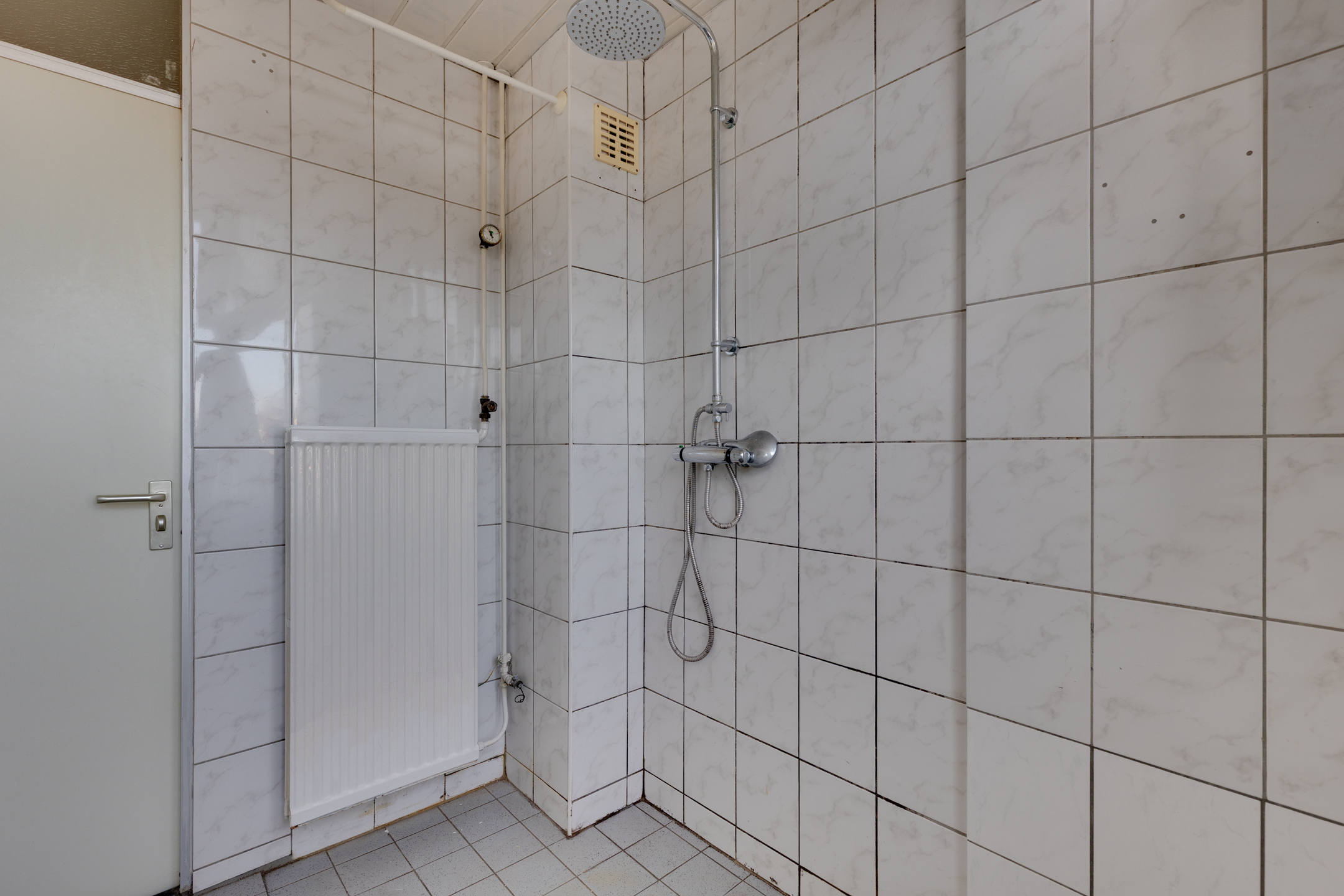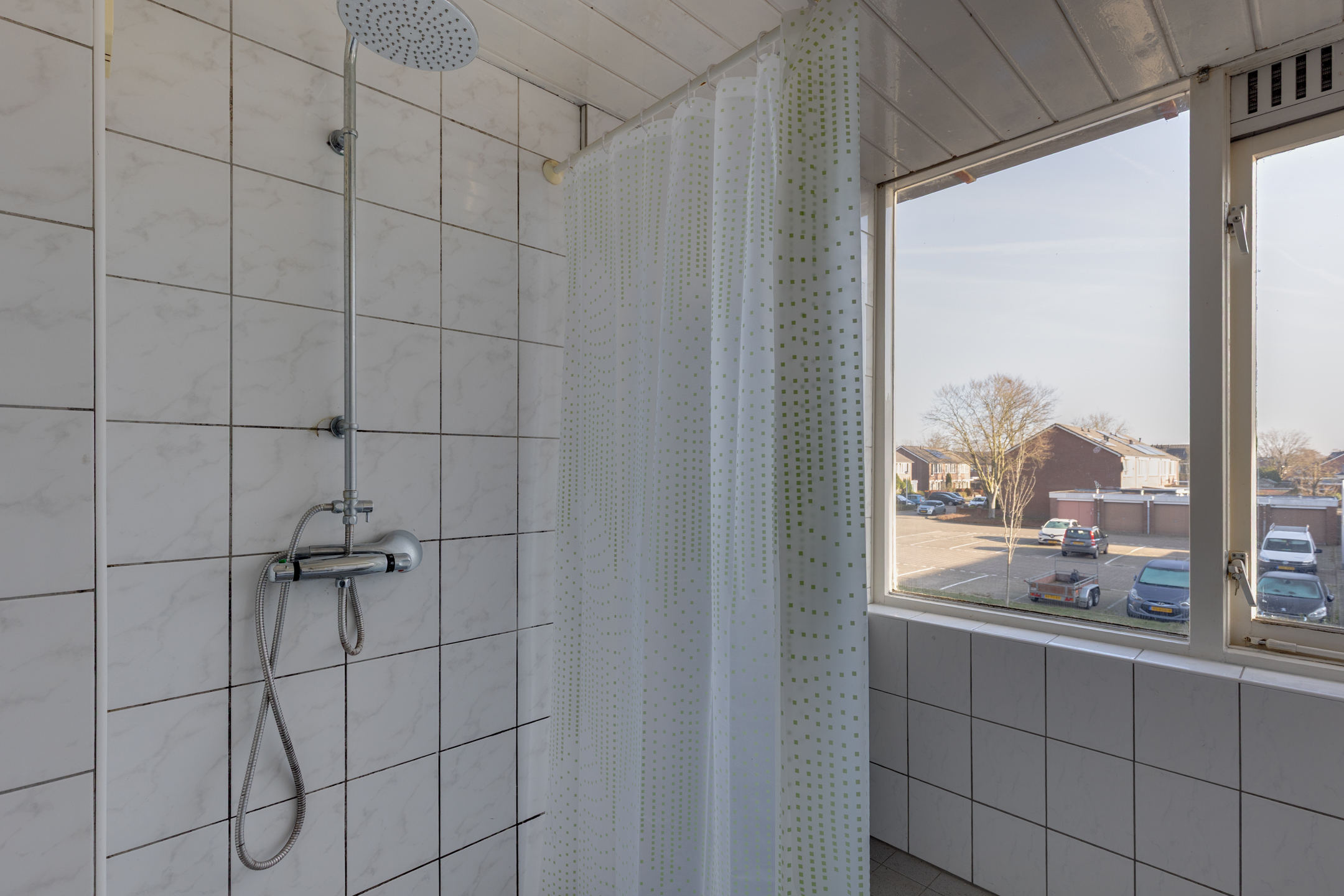 Overloop met bergkast. Daarnaast drie slaapkamers en als laatste een badkamer voorzien van inloopdouche en dubbele wastafel.